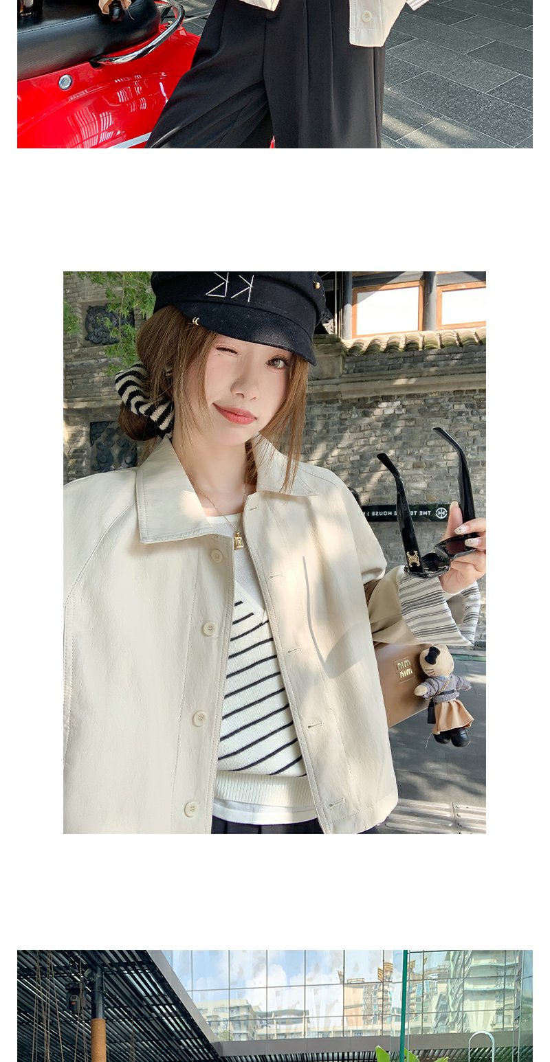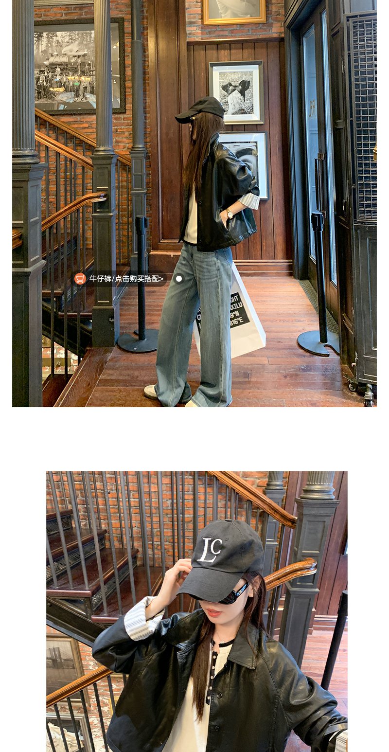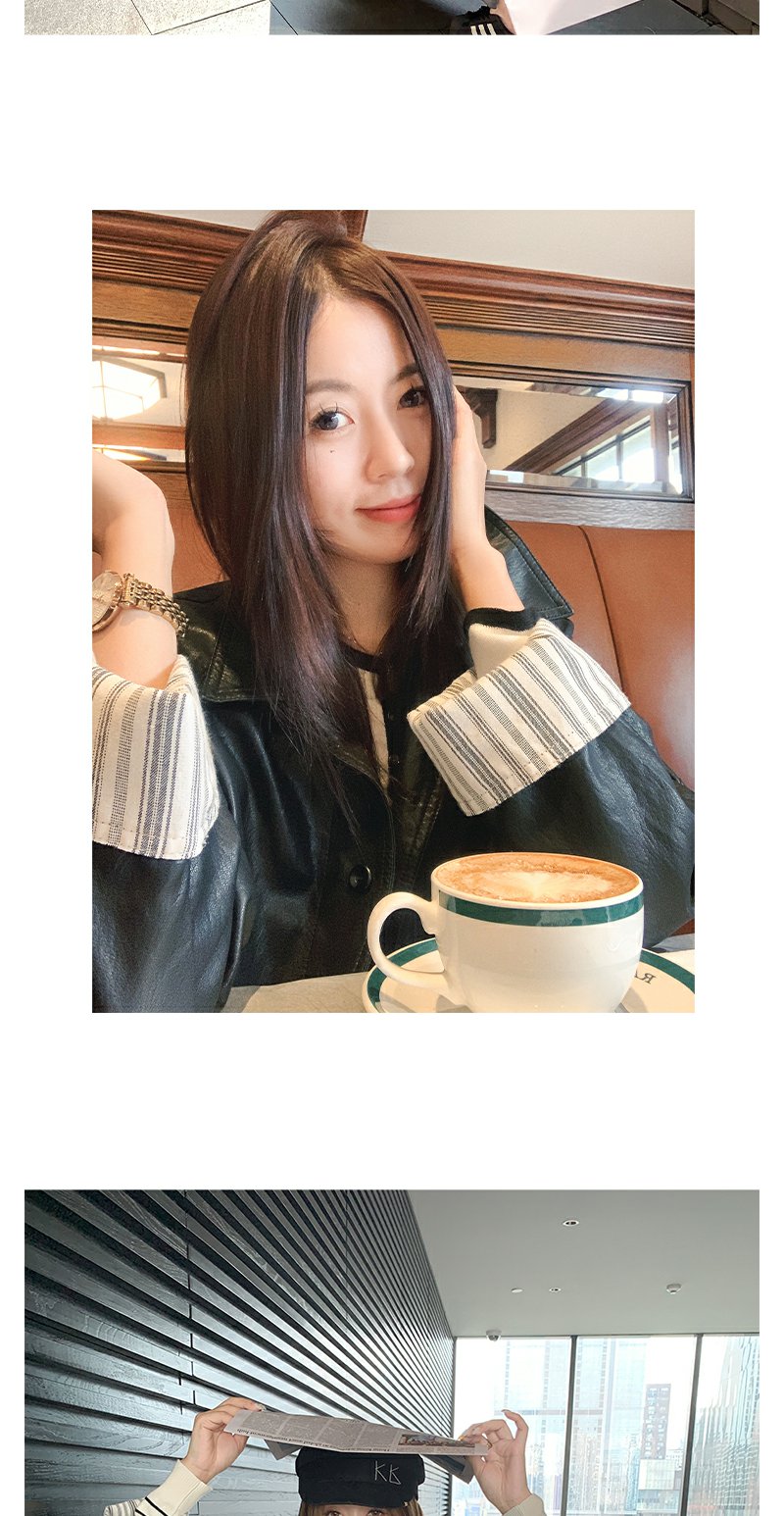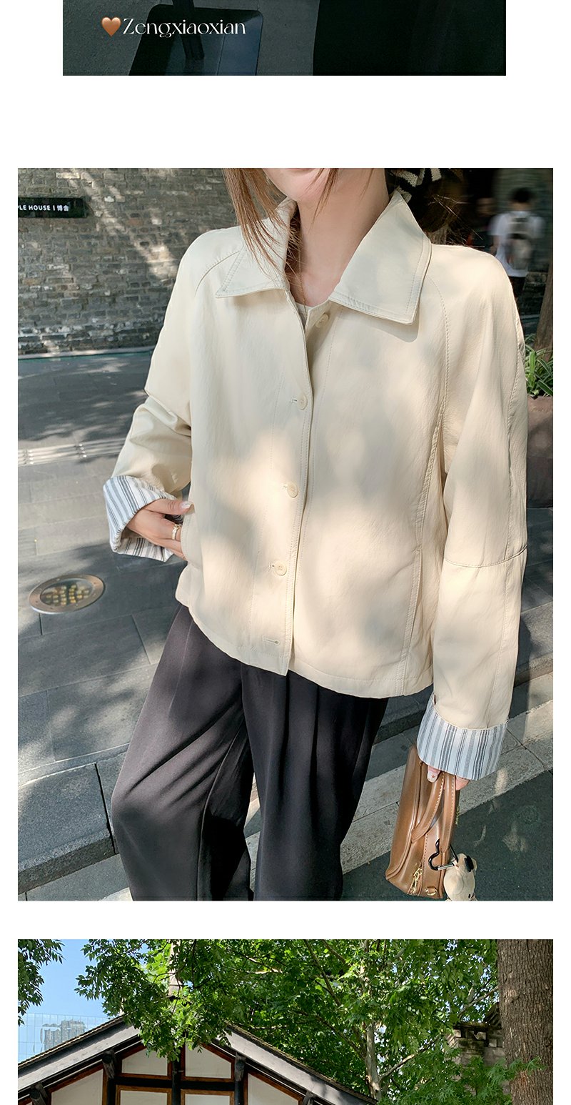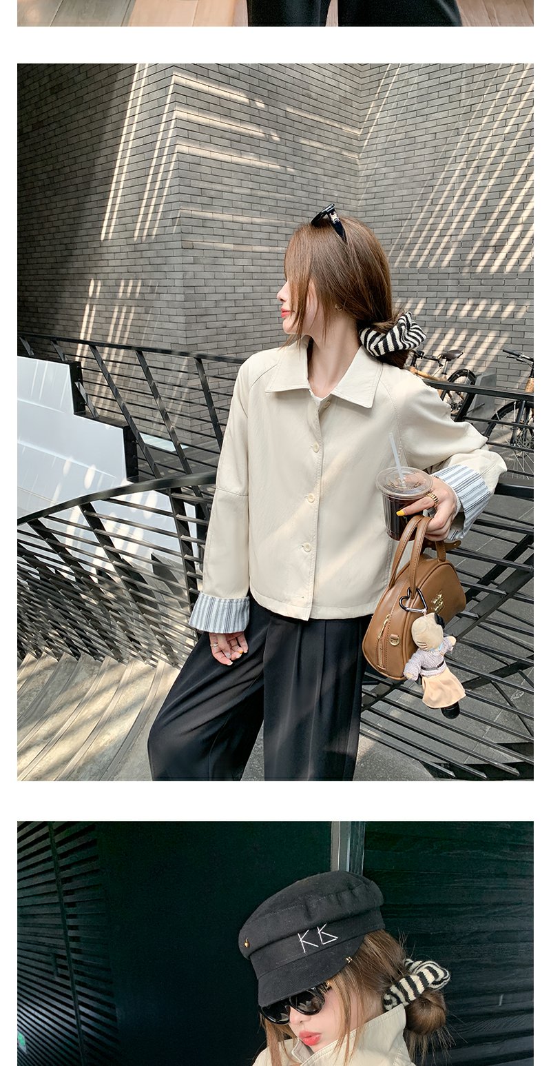 【269元任选2件】现货!成本巨贵,拍下包赚!条纹翻边皮衣短外套夹克