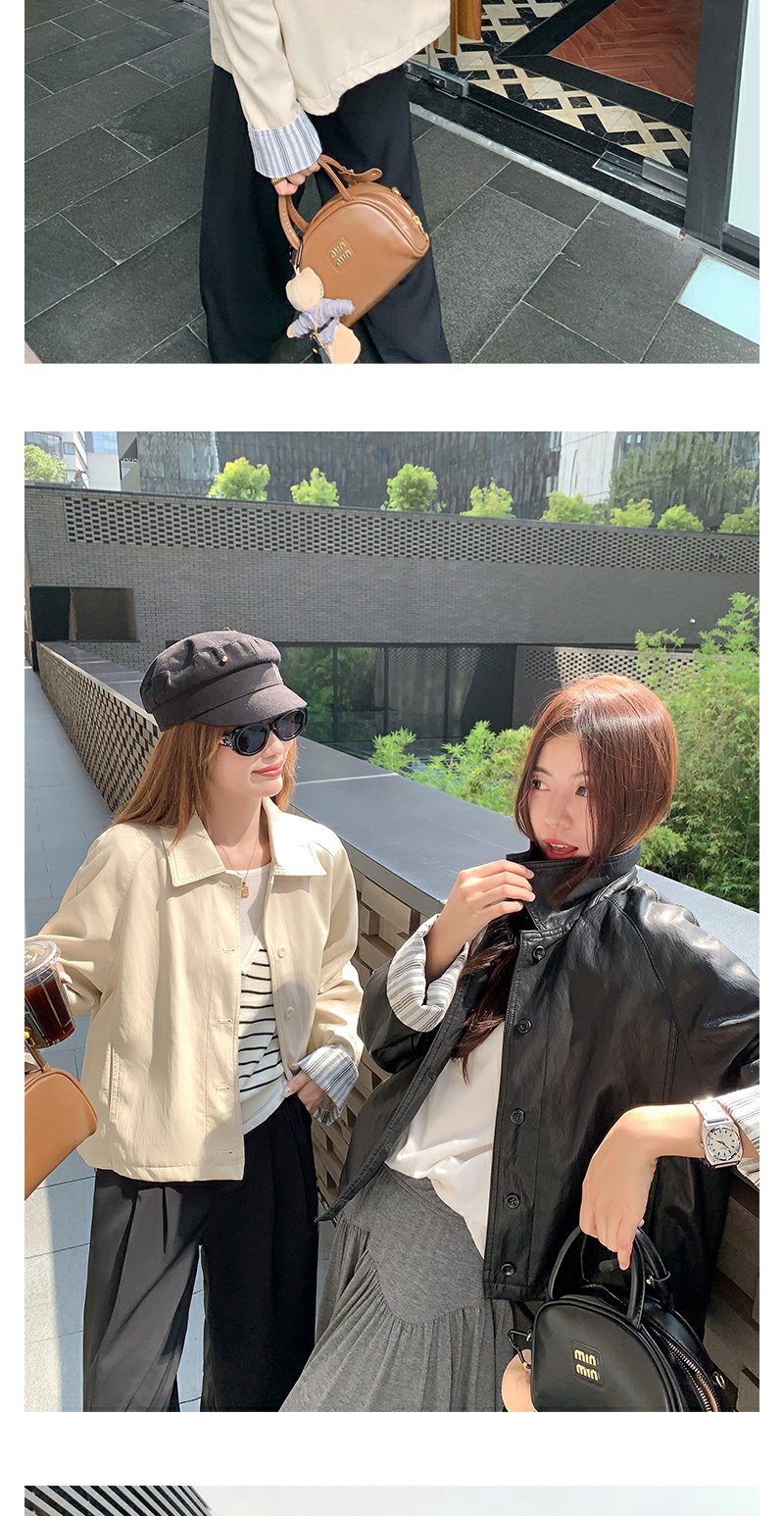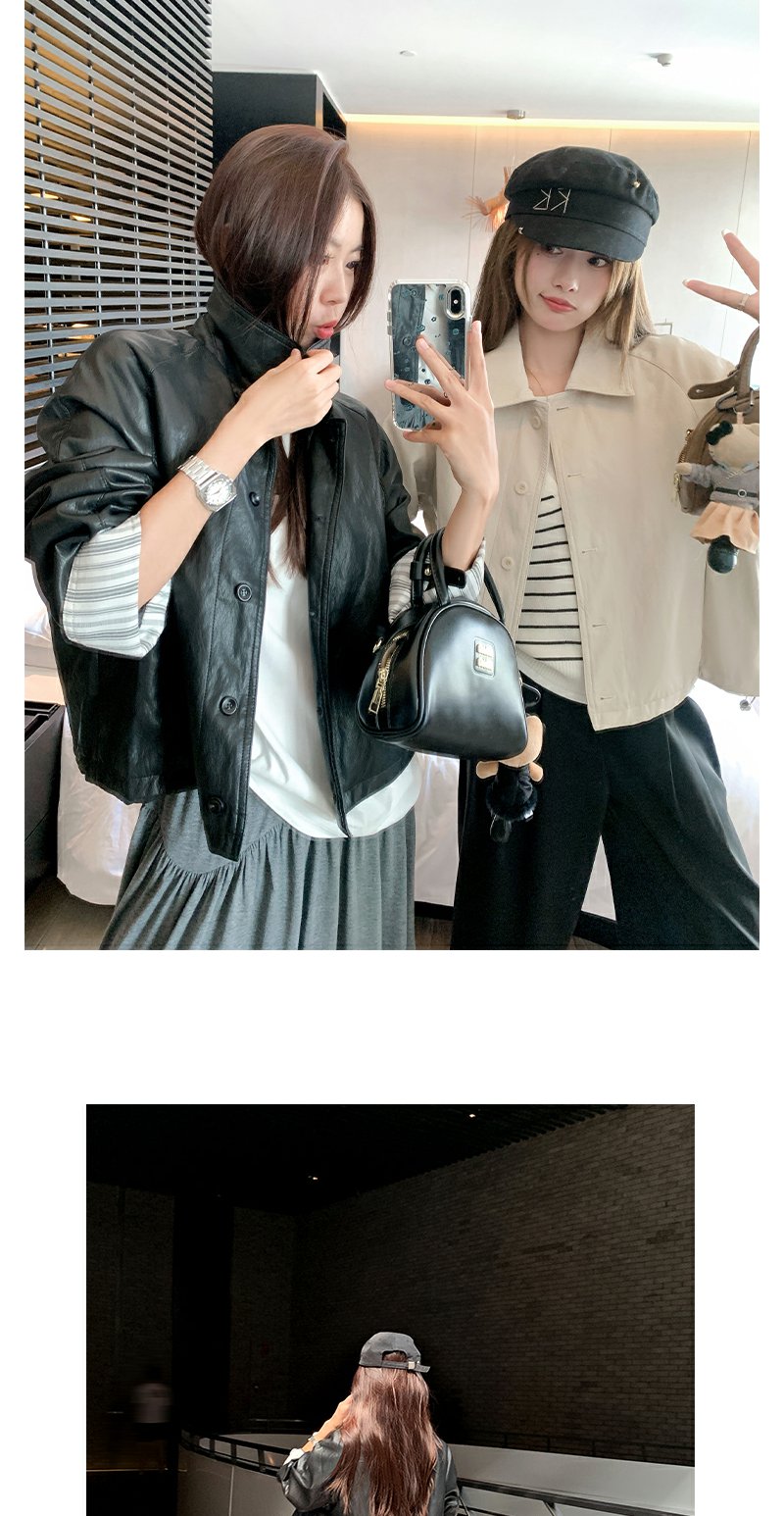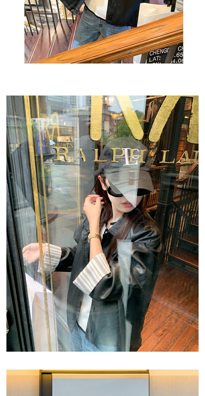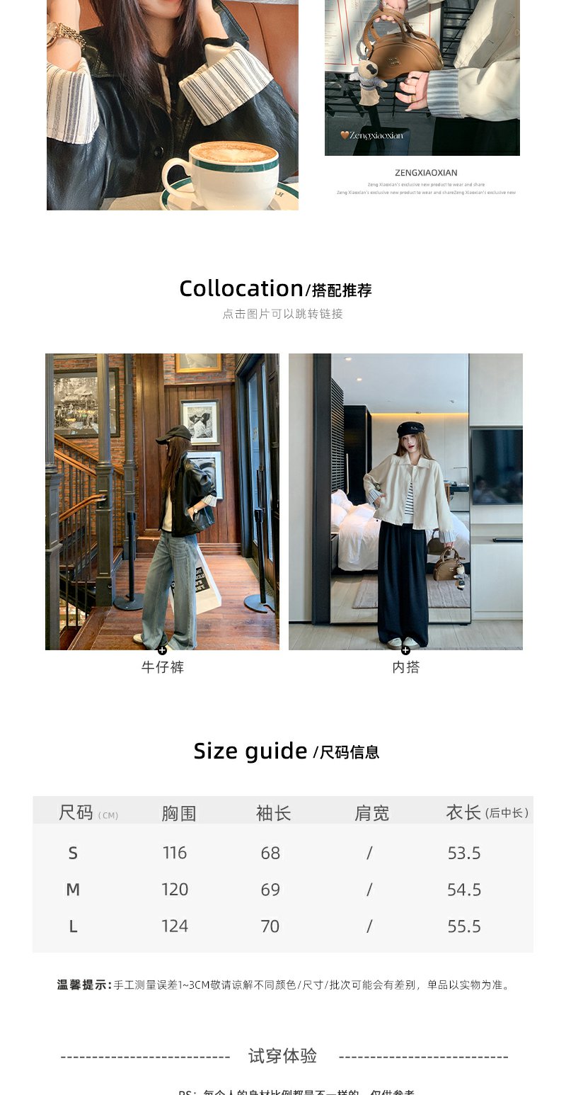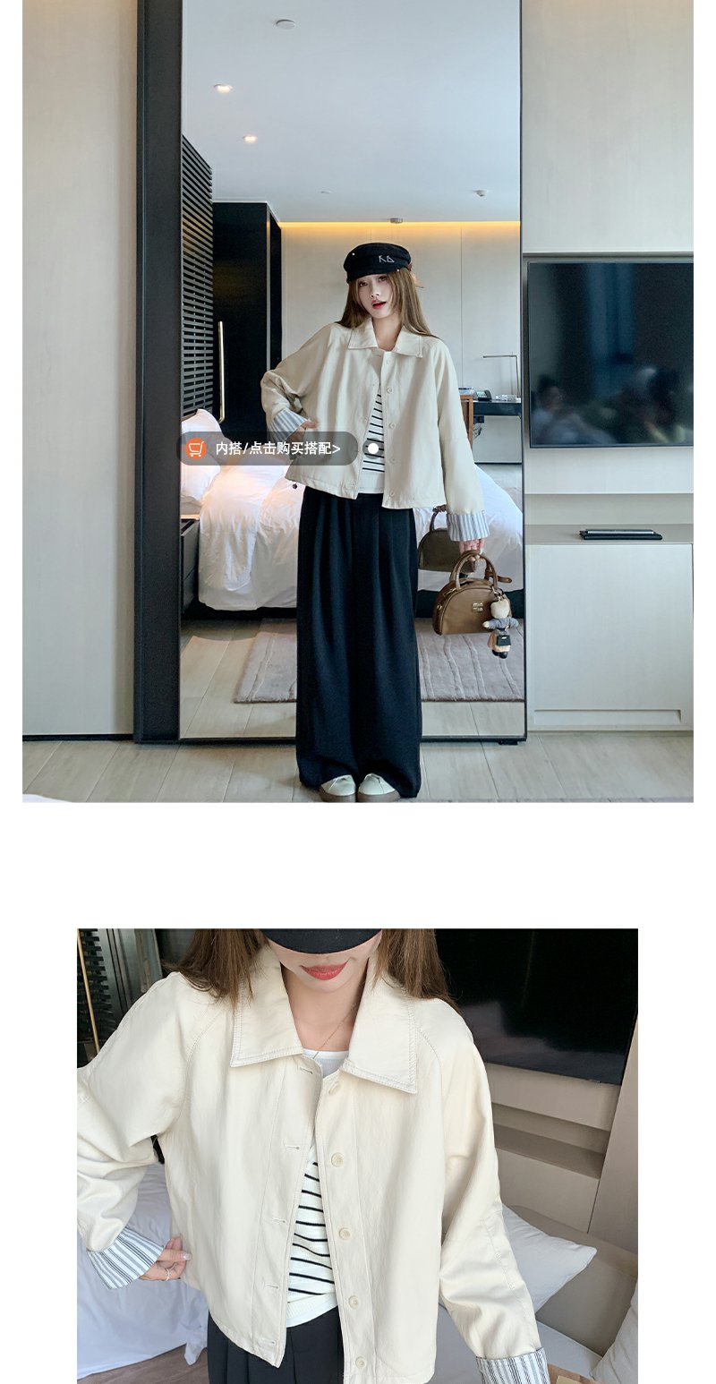 【269元任选2件】现货!成本巨贵,拍下包赚!条纹翻边皮衣短外套夹克