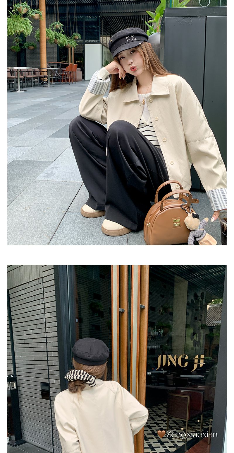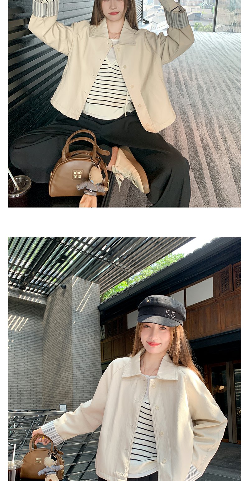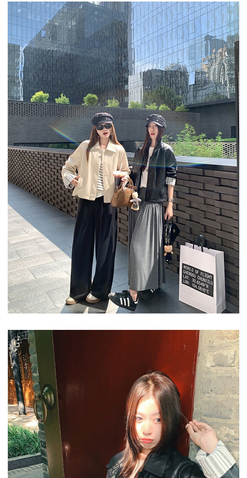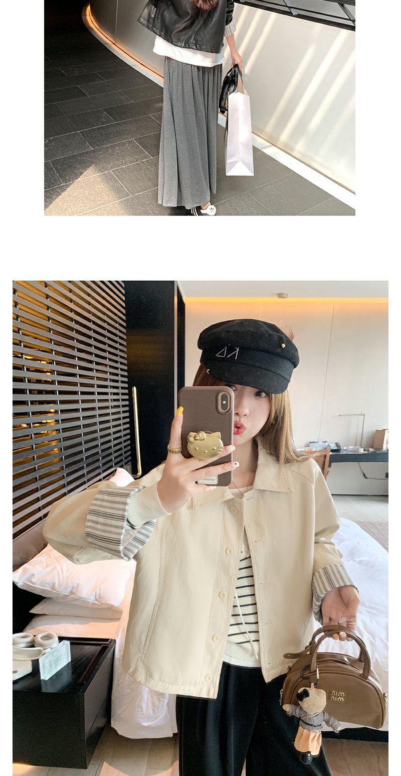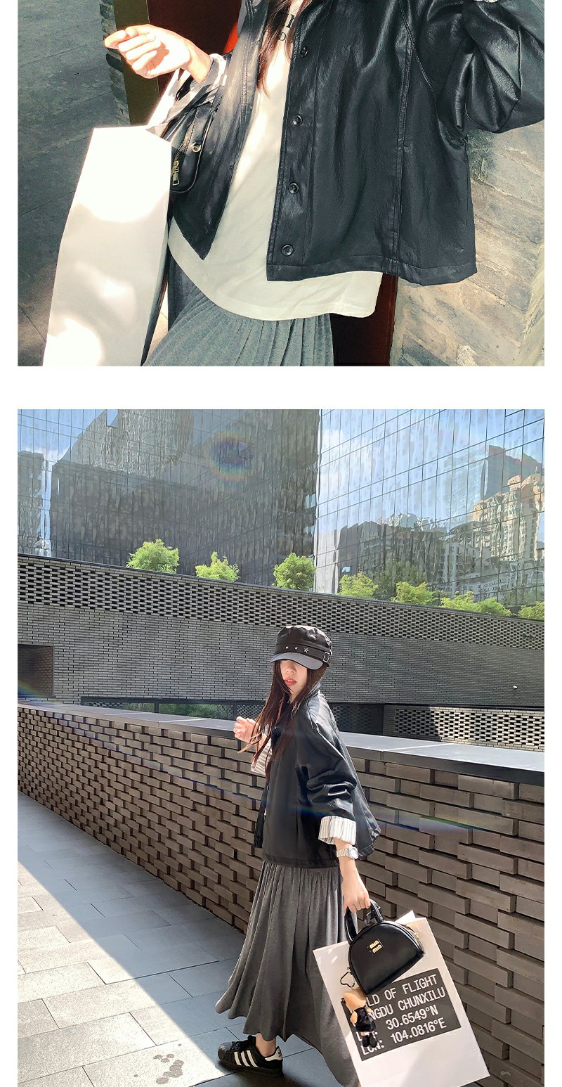 【269元任选2件】现货!成本巨贵,拍下包赚!条纹翻边皮衣短外套夹克
