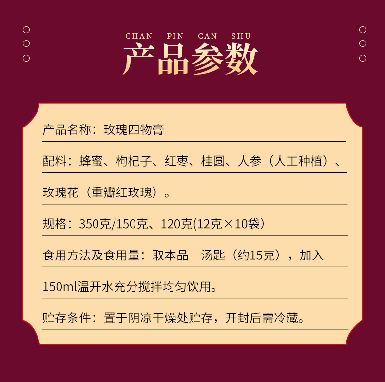 成分:枸杞子、红枣、桂圆、人参、玫瑰花