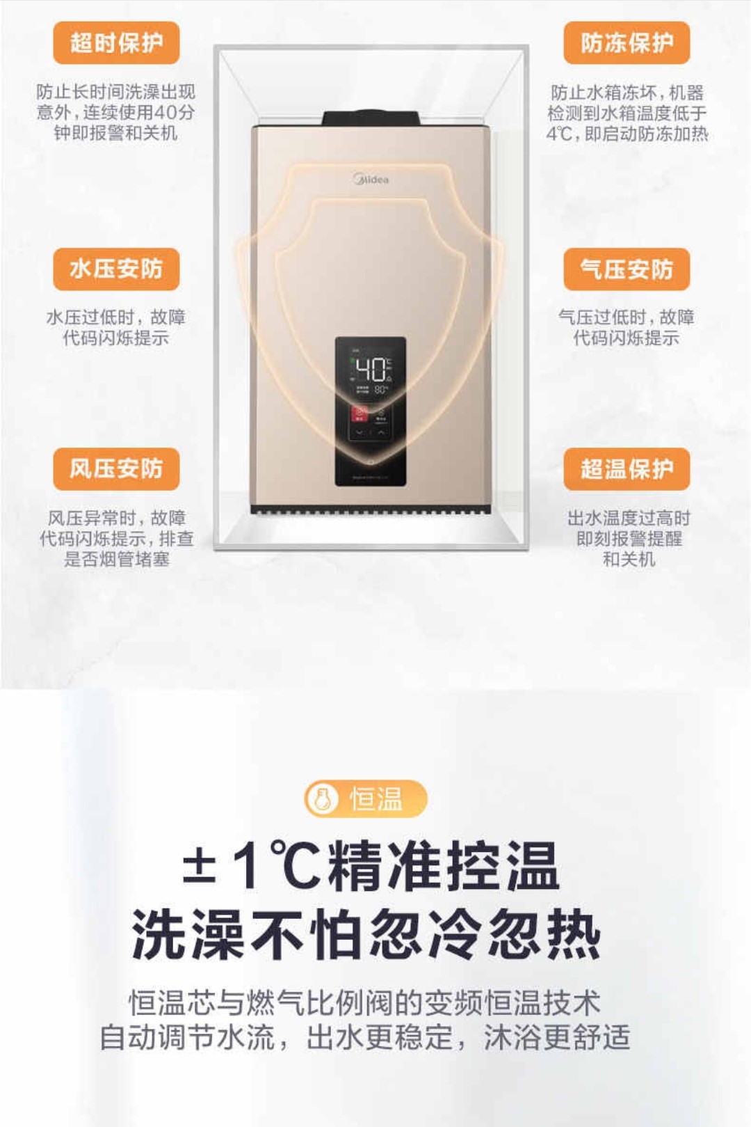 美的恒温式燃气热水器