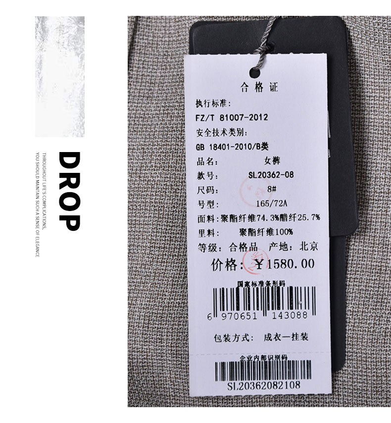 圣三利女装 气质优雅垂感锥形裤SL2036208