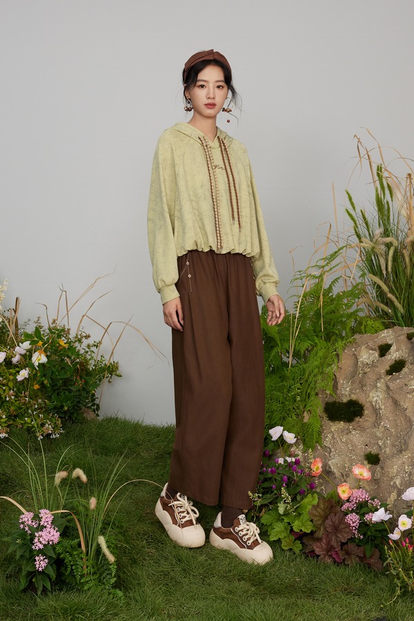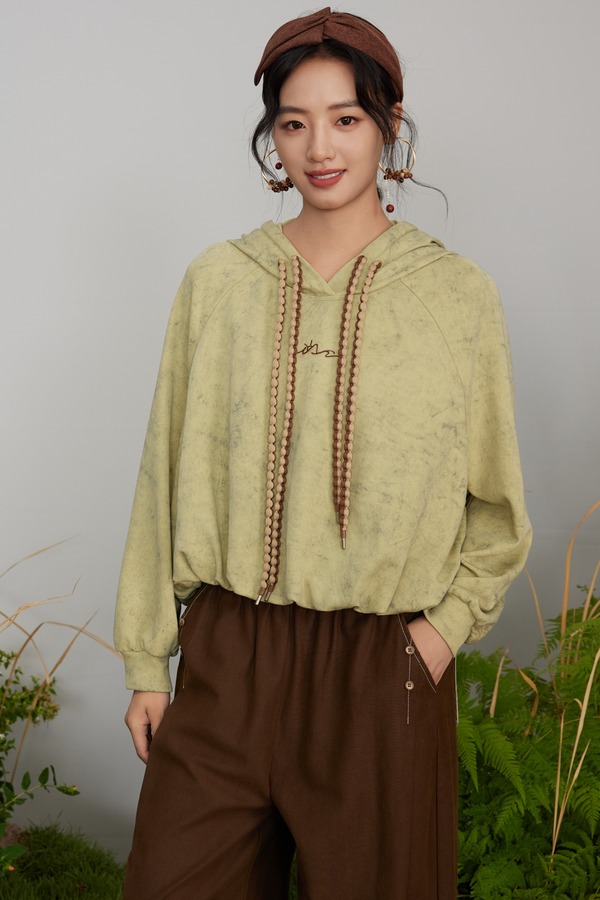 LNNNS 果绿色撞色编织带卫衣上衣 21308