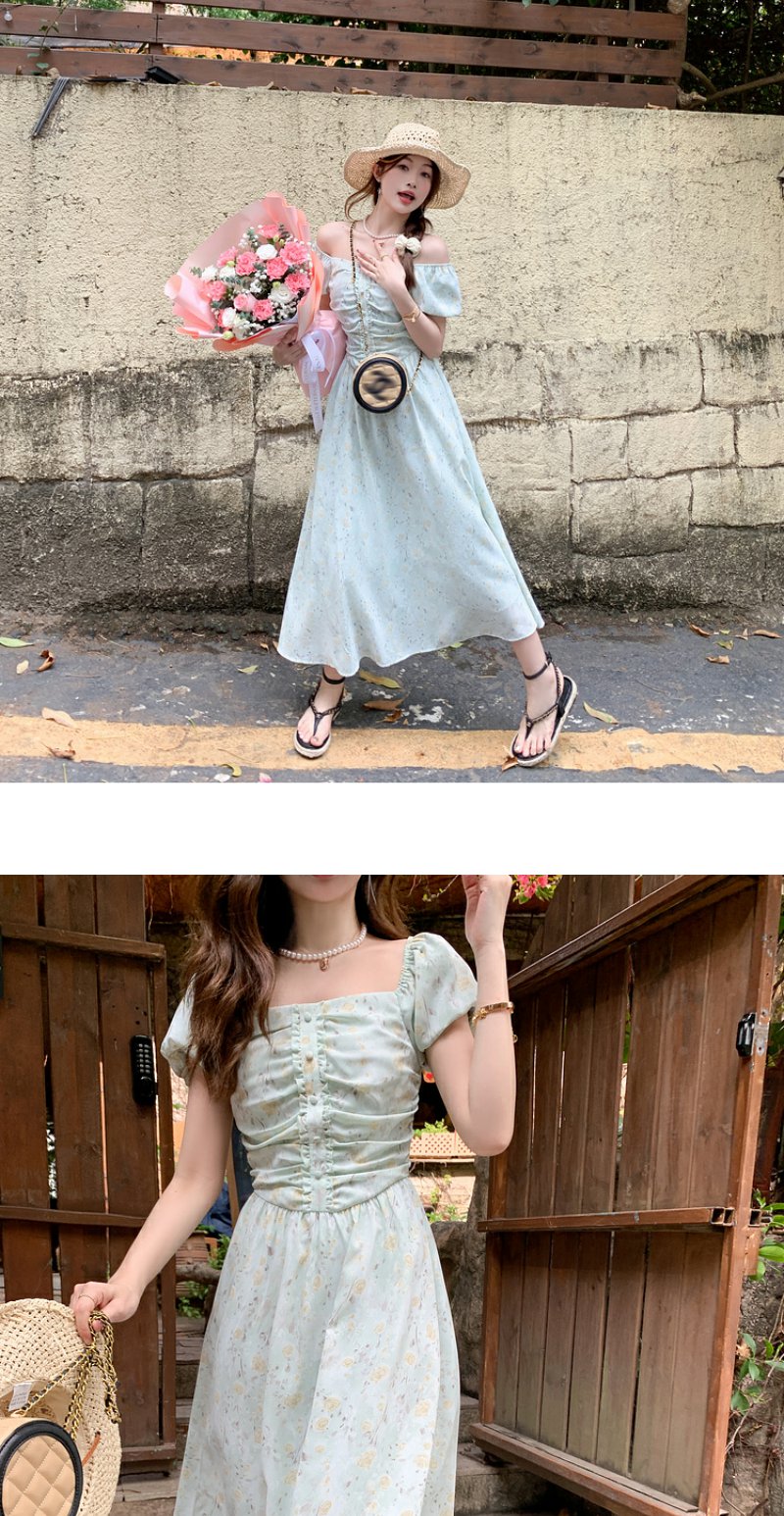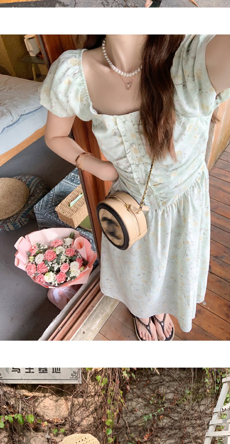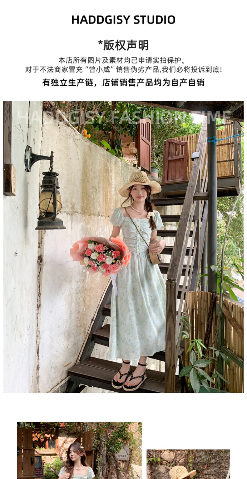 <曾小咸推荐>绿花方领连衣裙 日常169.99 立降80 秒杀价89.99 !