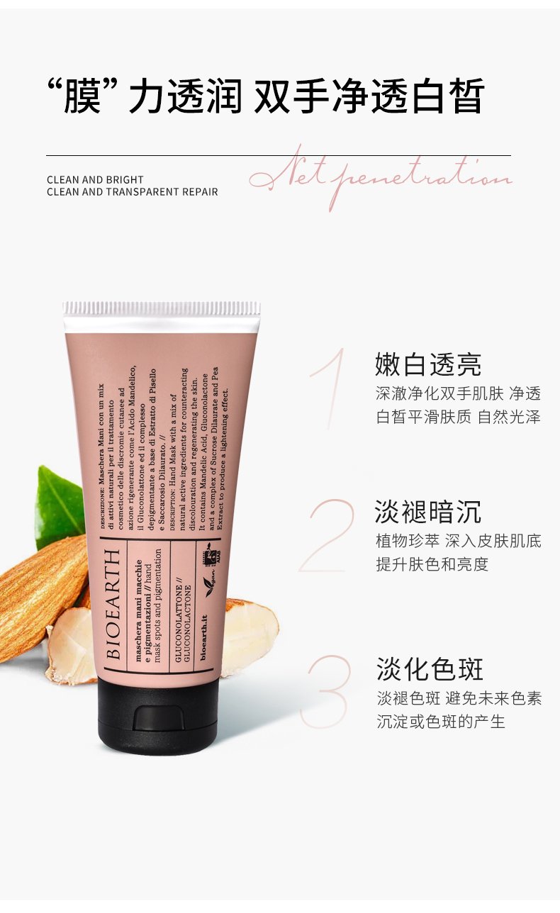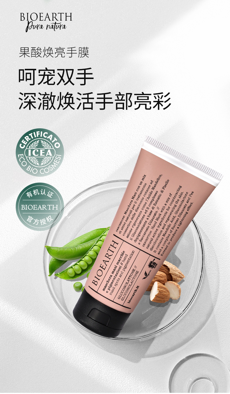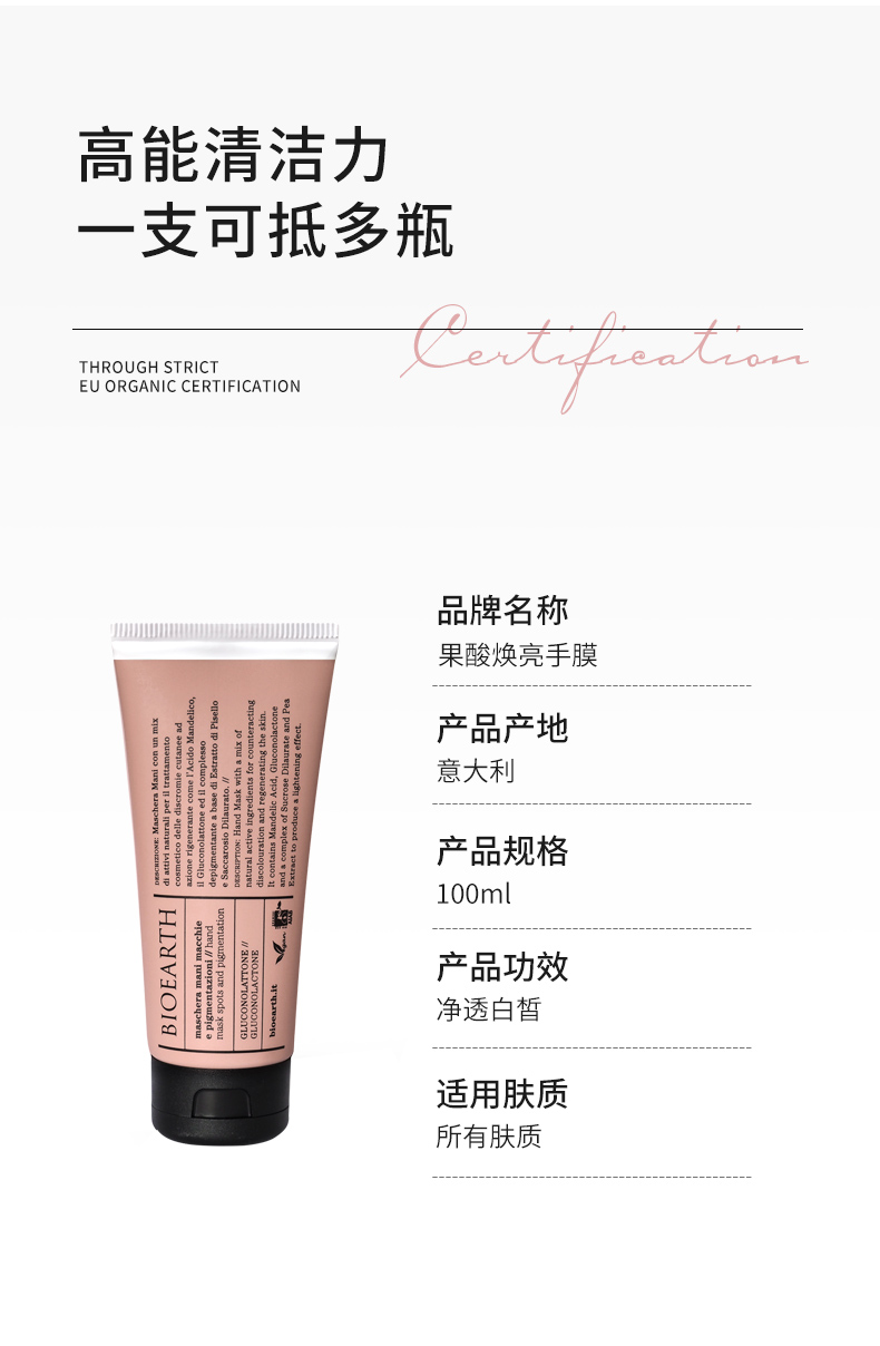 【軟化角质 嫰肤 提亮 祛玟 dan斑 可做脚膜】果酸焕亮手膜 100ml BIOEARTH 贝欧赫丝 意大利