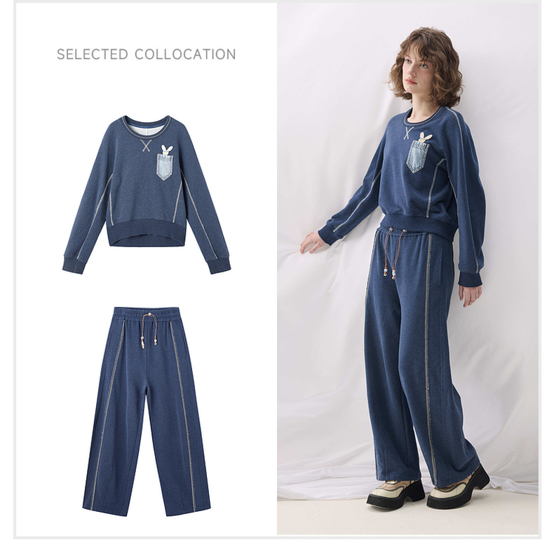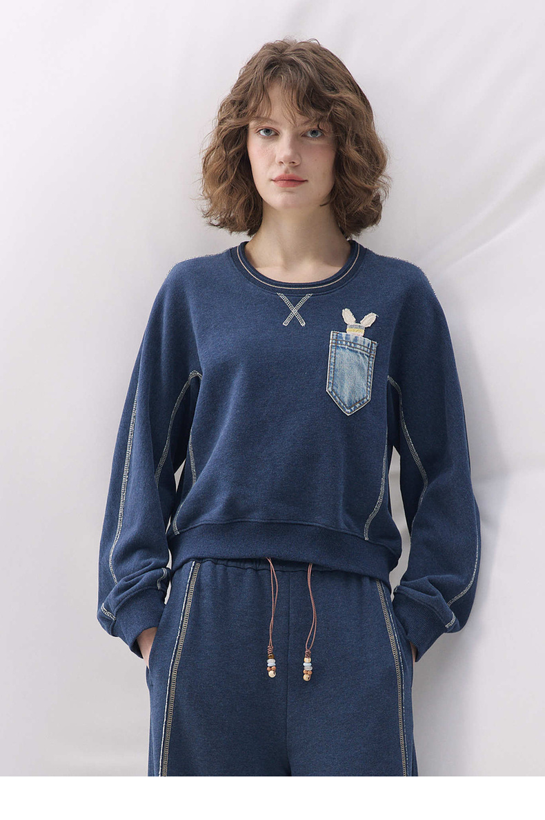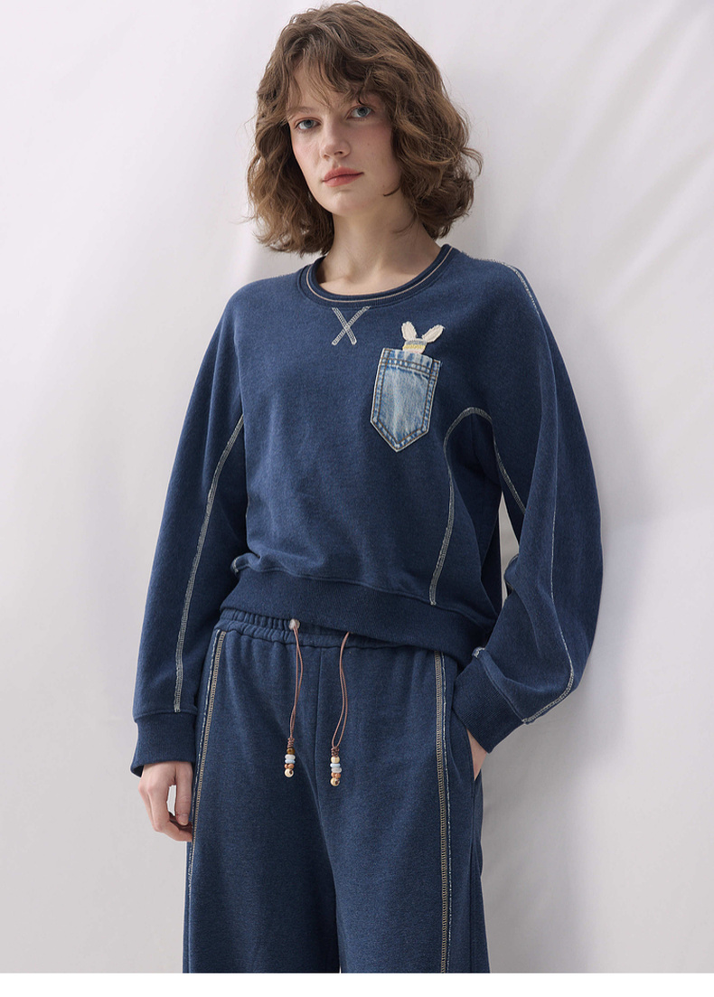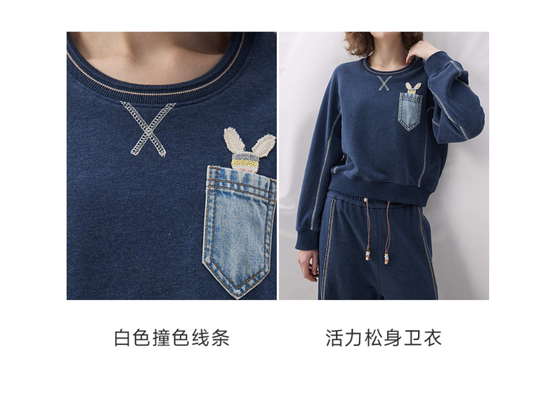 谜底圆领卫衣长袖2026春季新品撞色兔子章仔慵懒舒适女261MV0073