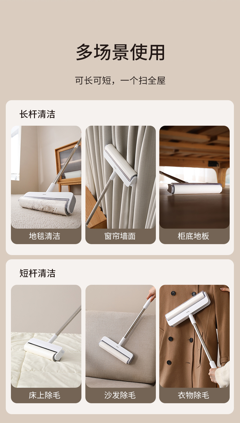 FaSoLa粘毛器长柄长杆可伸缩大号加长家用滚刷地板灰尘滚轮吸头发
