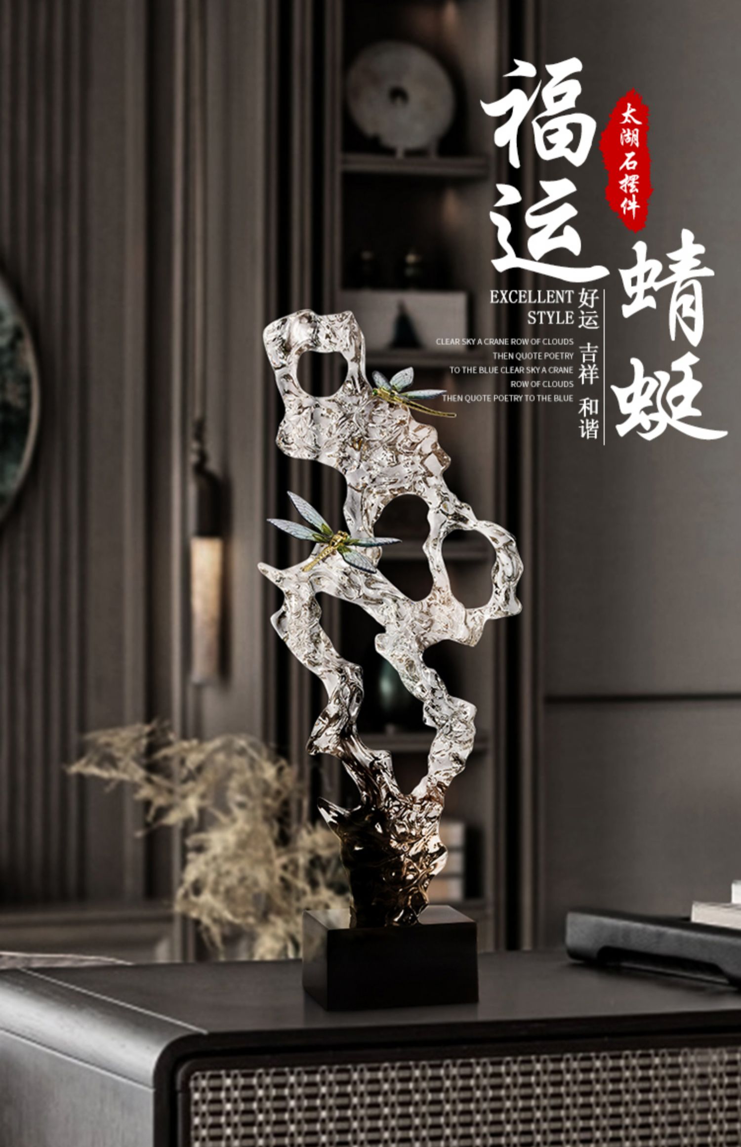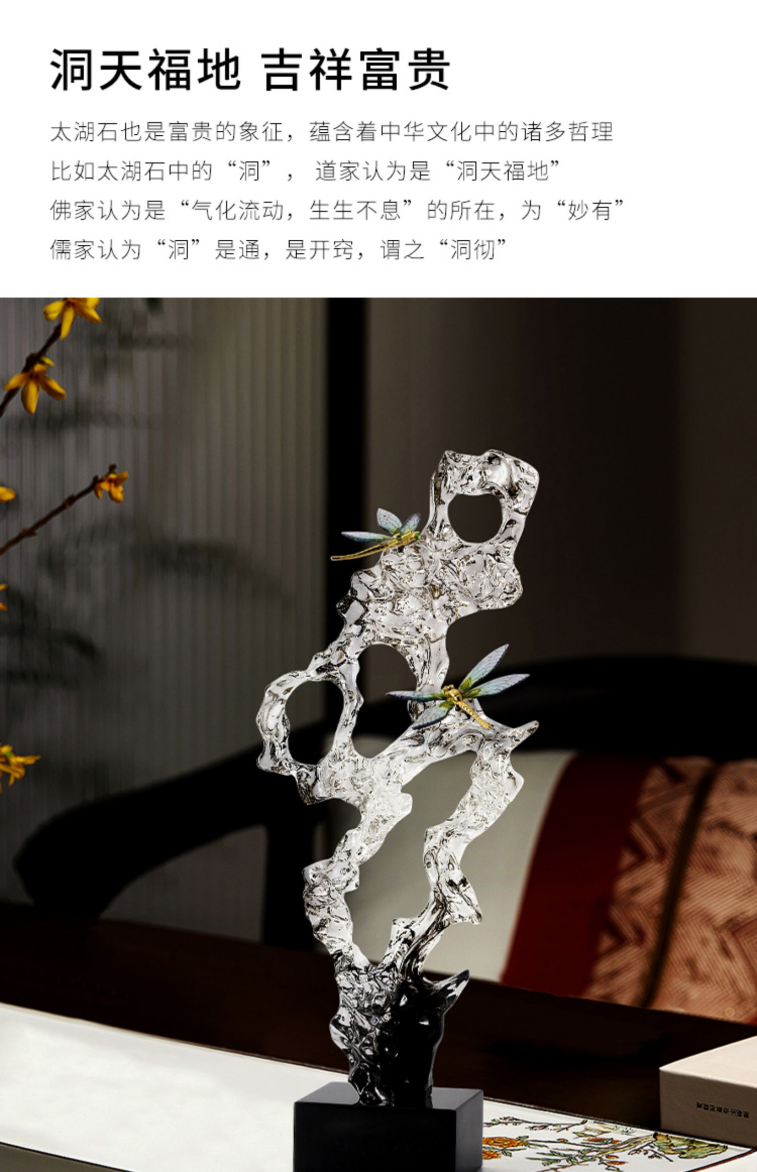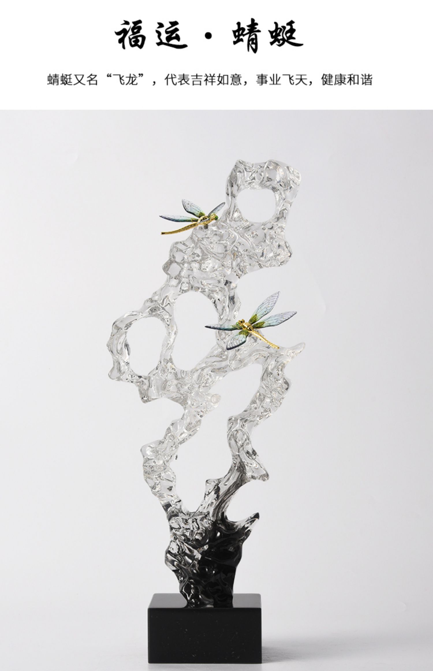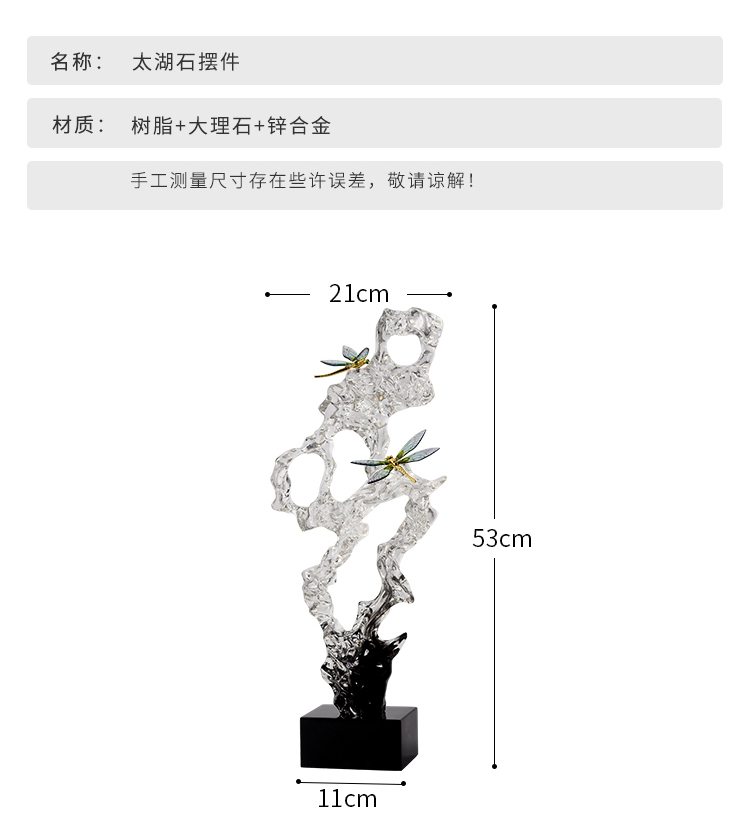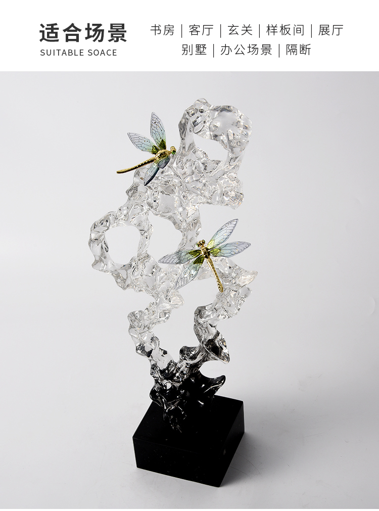 新中式透明太湖石玄关摆件轻奢高档客厅电视柜酒柜办公室软装饰品风生水起办公书房摆件开业礼品