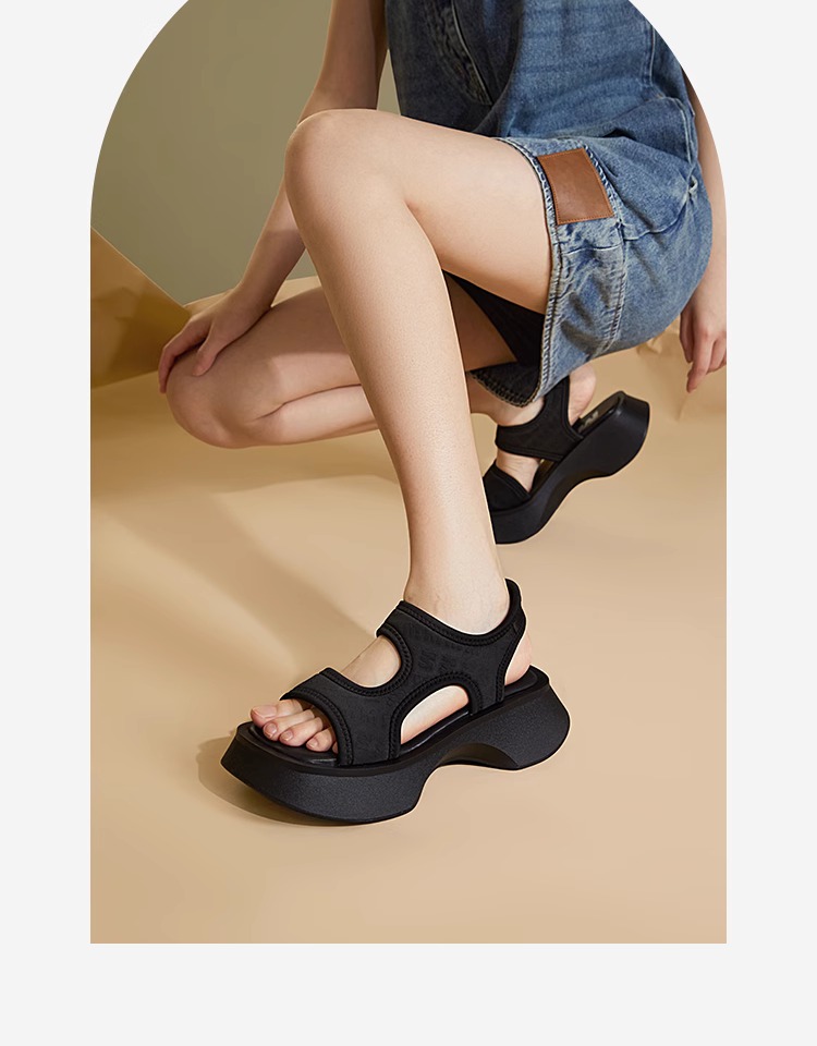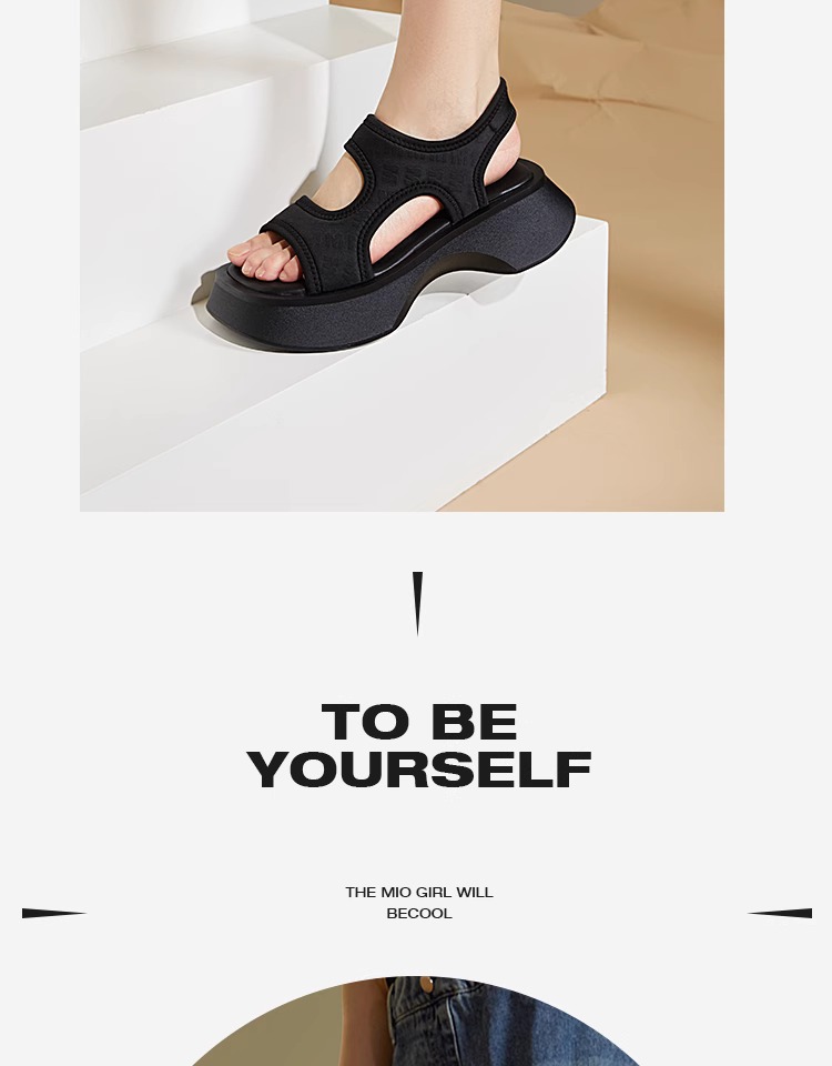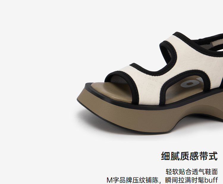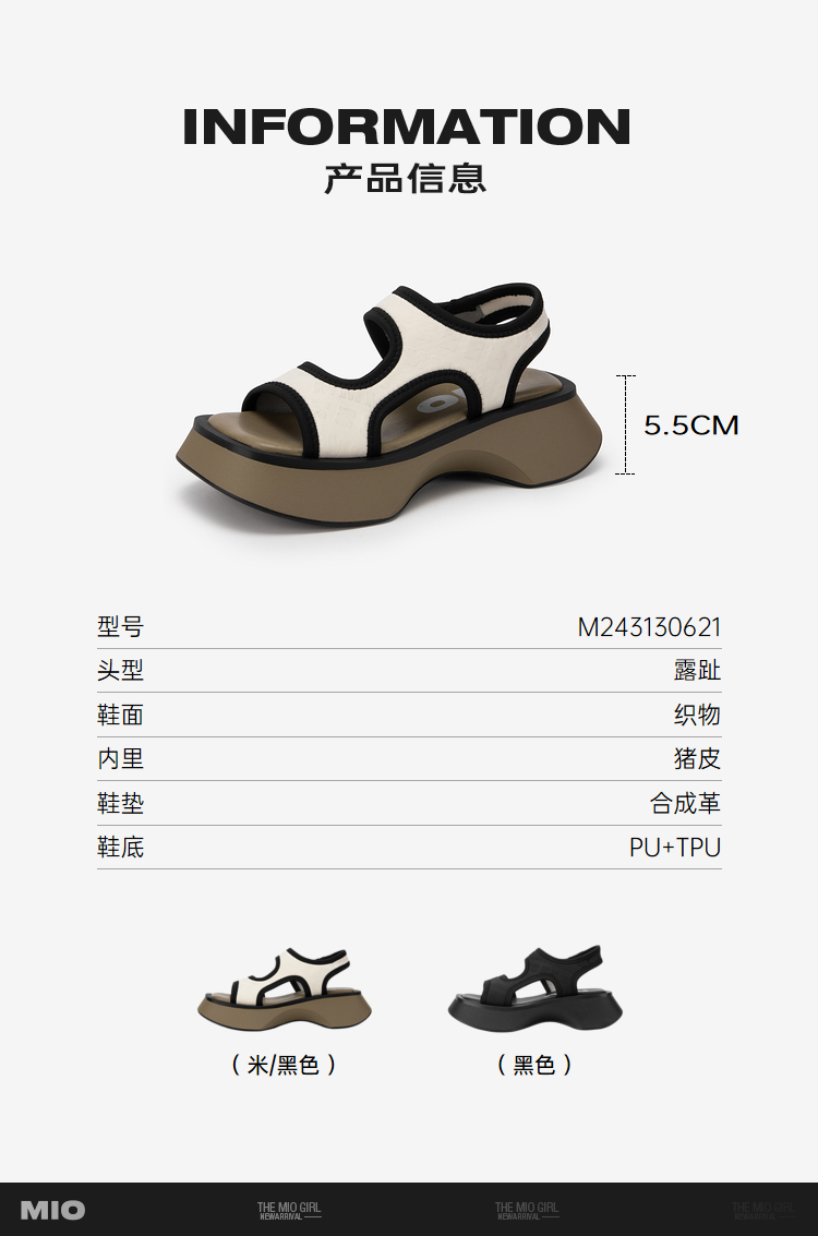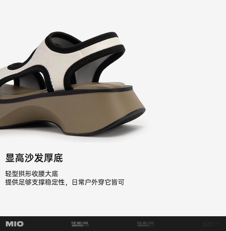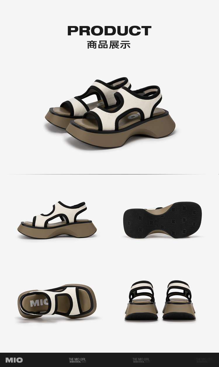 MIO米奥夏季凉鞋韩版拼色中跟沙发厚底时髦质感女凉鞋M243130621