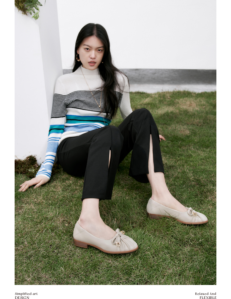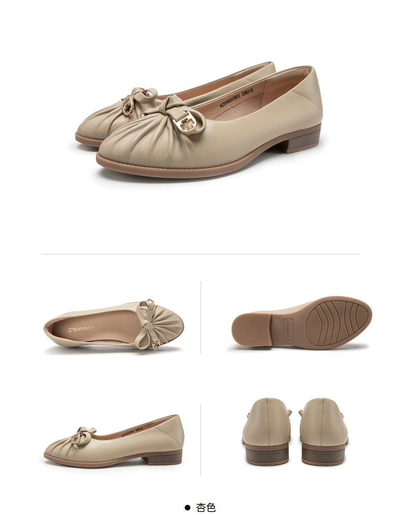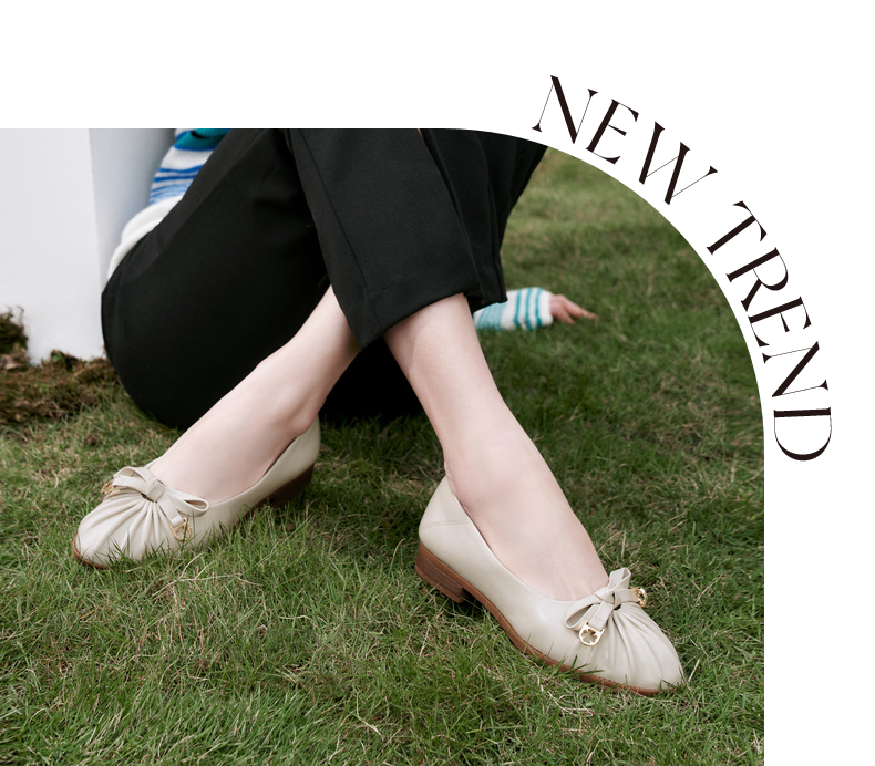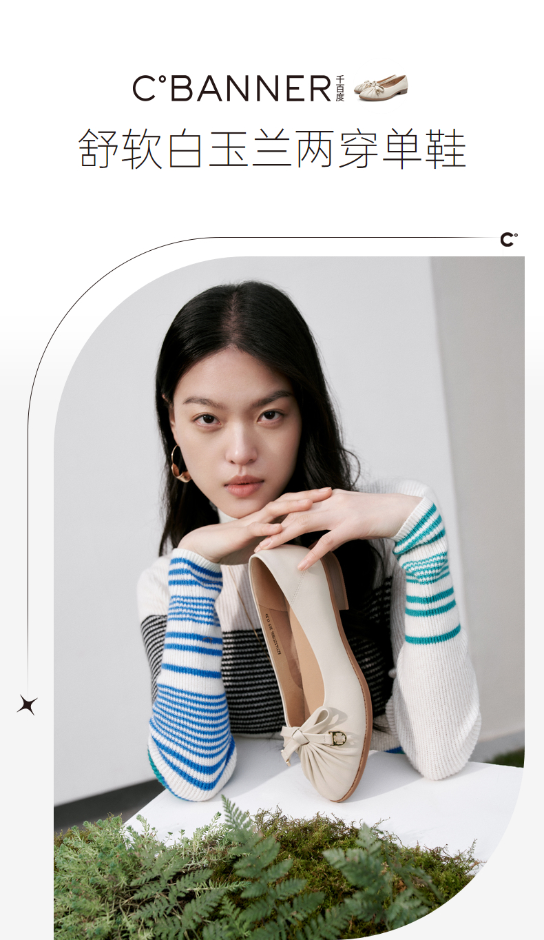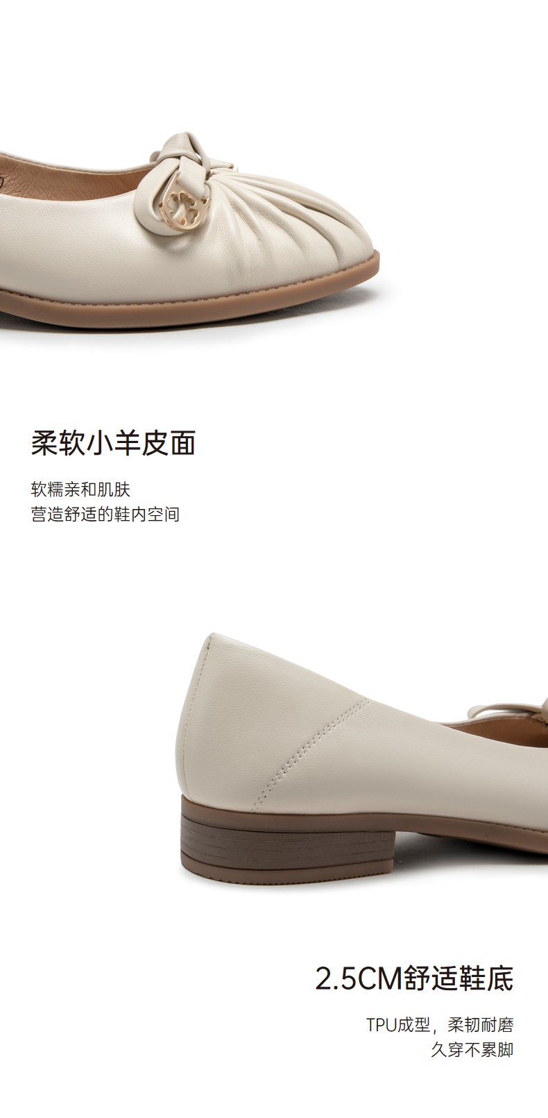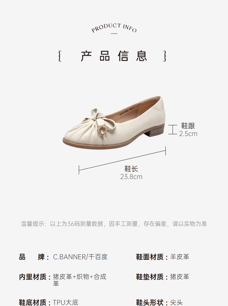 千百度女鞋春秋舒软白玉兰两穿单鞋晚晚鞋低跟真皮尖头 A23145257