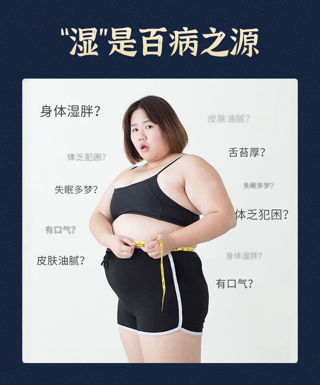 因为湿气重的人一般不爱运动,代谢比老人还慢,脾胃差,不消化,便溏,便秘,等于是热量只进不出,你不胖谁胖?