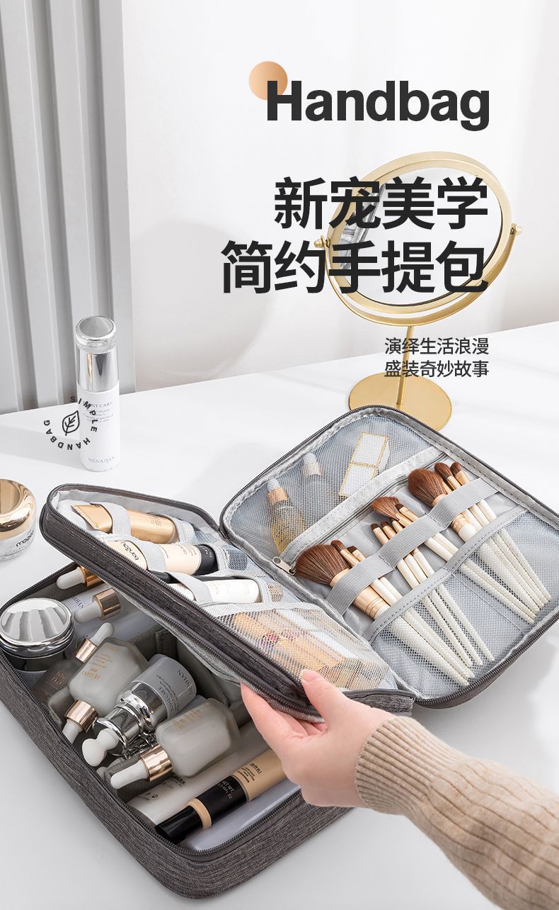 大容量化妆包 手提分区分层收纳包 旅行随身便携化妆袋 防水洗漱包女