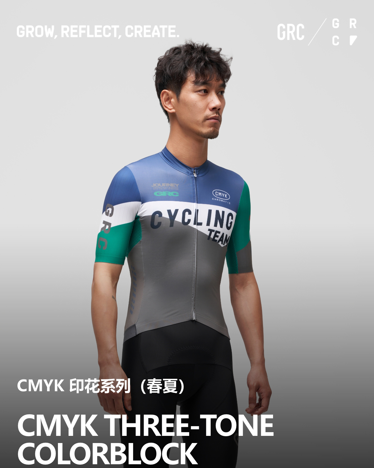 GRC桀骜无尽春夏新款CMYK三拼色印花短袖上衣公路自行车骑行服男女