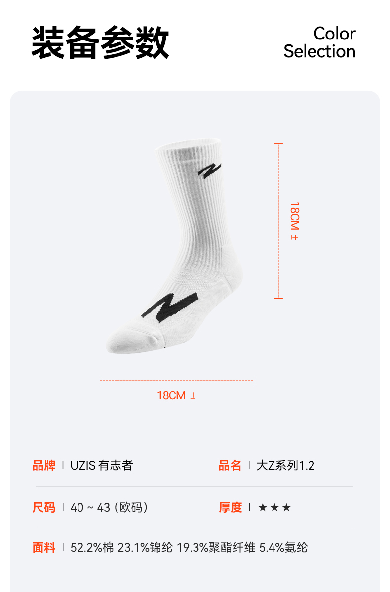 有志者UZIS纯色袜子男长筒袜吸汗加厚毛巾袜高帮运动袜大Z系列1.2
