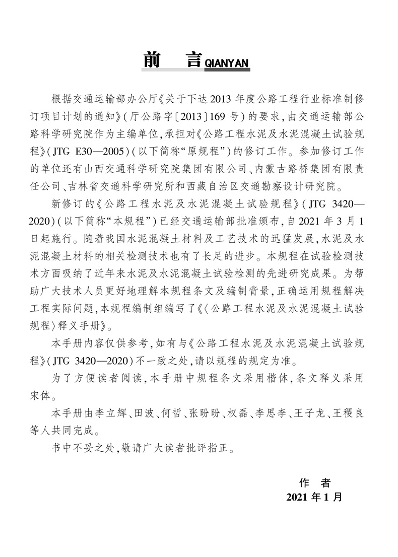 书名:《公路工程水泥及水泥混凝土试验规程》释义手册(JTG 3420—2020)