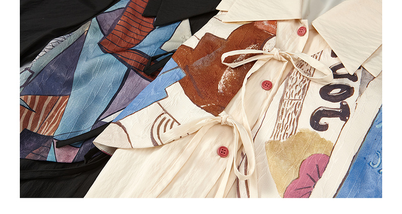 两三事月移花影夏季新款复古印花绑带长袖衬衫女宽松衬衣
