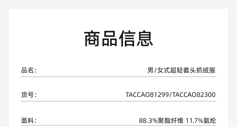探路者男式超轻套头抓绒服TACCAO81299(新年款)