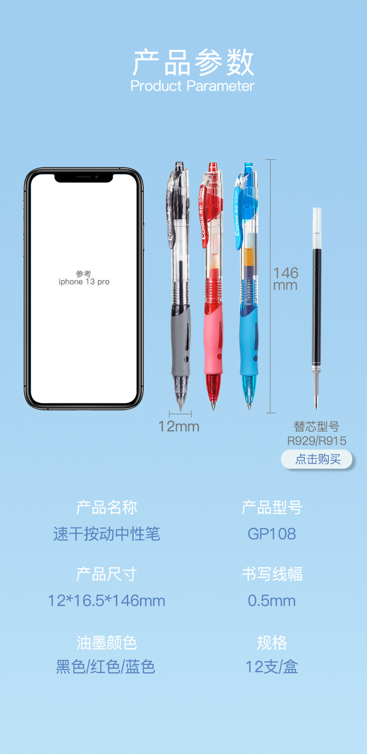 齐心中性笔GP108黑色0.5mm弹簧子弹头