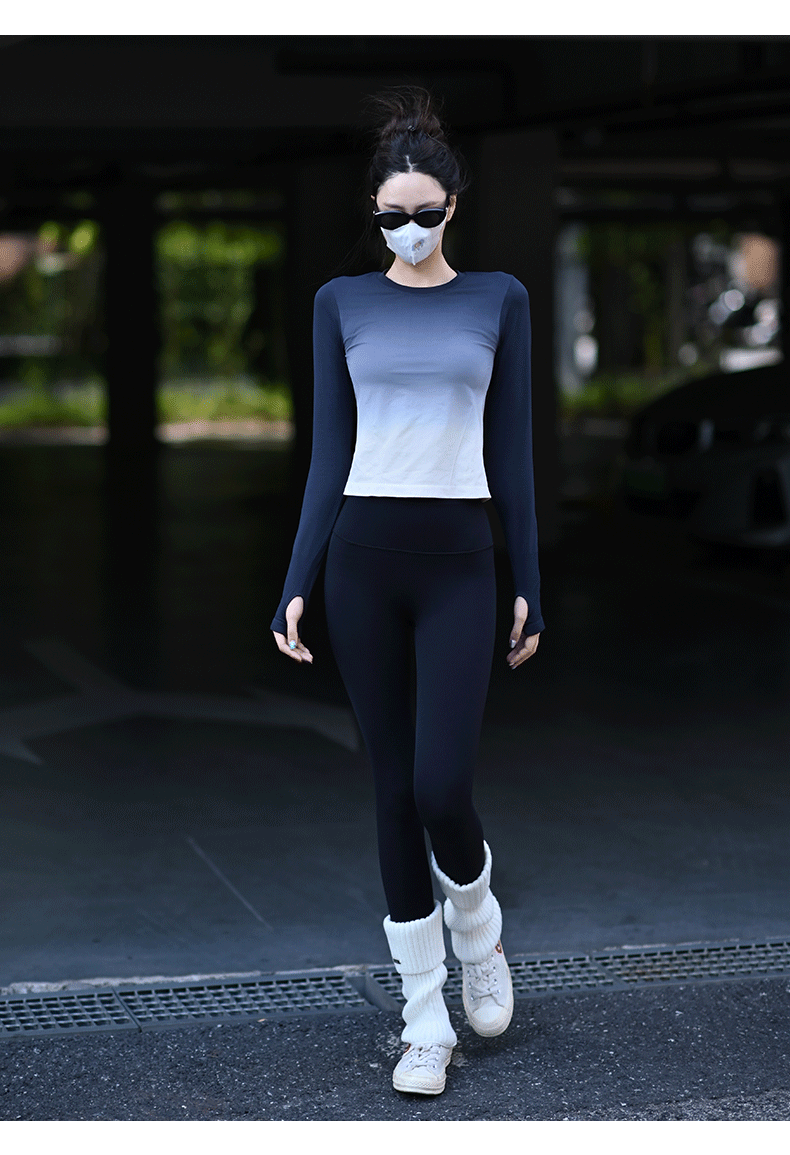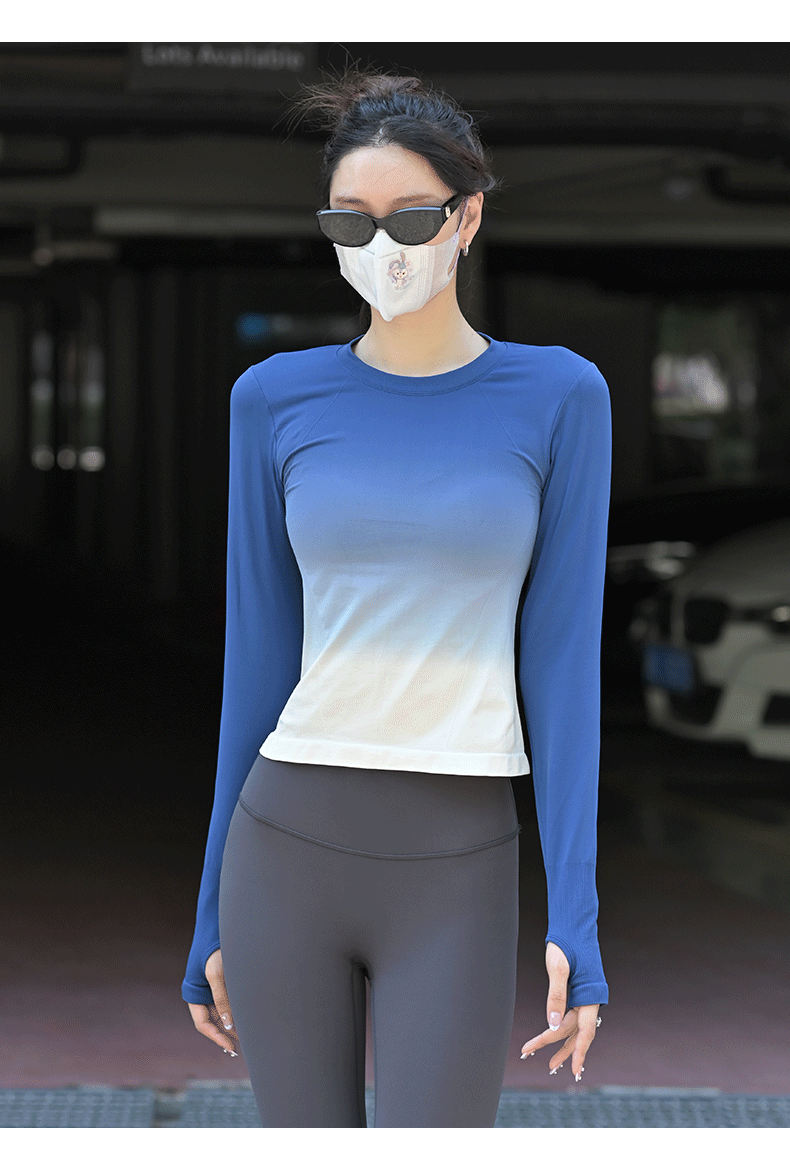 Beemen无缝一体织瑜伽服运动上衣女秋冬渐变色长袖t恤