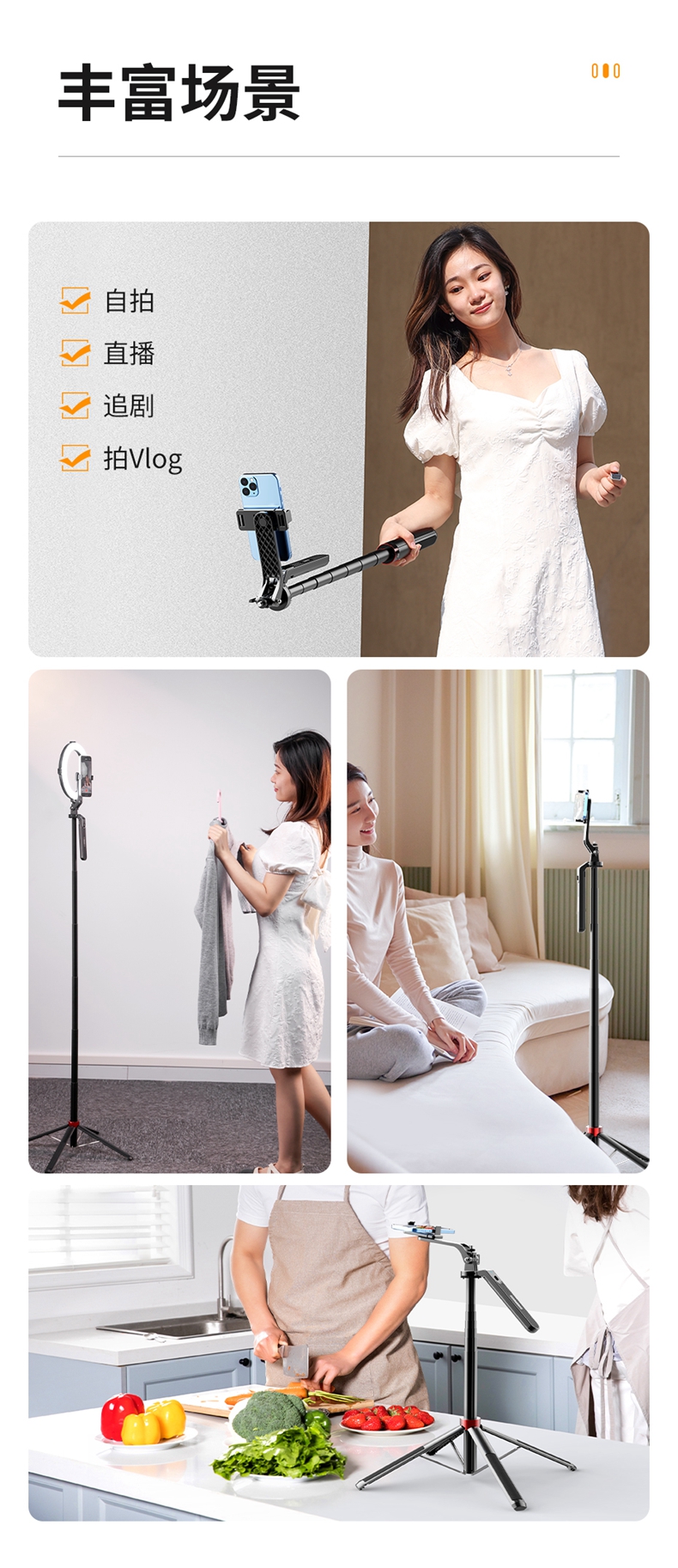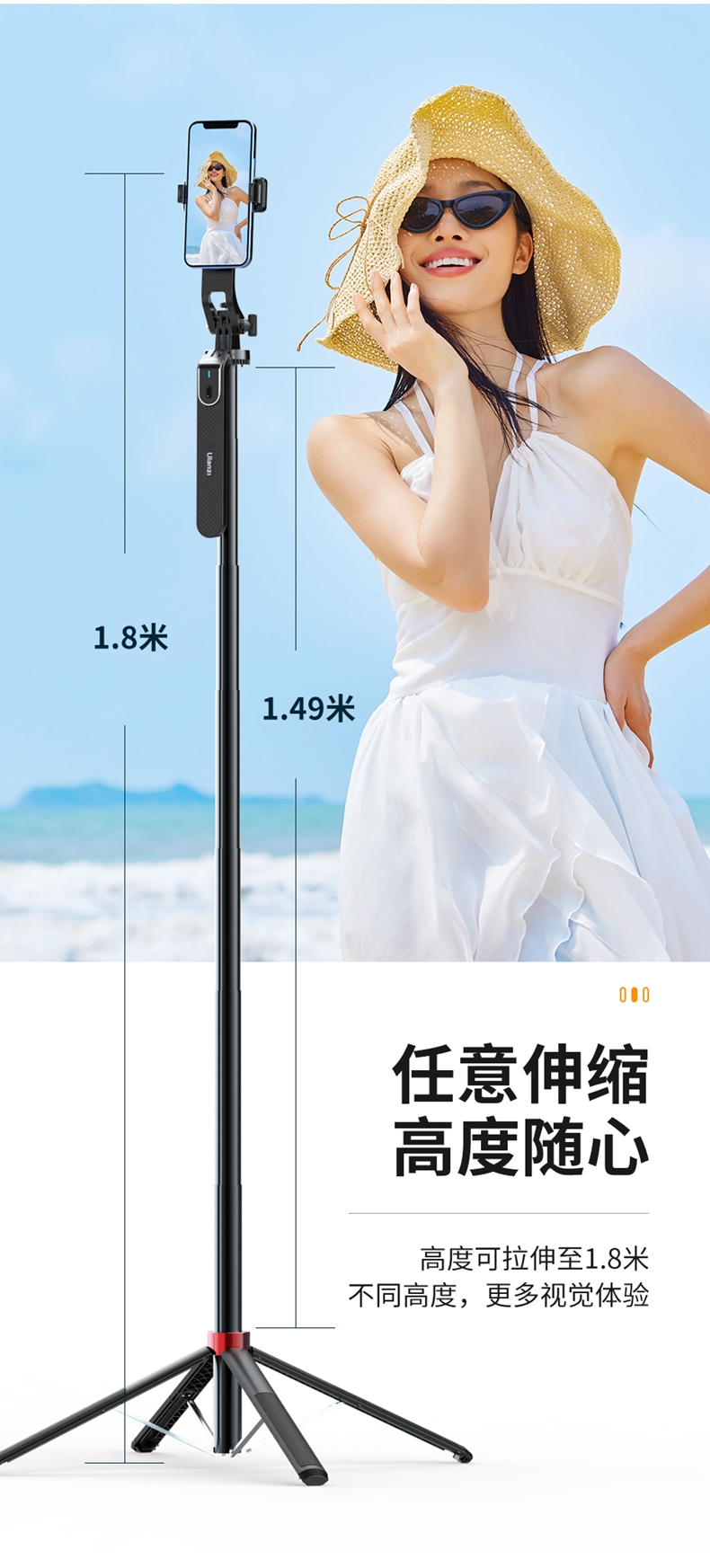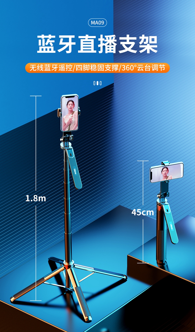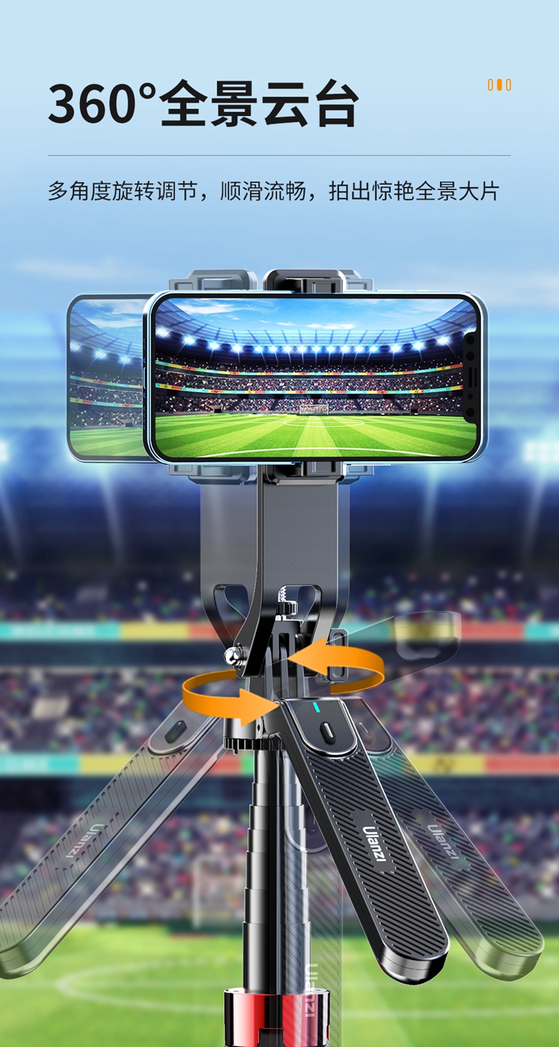 Ulanzi优篮子 MA09 自拍杆四脚架蓝牙无线遥控手机卡片机运动相机通用拍照摄影直播vlog360°云台便携支架