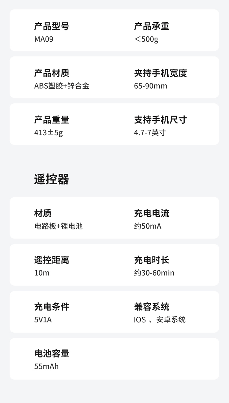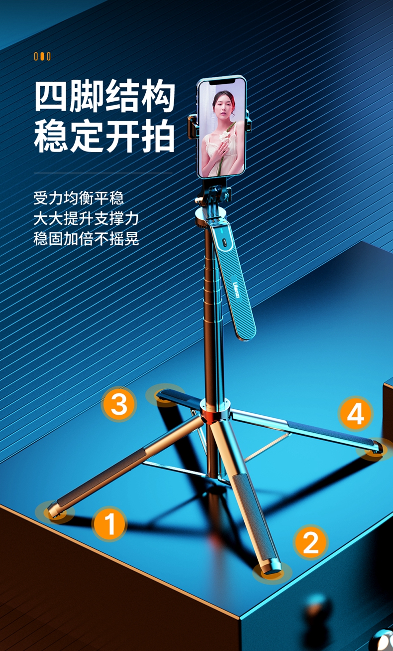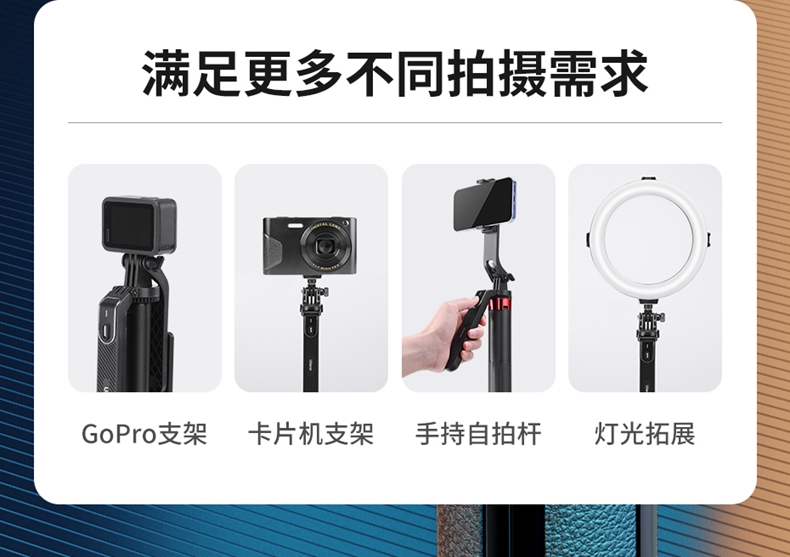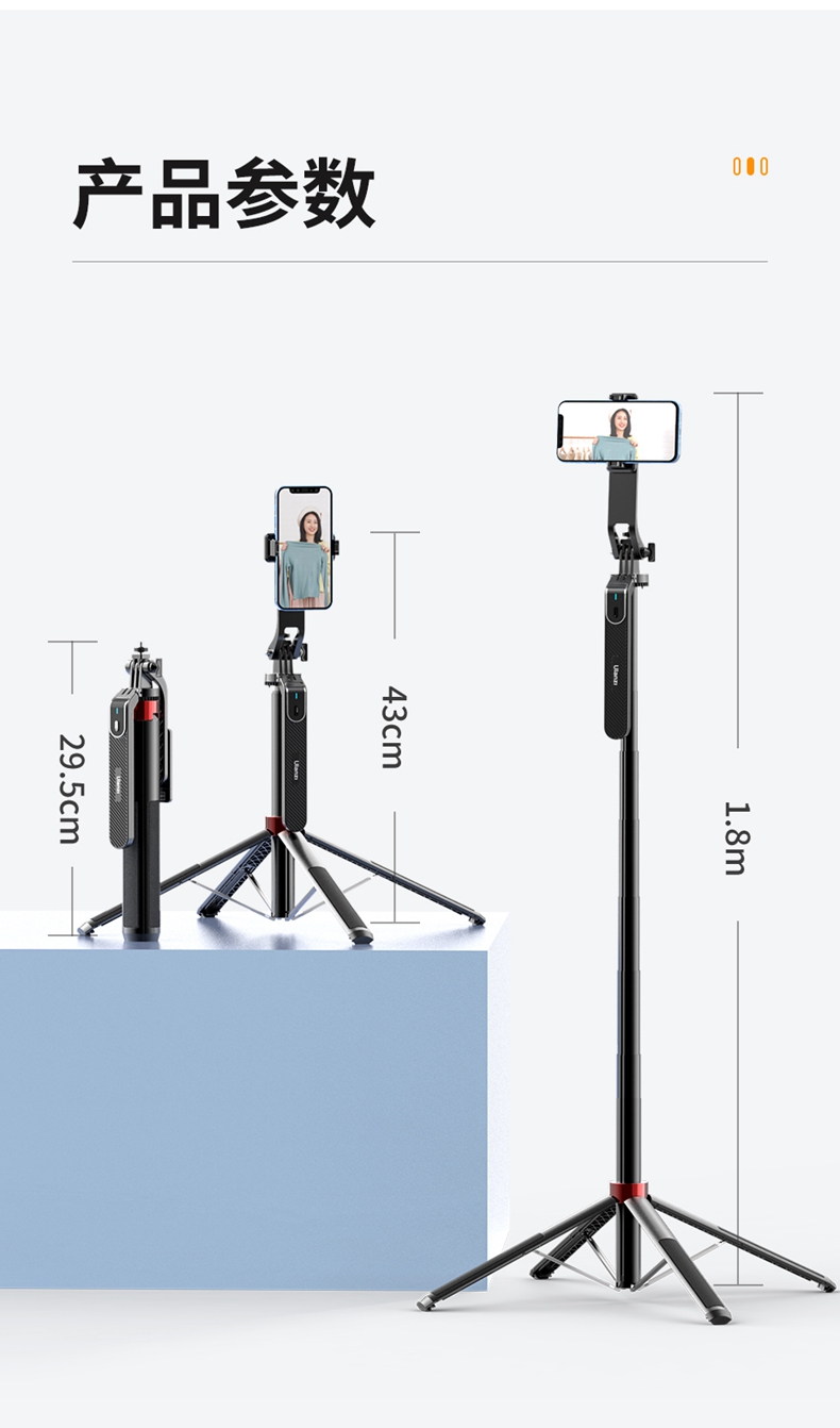 Ulanzi优篮子 MA09 自拍杆四脚架蓝牙无线遥控手机卡片机运动相机通用拍照摄影直播vlog360°云台便携支架