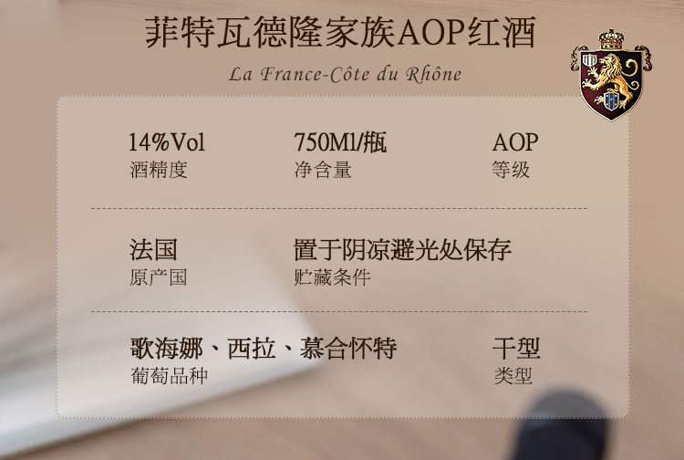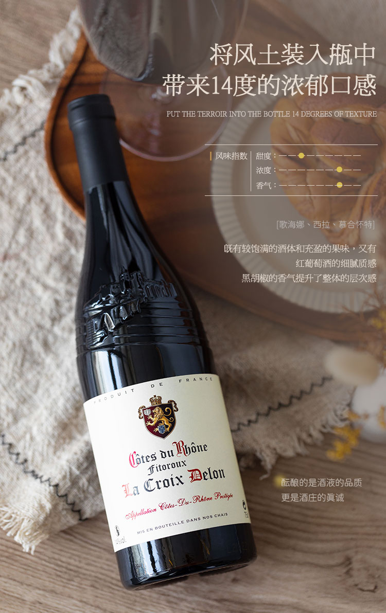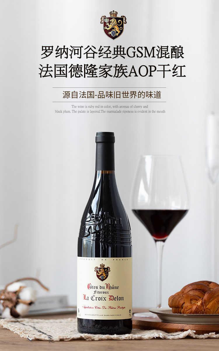【4代传承·经典GSM混酿】法国罗纳河谷原瓶进口AOP 德隆家族干红葡萄酒 14%vol