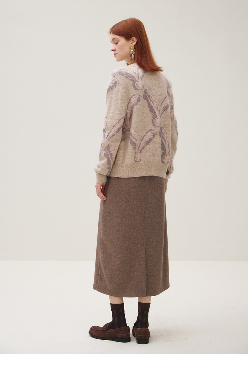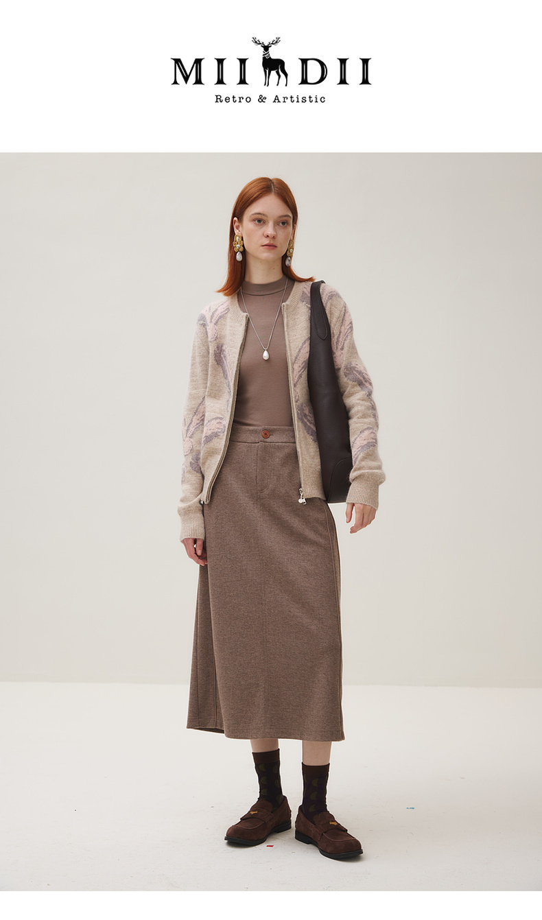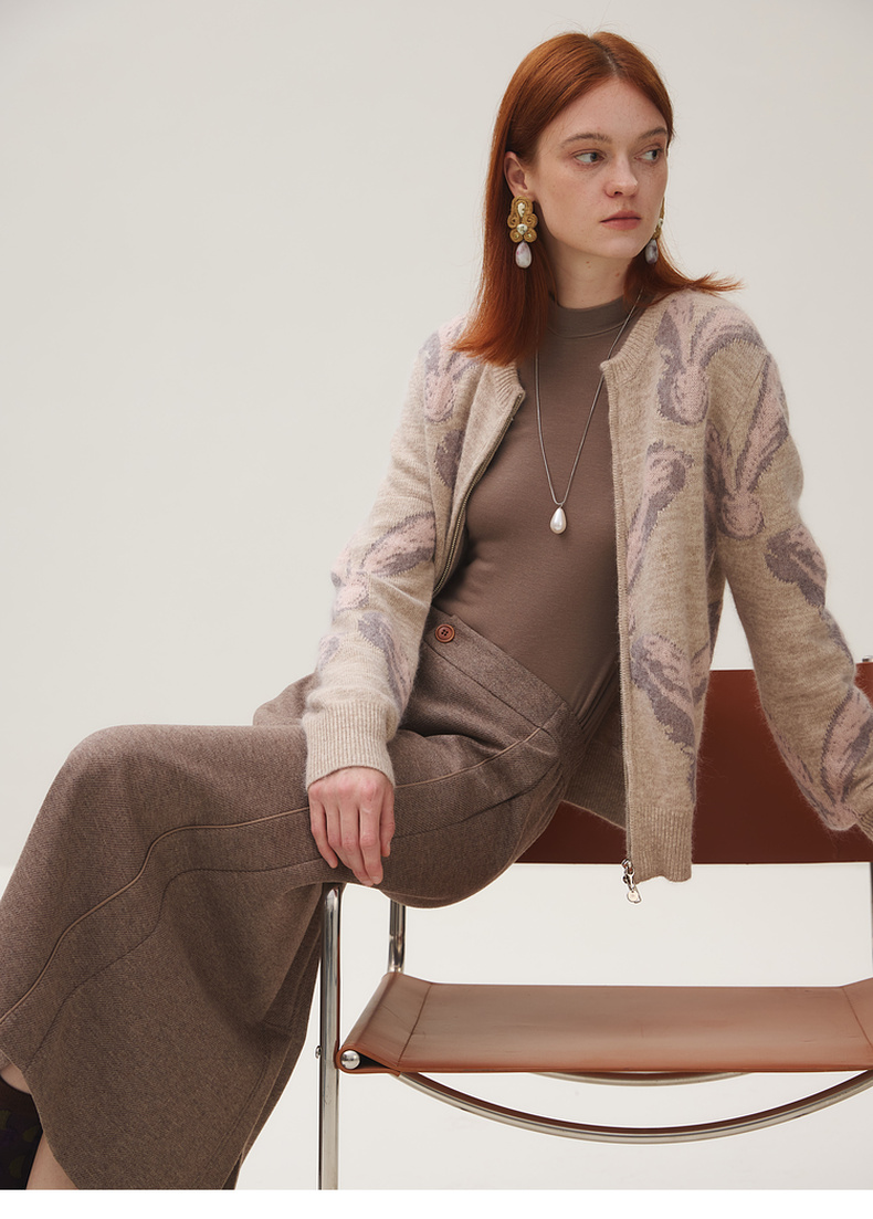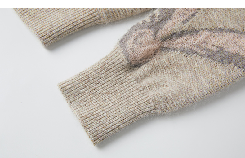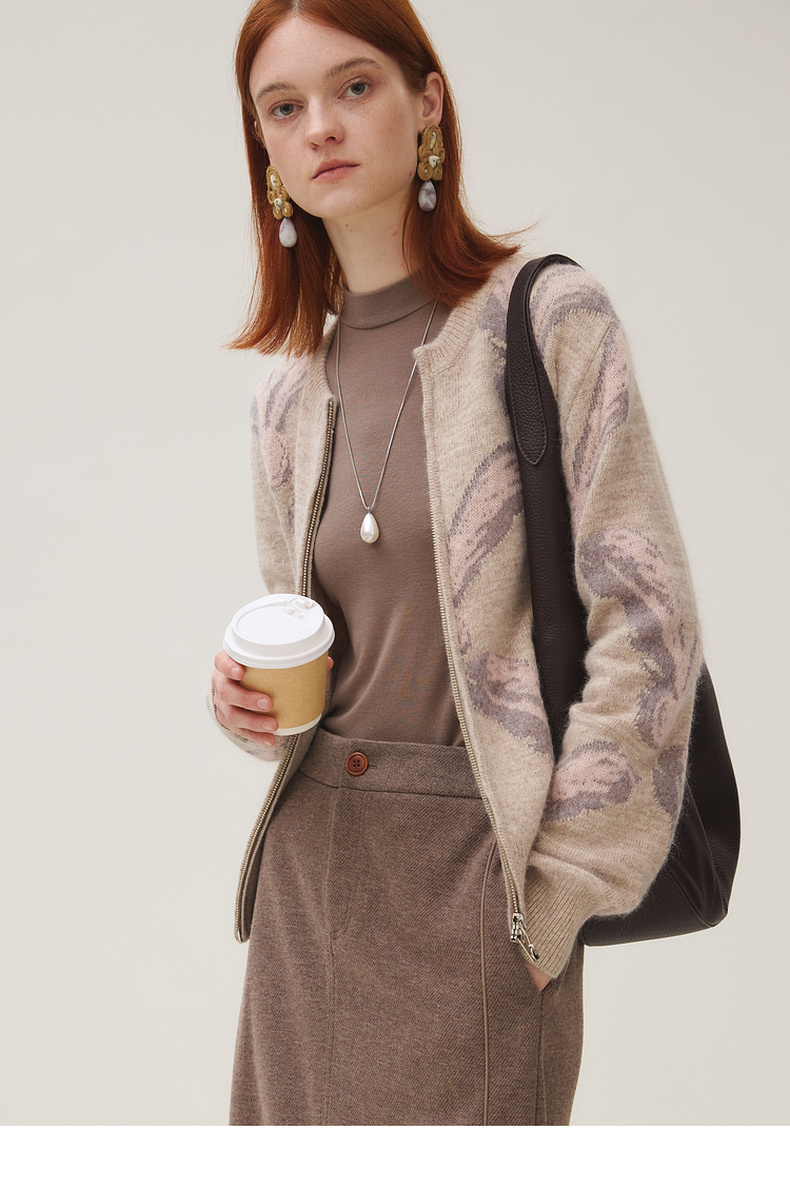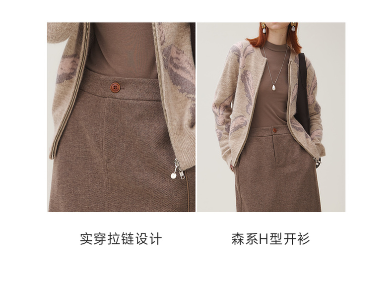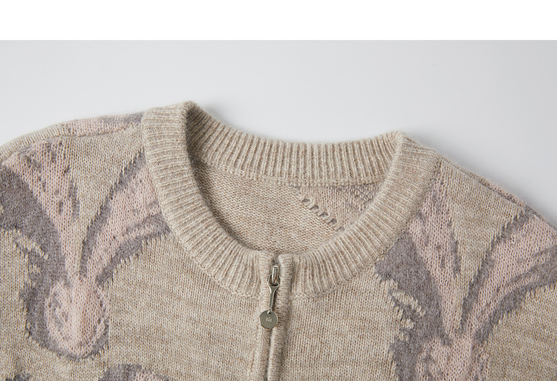谜底针织开衫女2025秋季新品复古文艺提花抓毛保暖毛衣253MZ1377