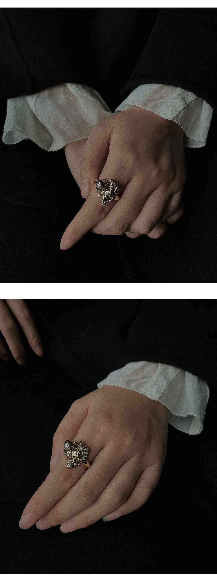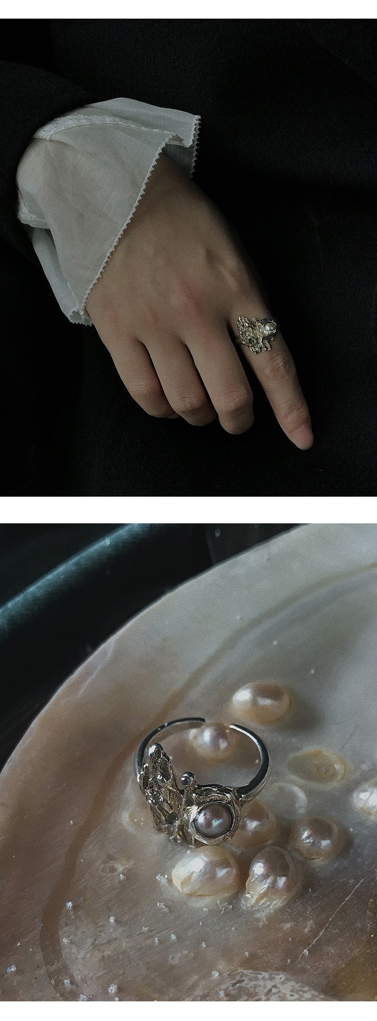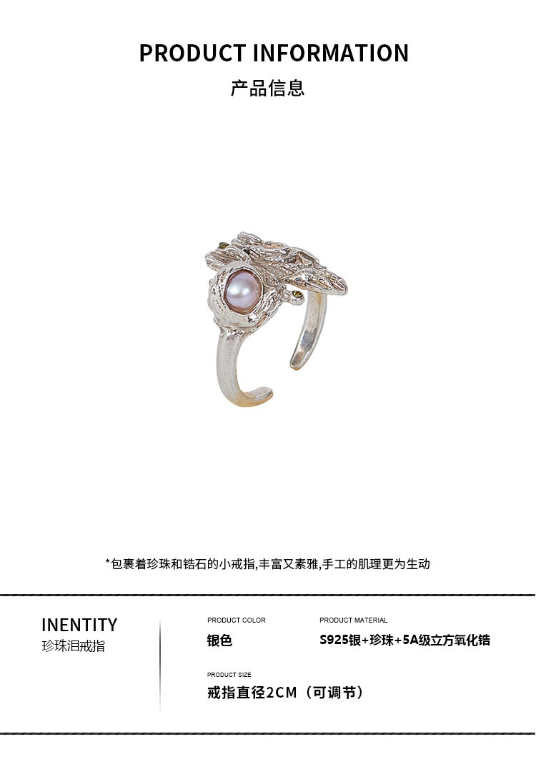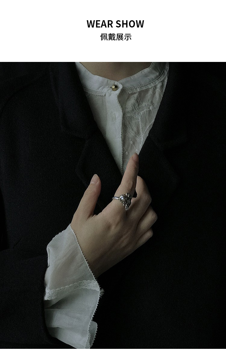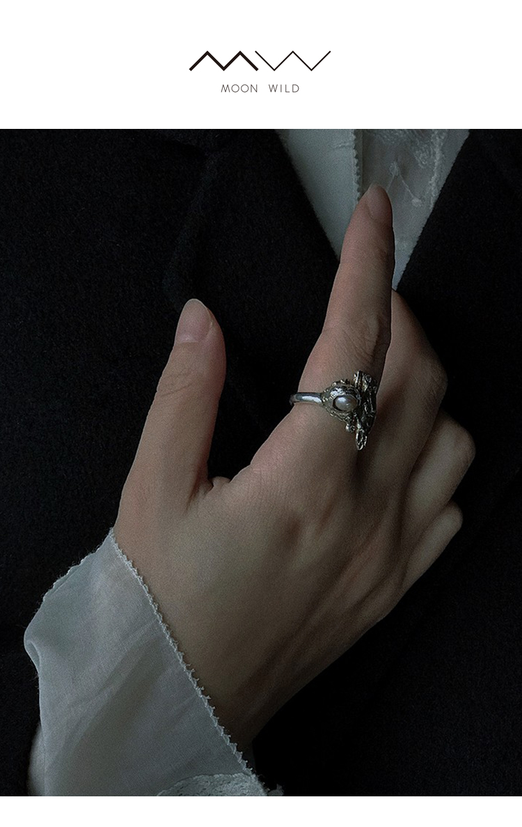 MOON WILD野月亮 戒指女ins小众设计高级感珍珠食指戒S925银/铜镀银装饰指环可调节