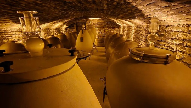 跟勃艮第干白一哥双鸡酒庄一样,密歇罗酒庄善用蛋型发酵罐,蛋形罐发酵时,热量和二氧化碳的产生,推动酒液上升到顶部,随着二氧化碳和热量排出,酒液又沉到底部,循环往复。这种“涡流”,类似搅桶,但更加温和自然,使得温度和氧气均匀分布、保持酒泥悬浮状态,利于葡萄酒口感和风味的形成。