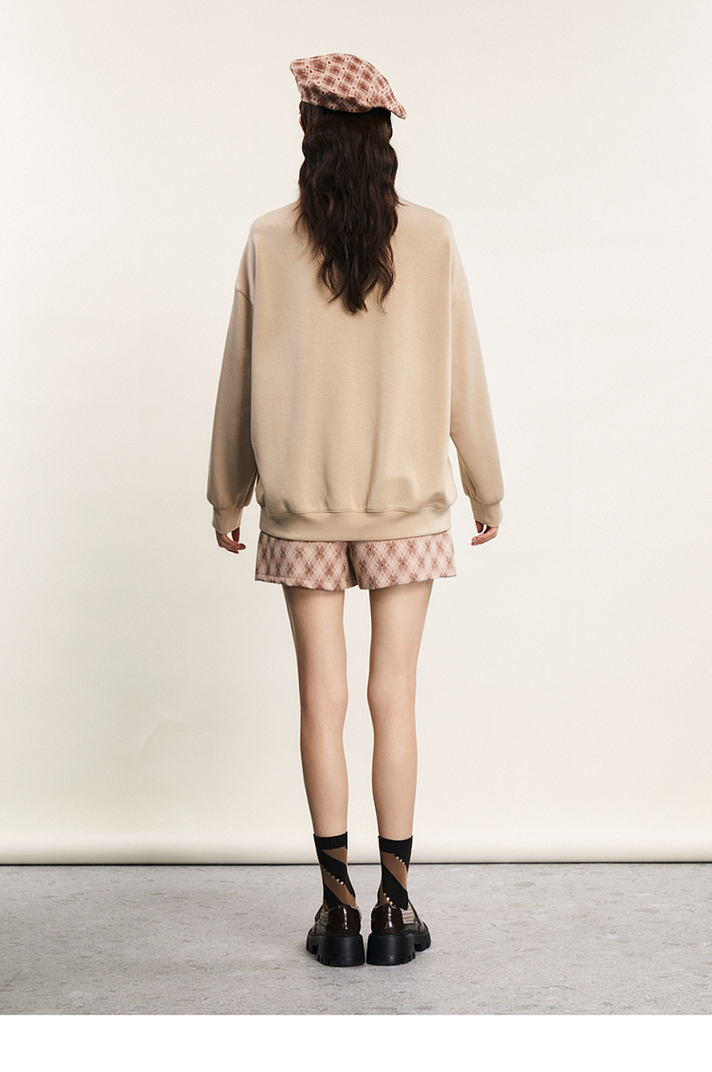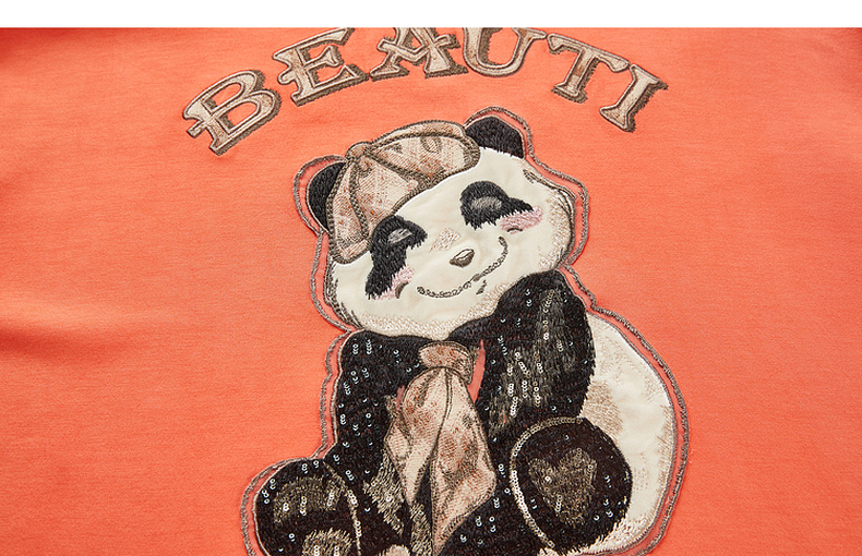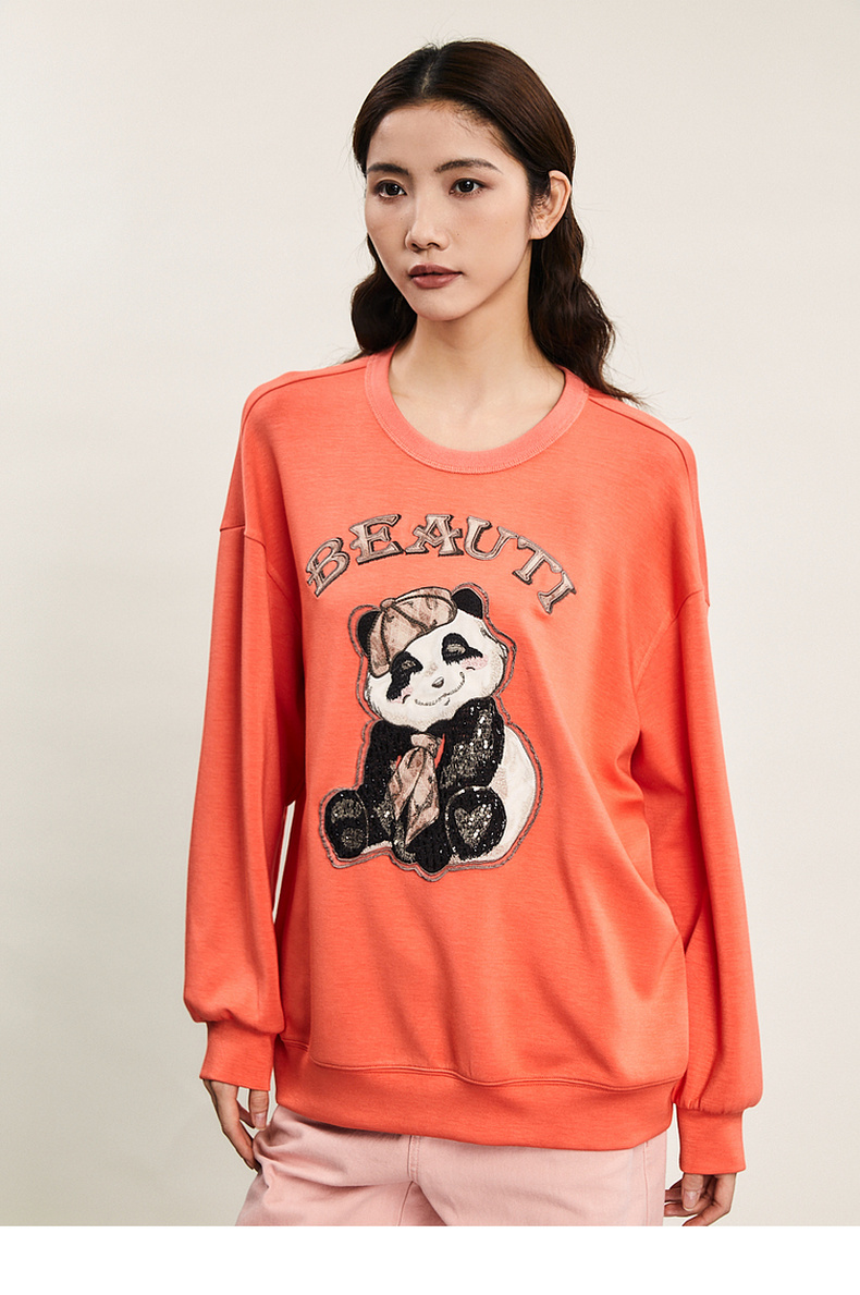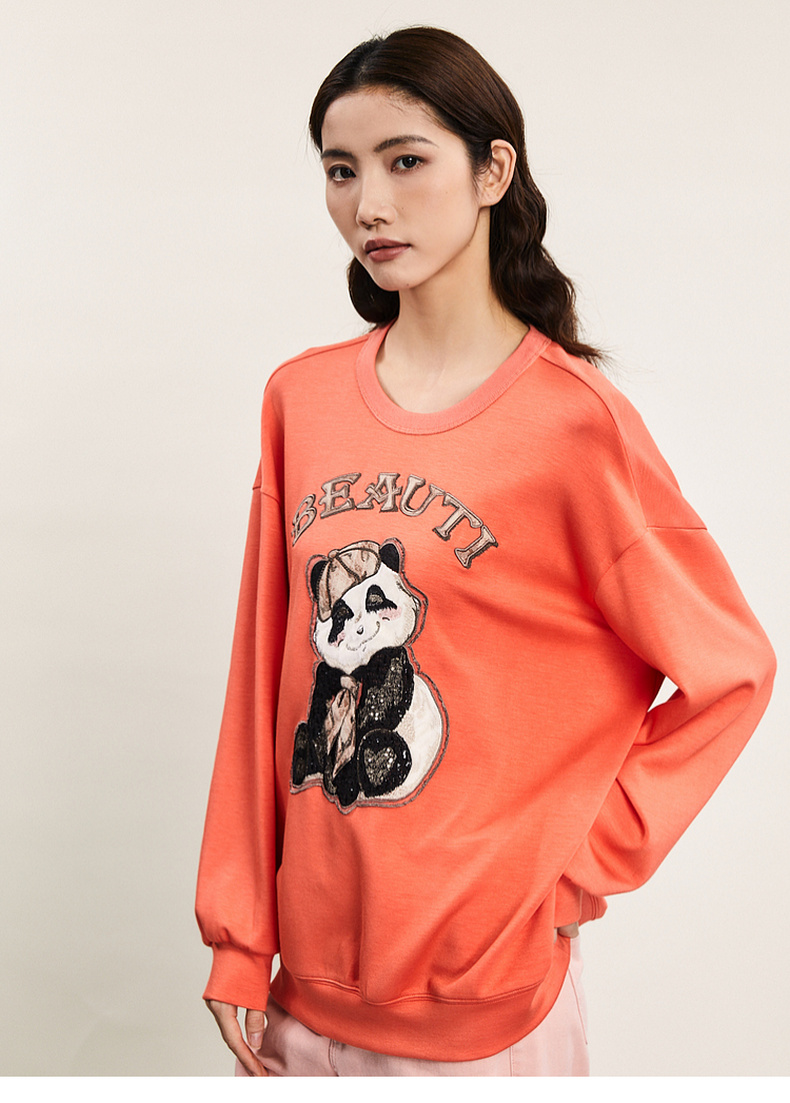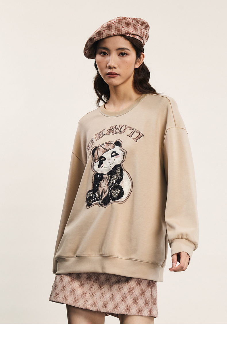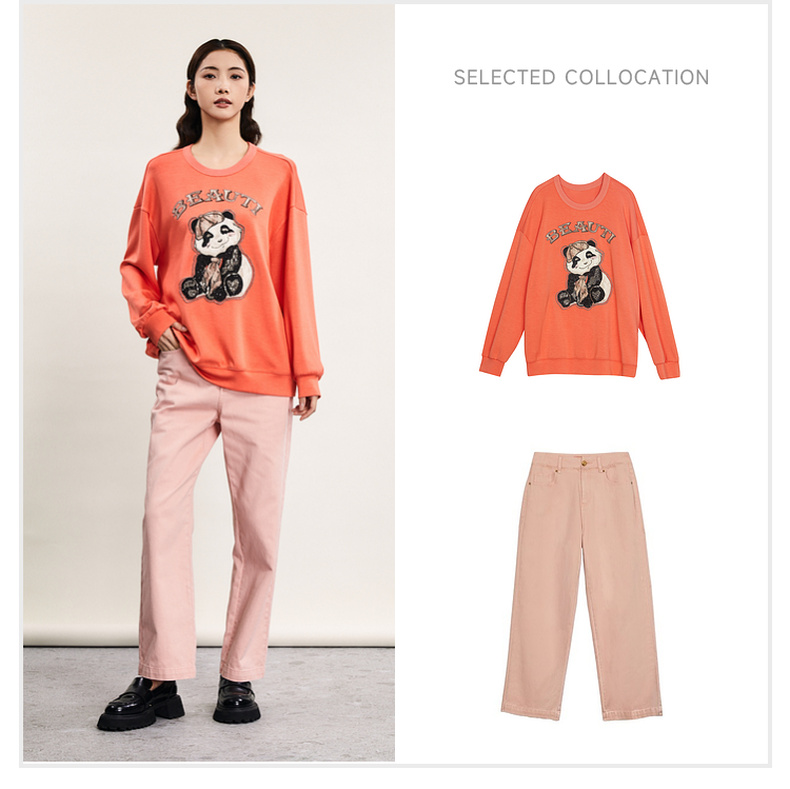 谜底中长款卫衣女2024春新款学院风大熊猫绣花圆领上衣241MV0074