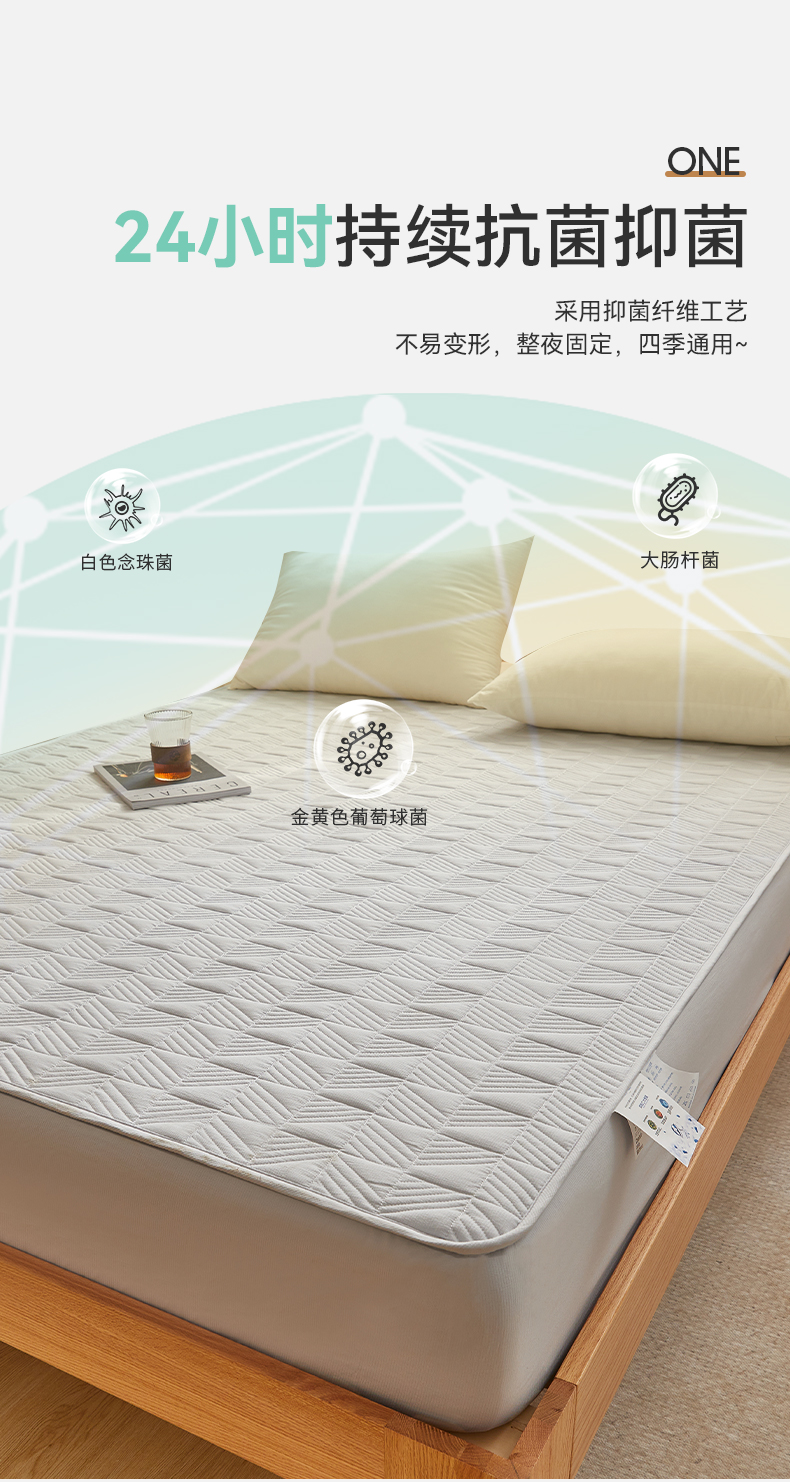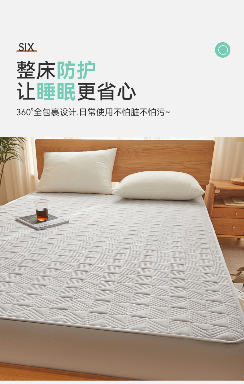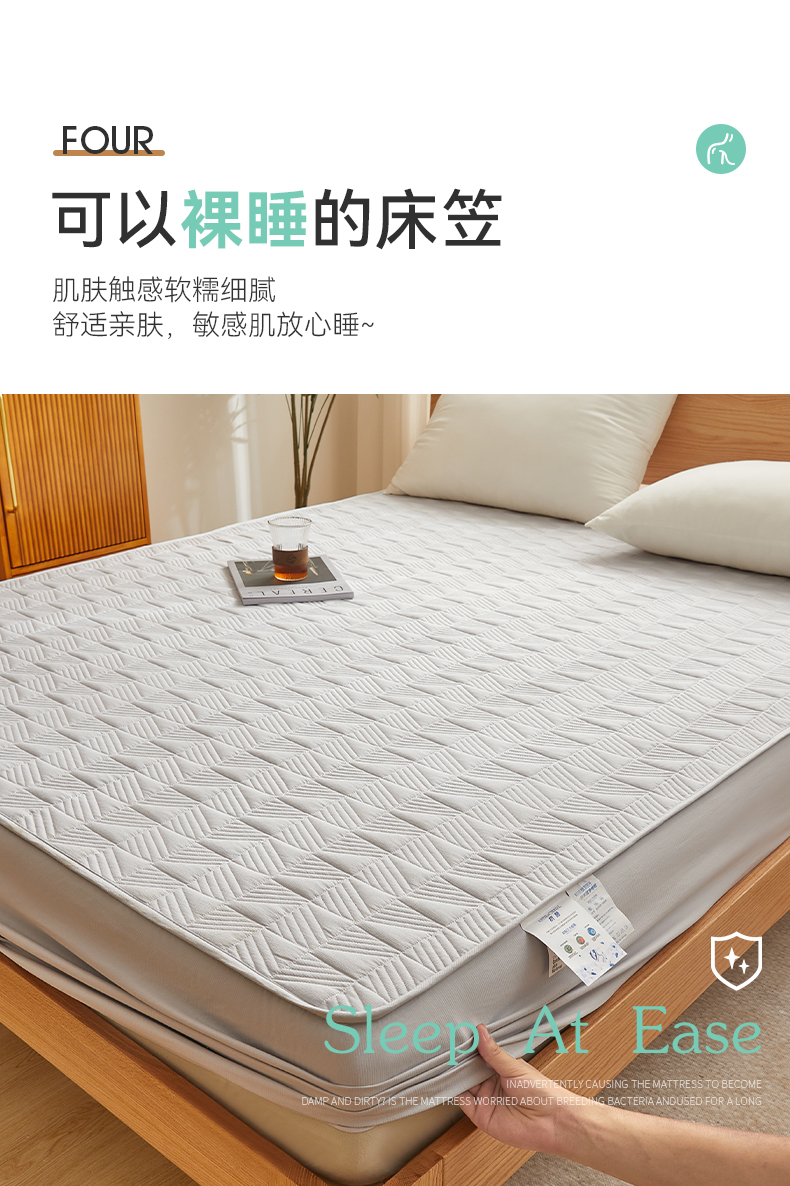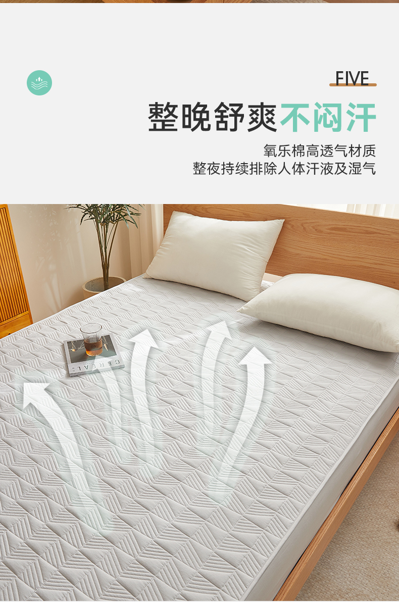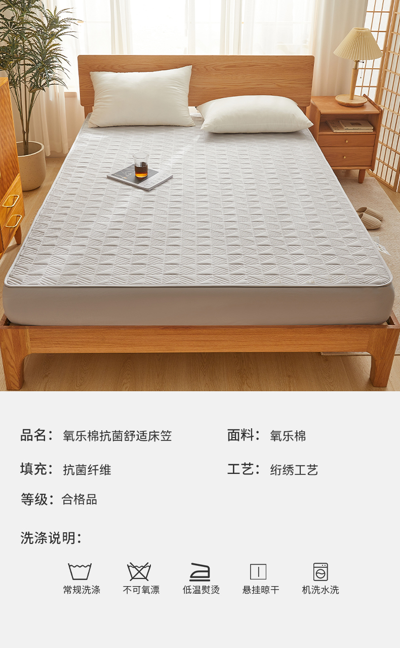 自然醒贴身氧乐棉防污抗菌抑菌床笠床垫保护套家用夹棉床笠防尘保护套罩1.5床笠防滑1.8床单件床垫套LN
