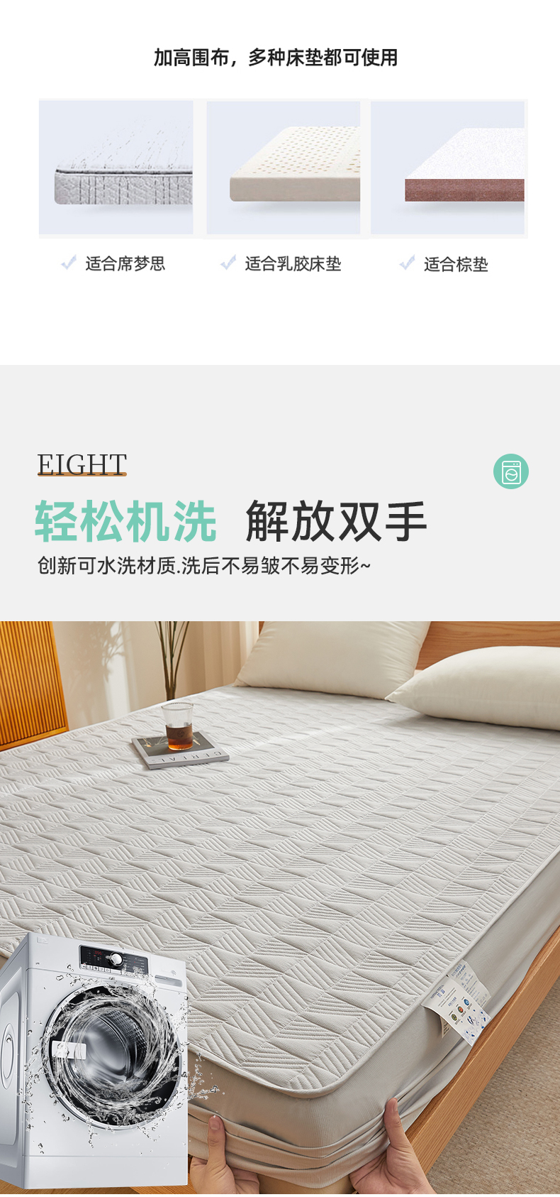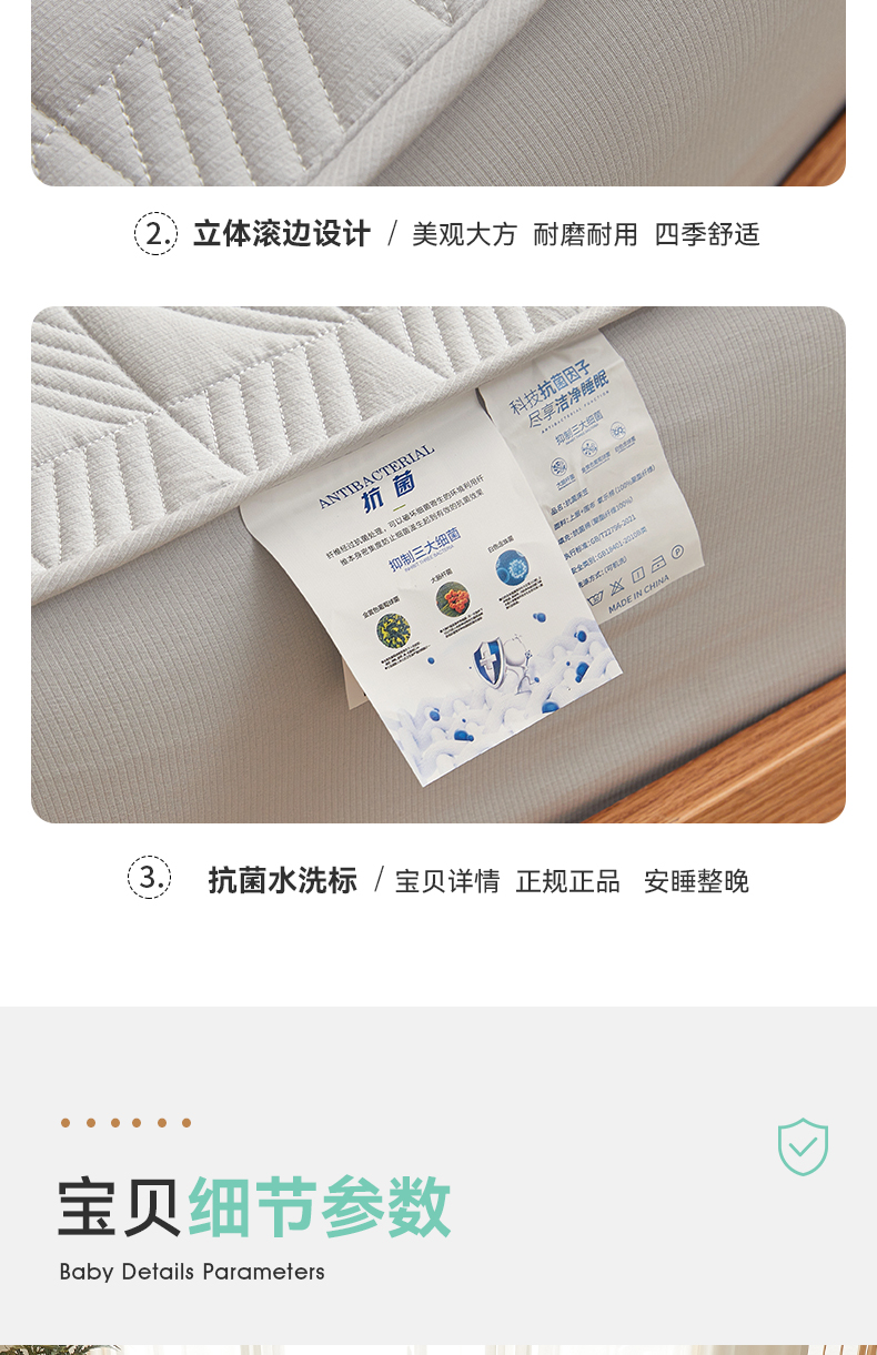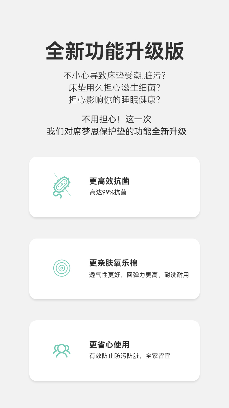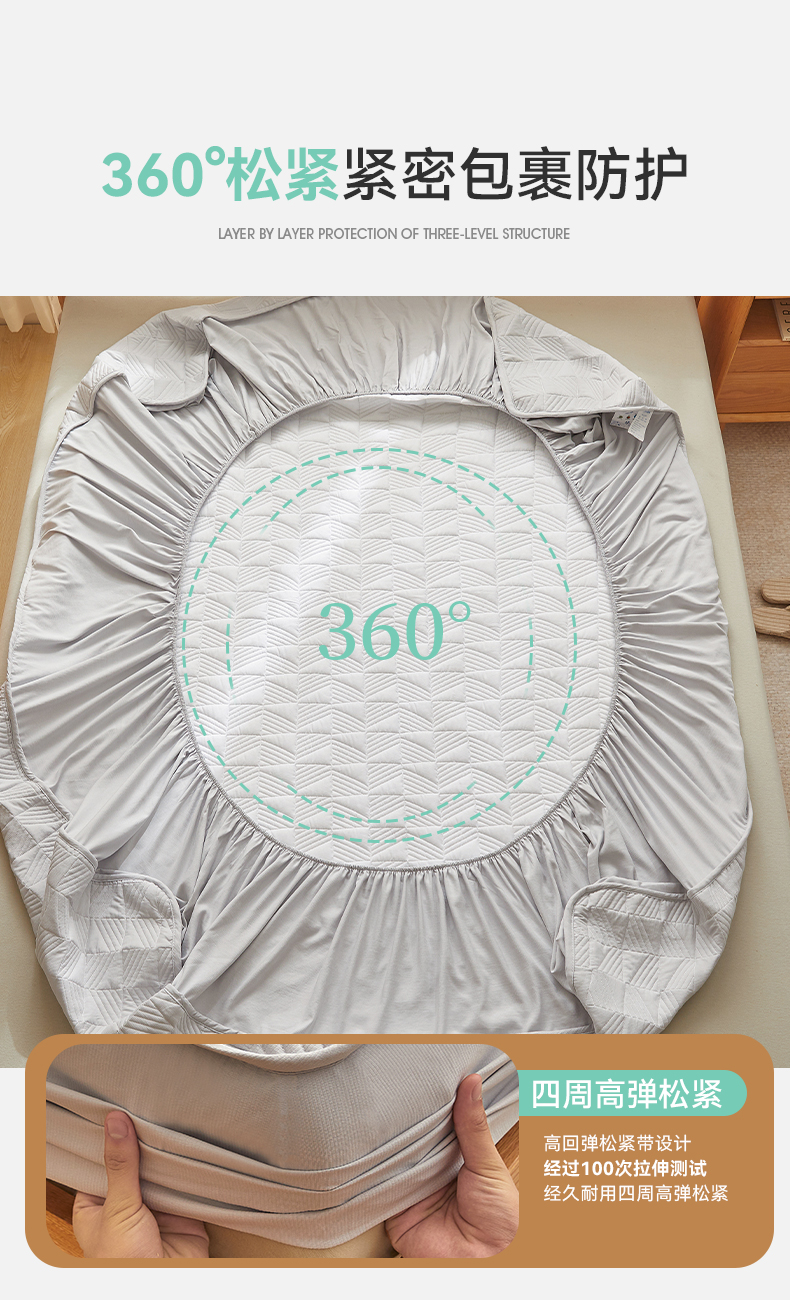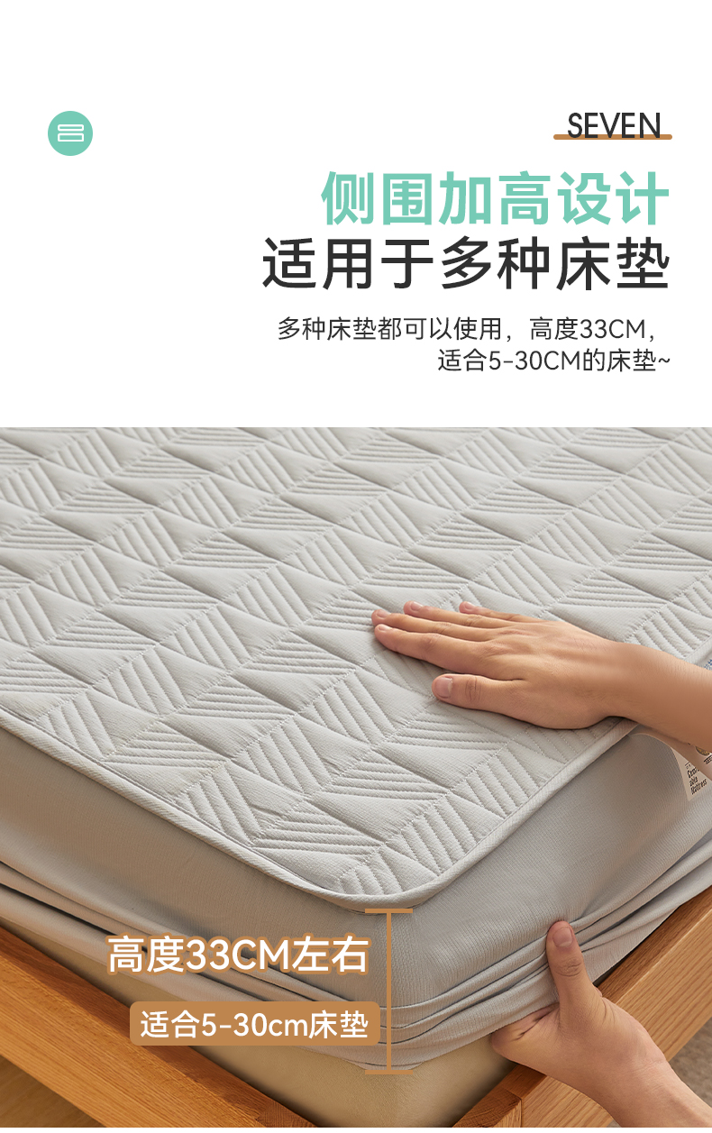 自然醒贴身氧乐棉防污抗菌抑菌床笠床垫保护套家用夹棉床笠防尘保护套罩1.5床笠防滑1.8床单件床垫套LN