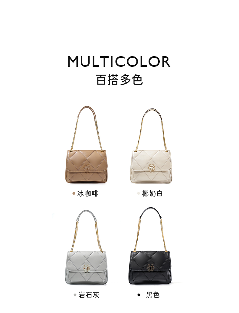 法国梦特娇羊皮时尚菱格单肩通勤斜挎包
