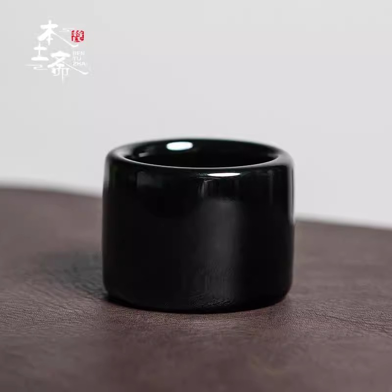 本土斋墨玉系列青瓷手工主人杯工夫茶器黑釉板子杯功夫茶具岩茶杯墨玉风水缸杯90ML墨玉板子杯50ML【不支持补差,非质量问题不退不换】S