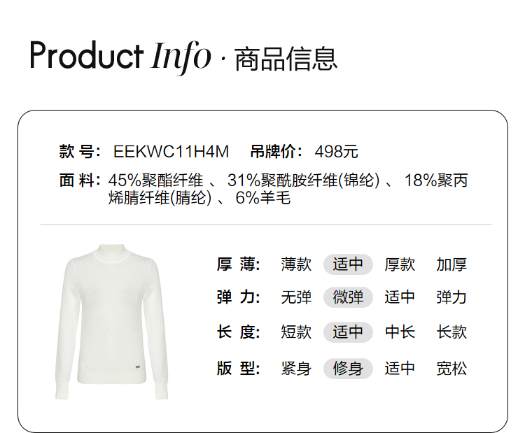 ELAND衣恋简约基础罗纹半高领打底衫 EEKWC11H4M