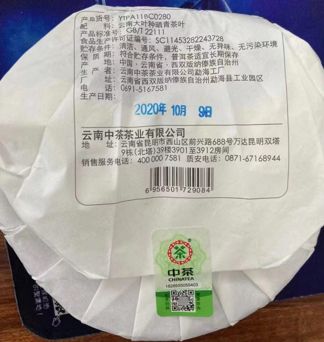 《中粮-中茶》云南普洱生茶2020年普洱茶布朗青饼357g/饼