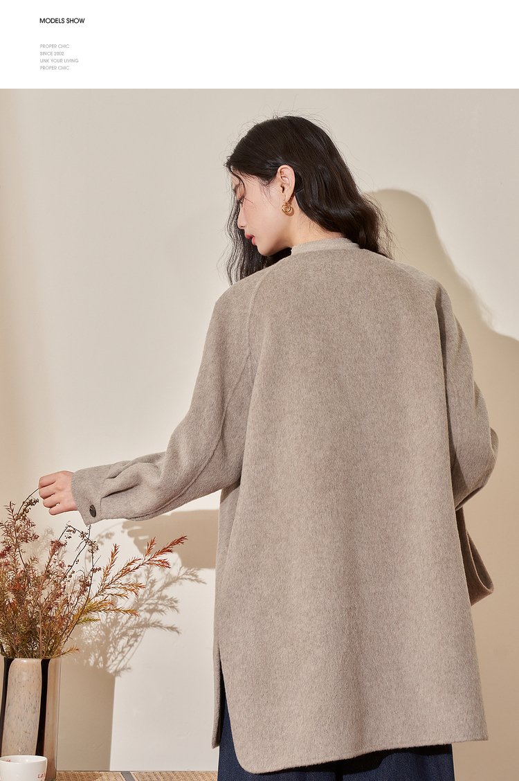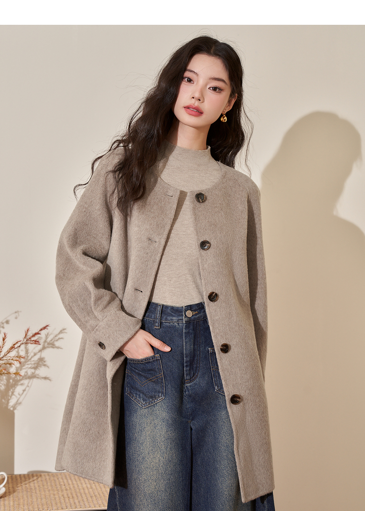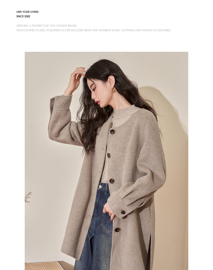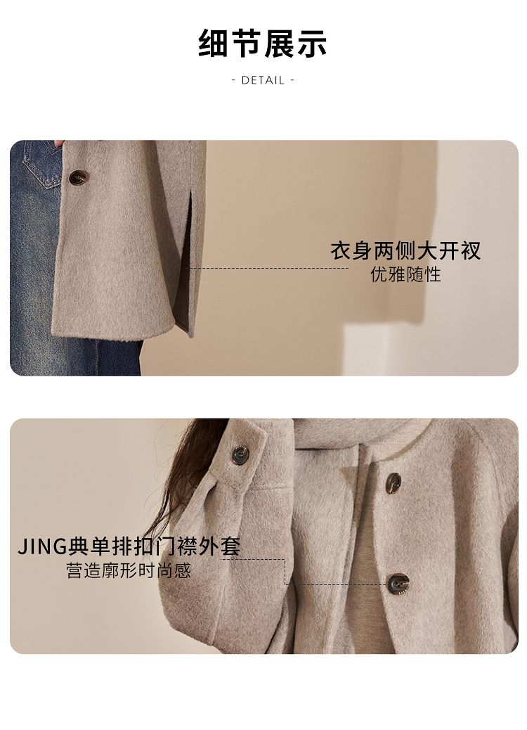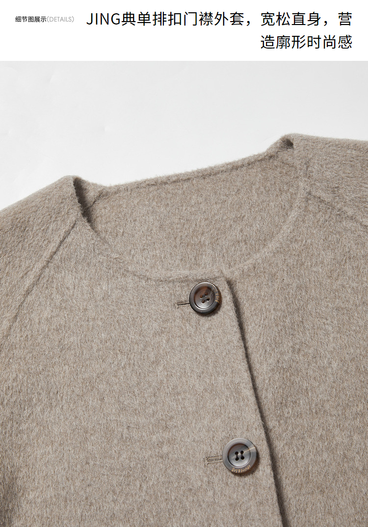 西遇韩版羊毛毛呢大衣女秋冬新款设计感单排扣赫本风宽松外套D0038378
