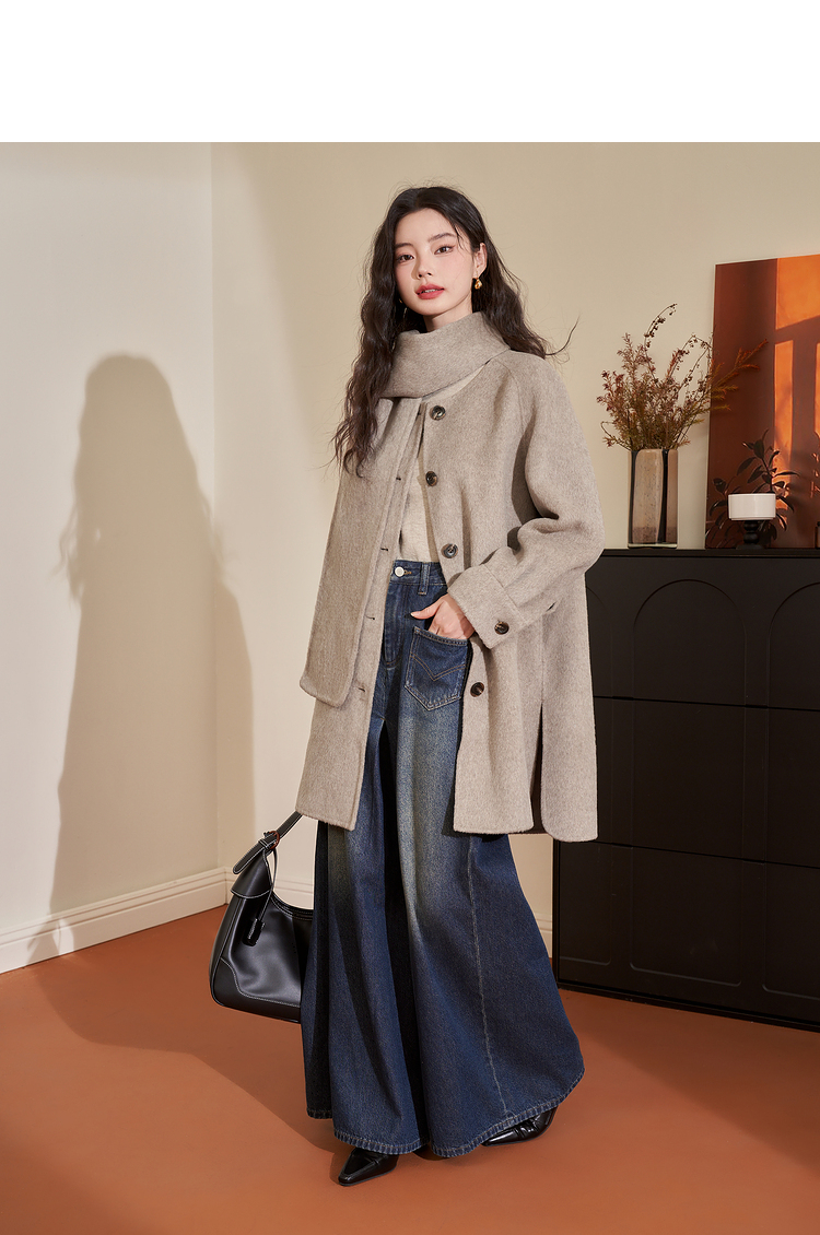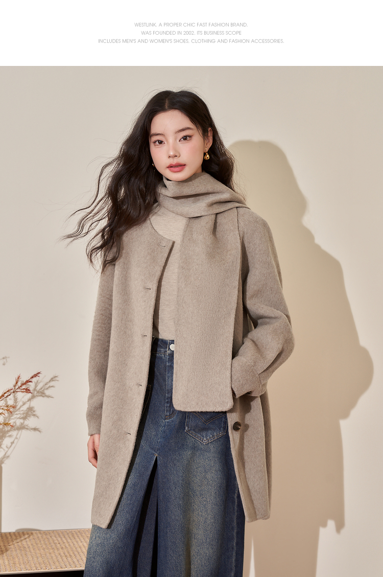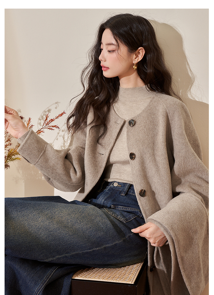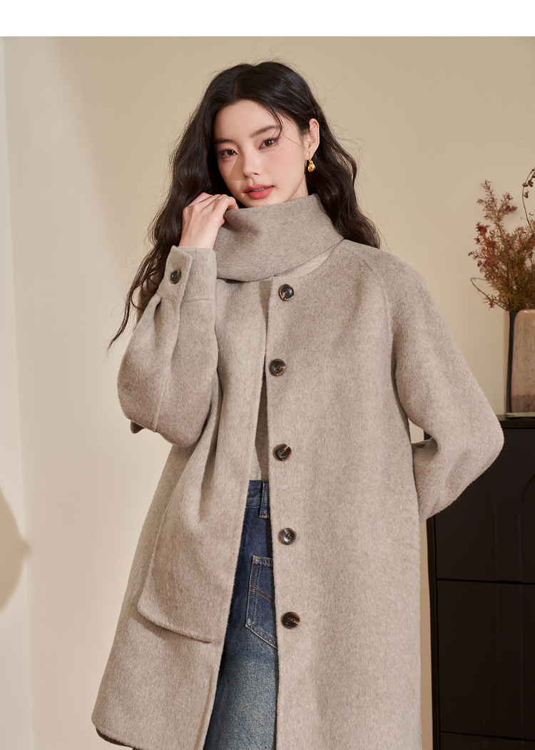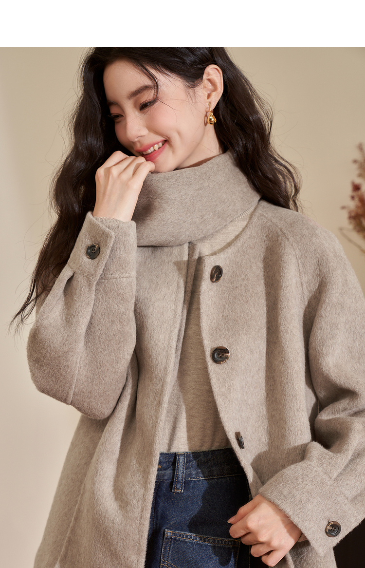 西遇韩版羊毛毛呢大衣女秋冬新款设计感单排扣赫本风宽松外套D0038378