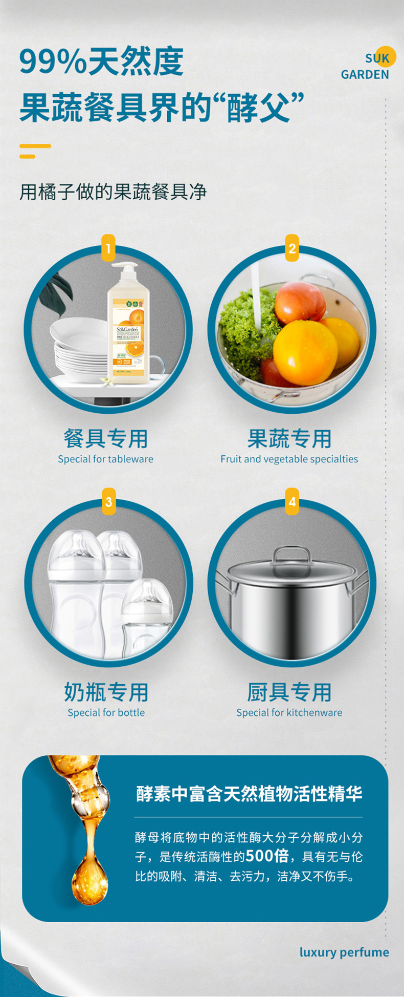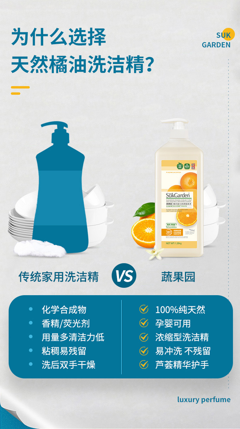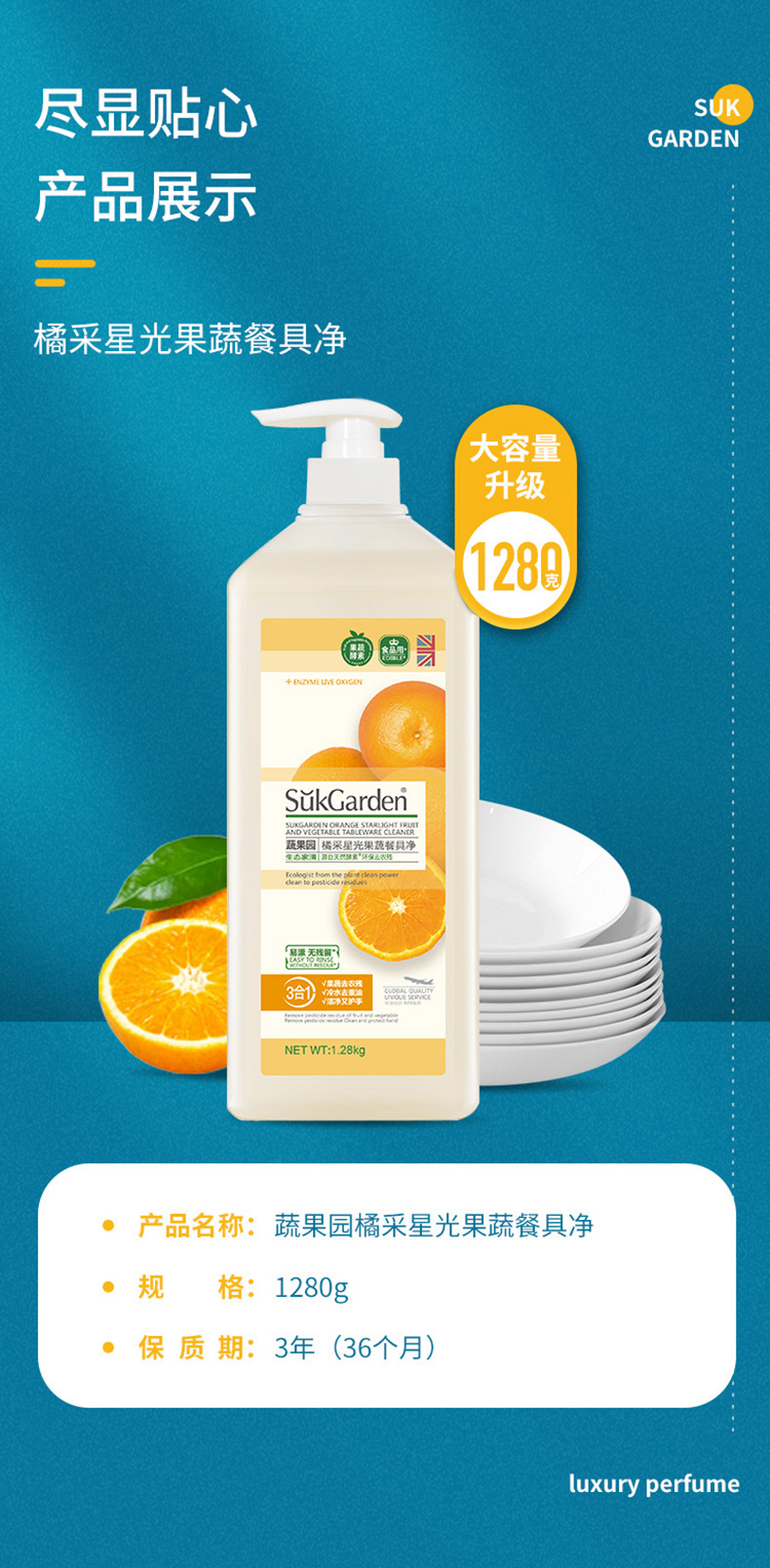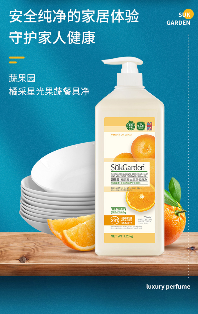 「家用大瓶装!洁净二合一」蔬果园橘采星光果蔬餐具净 天然配方温和护手厨房用品清洁工具
