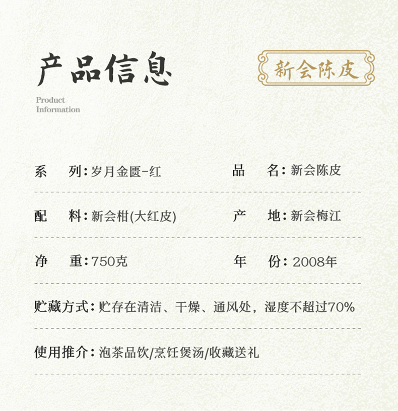 2008年岁月陈皮 十三年梅江老陈皮 岁月金匮新会陈皮官方正品750g