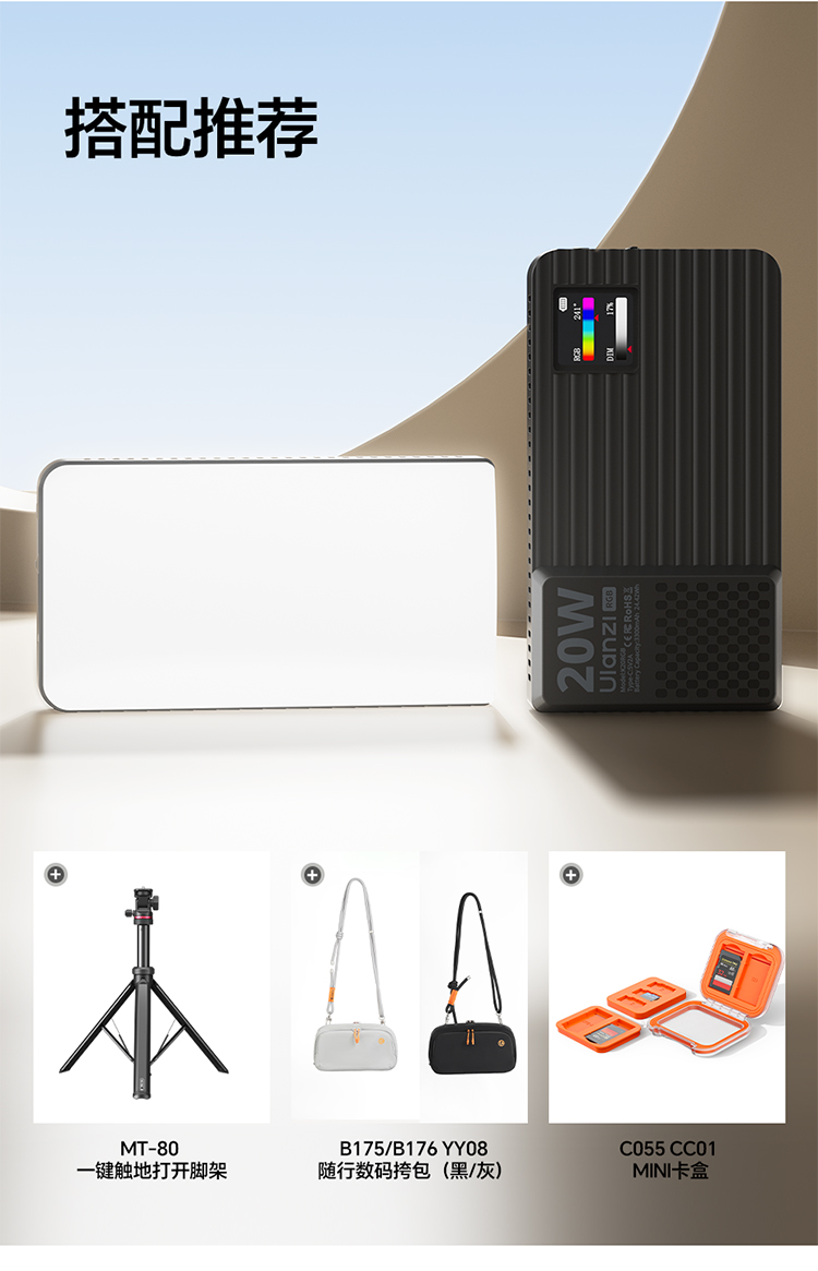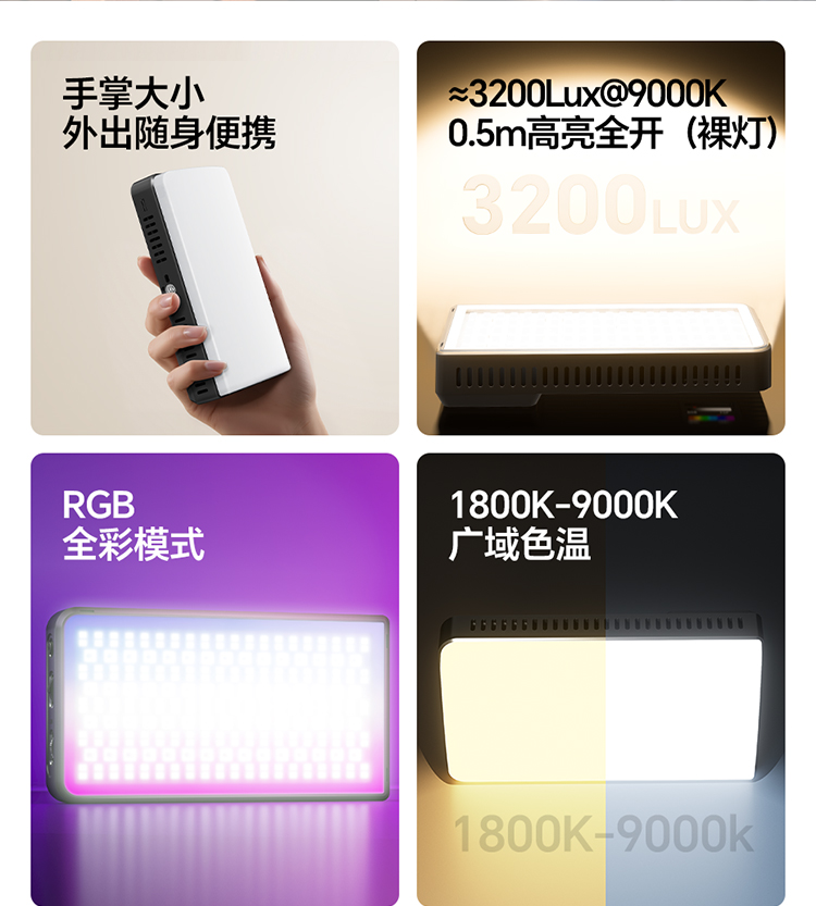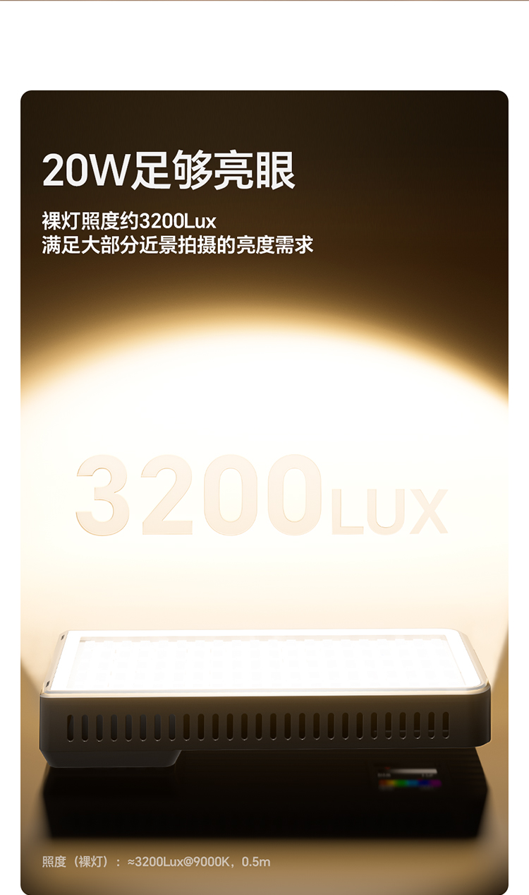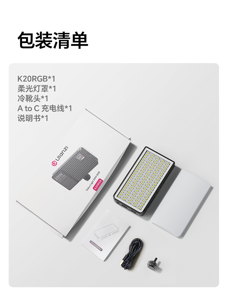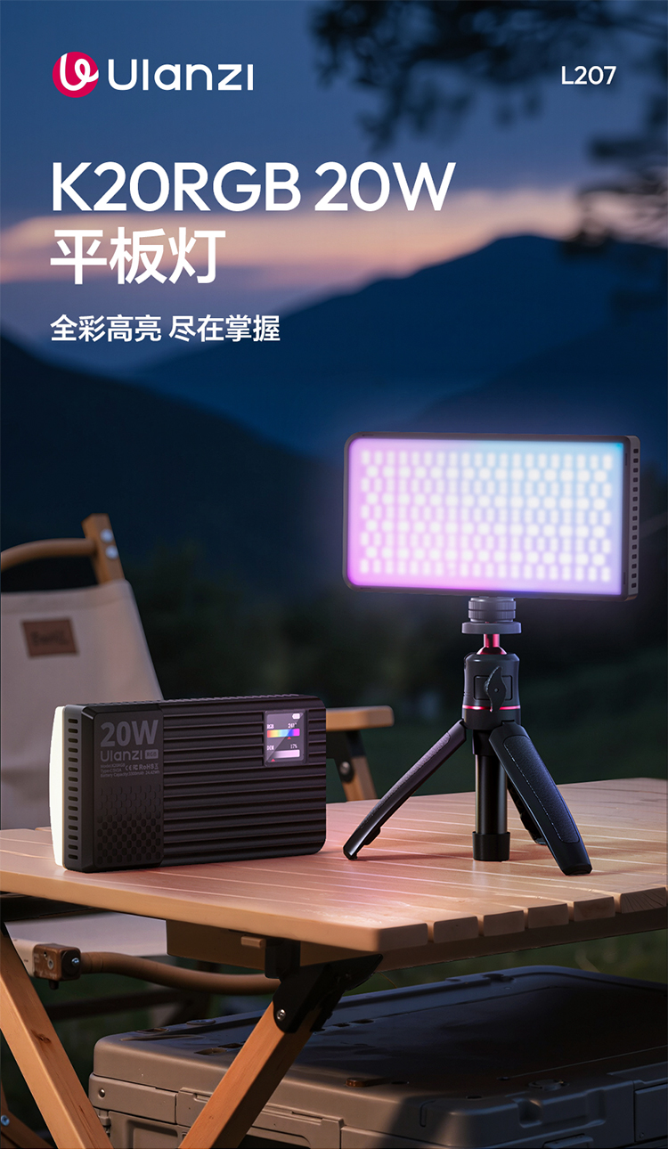 Ulanzi优篮子 K20RGB 20W平板补光灯直播视频拍摄RGB全彩常亮灯