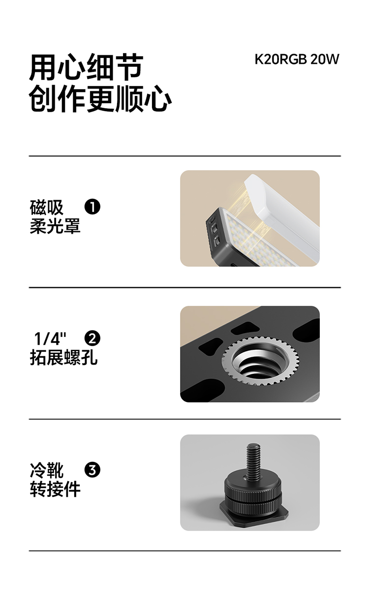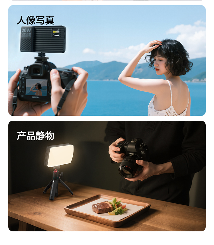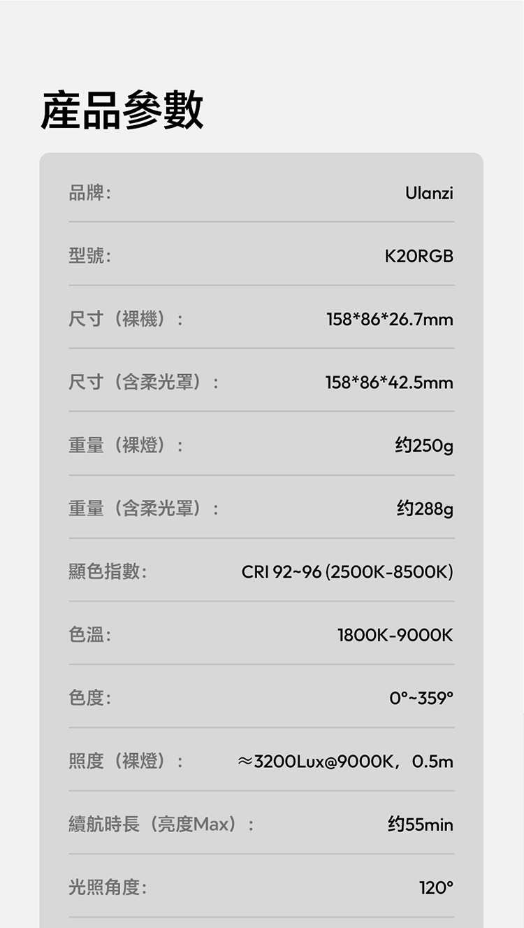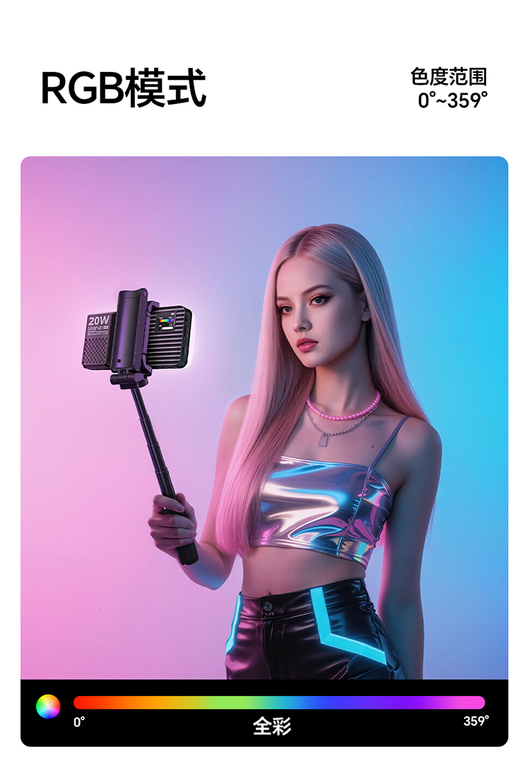 Ulanzi优篮子 K20RGB 20W平板补光灯直播视频拍摄RGB全彩常亮灯