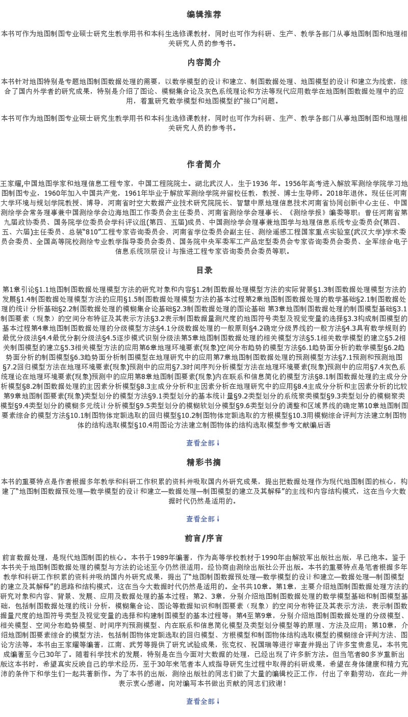 《测绘科技经典著作:地图制图数据处理的模型与方法》(王家耀,等)