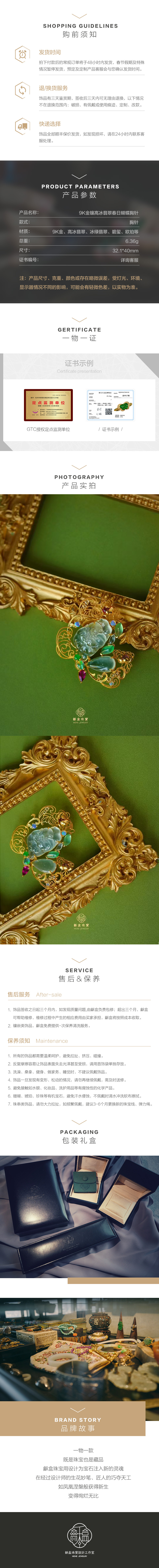 龢盒原创 18k金镶翡翠蛋面九色鹿胸针吊坠