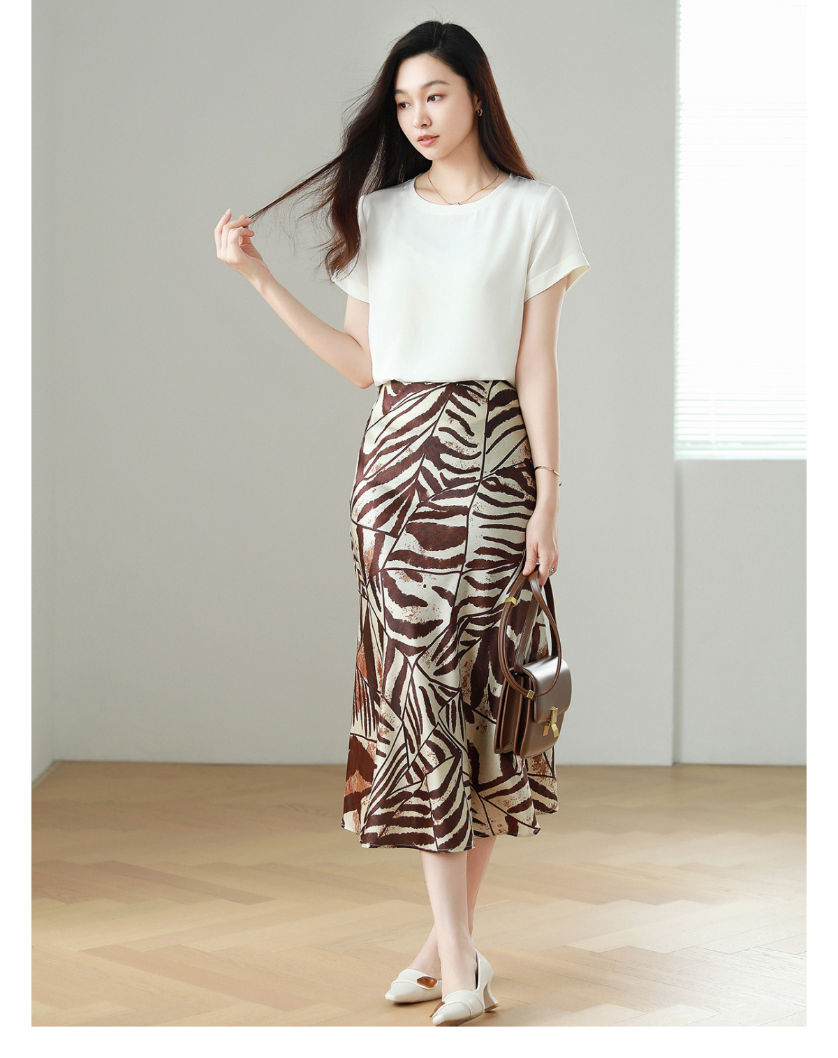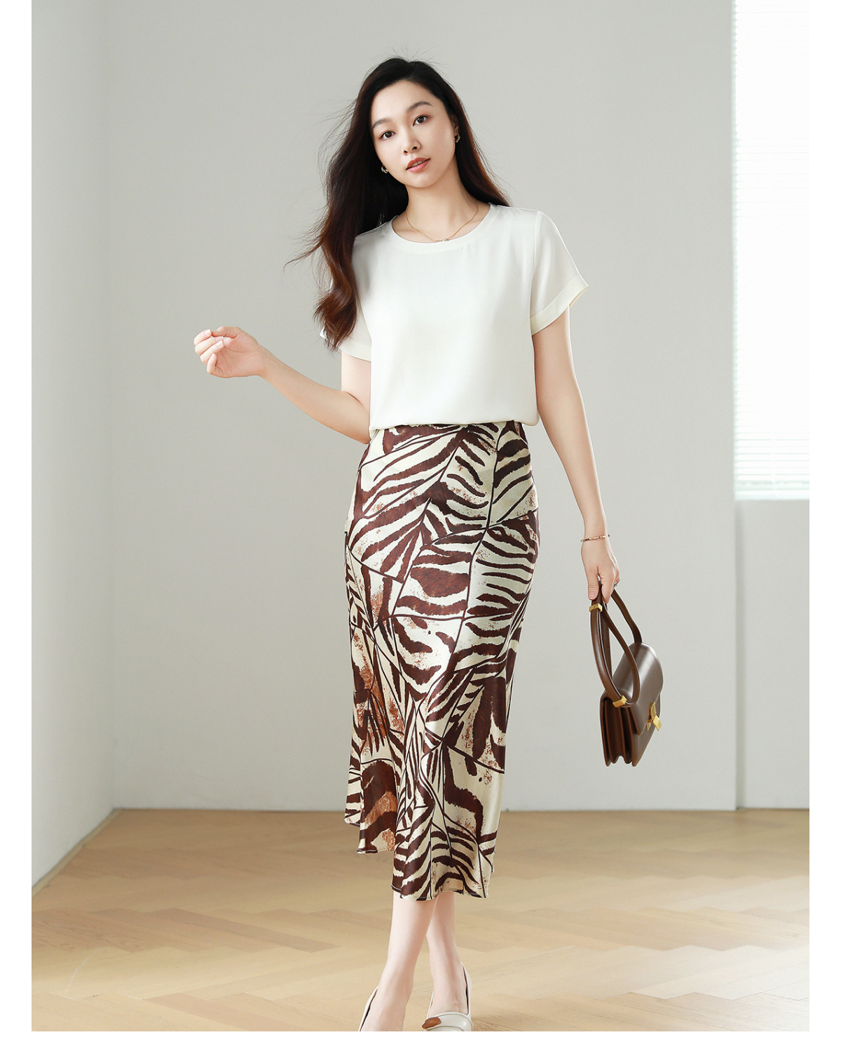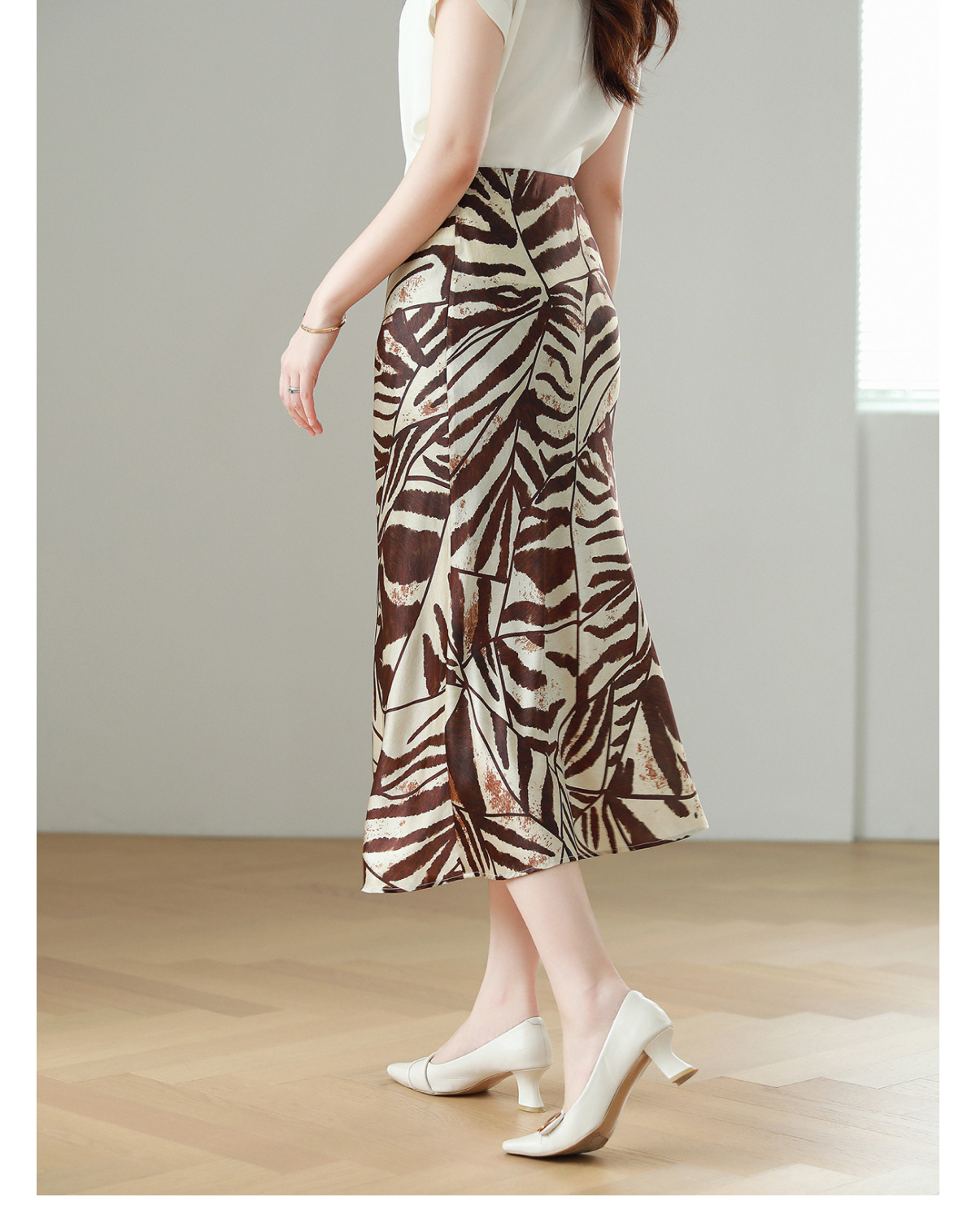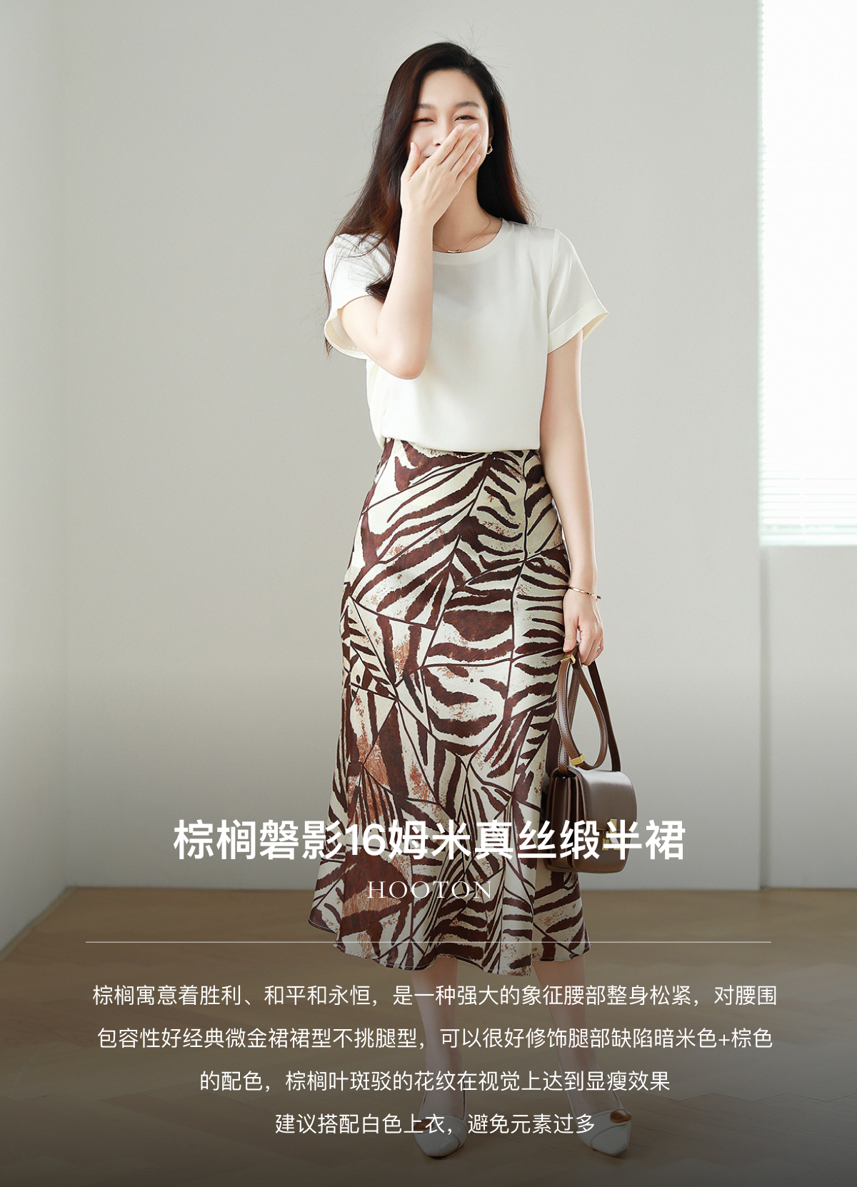 火桐hooton 棕榈磐影16姆米真丝缎半裙Q1507