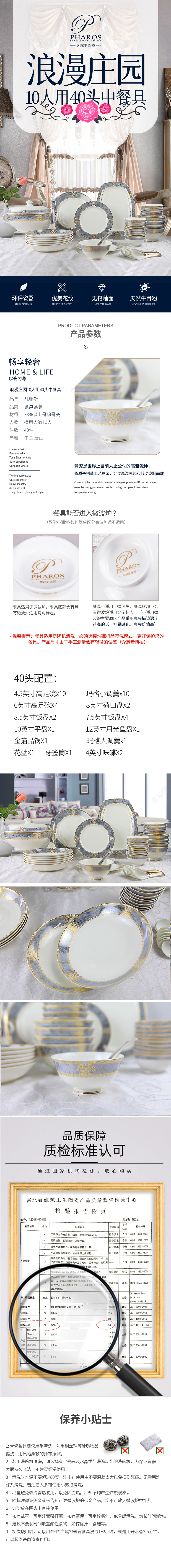 凡瑞斯骨瓷中餐具浪漫庄园10人用40头