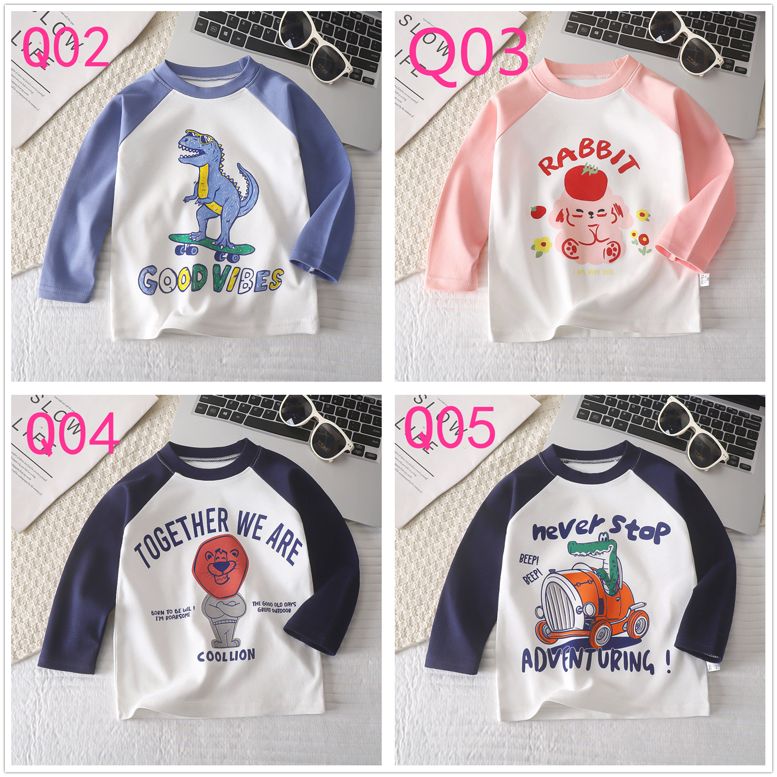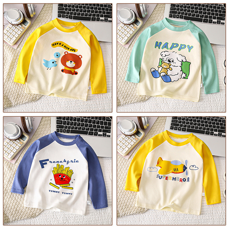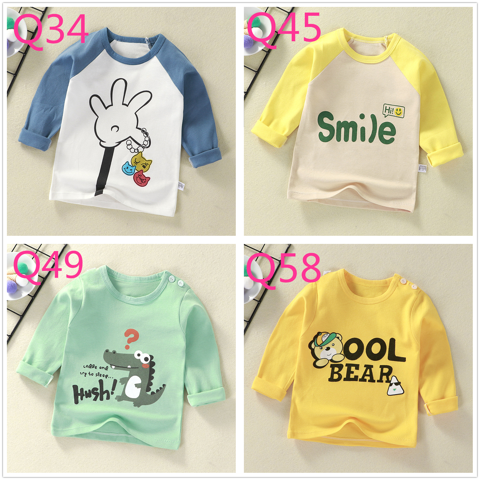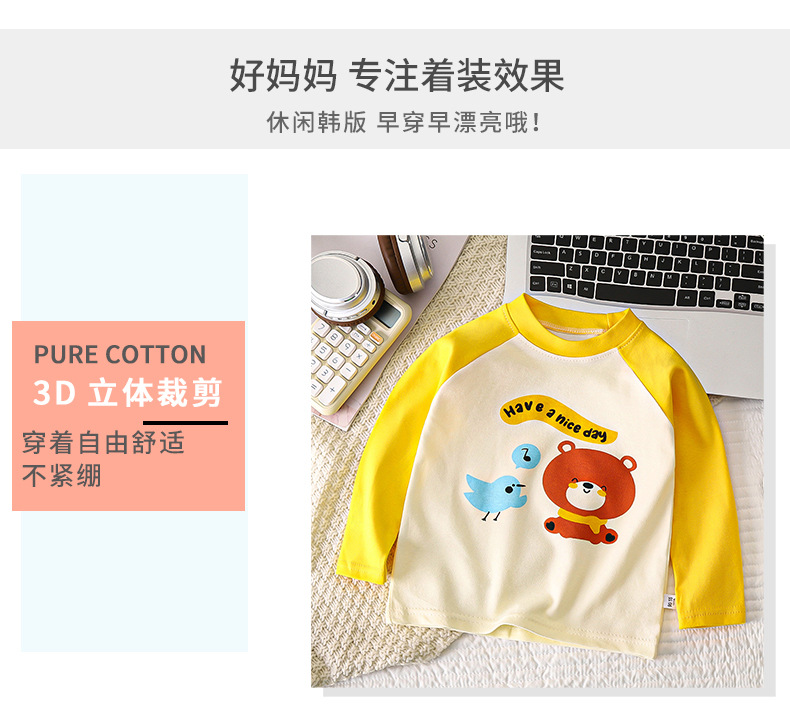 【3件/39.9 18色任选】儿童卡通t恤秋季纯棉新款宝宝衣服男童长袖女童上衣打底衫