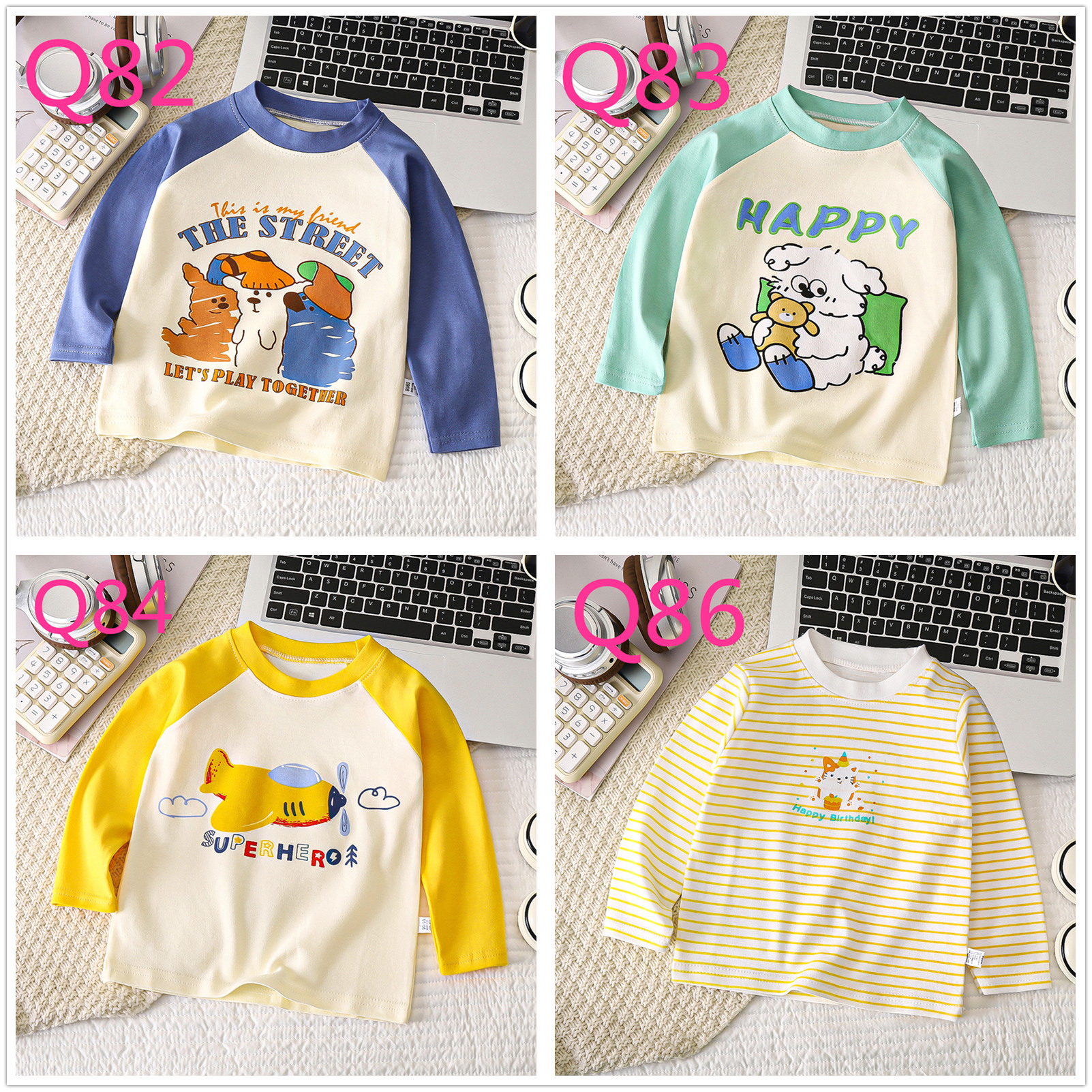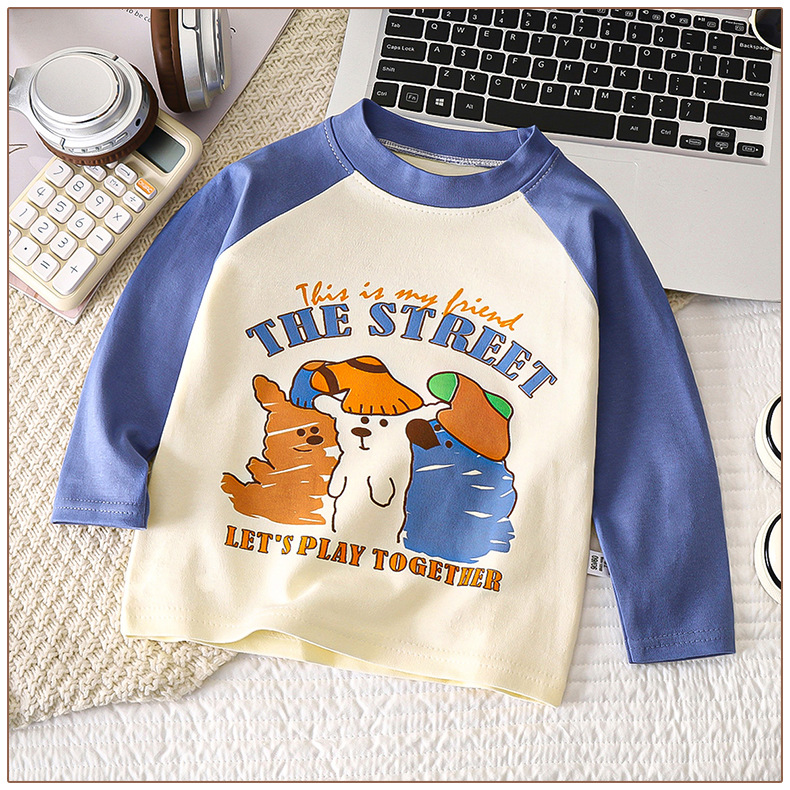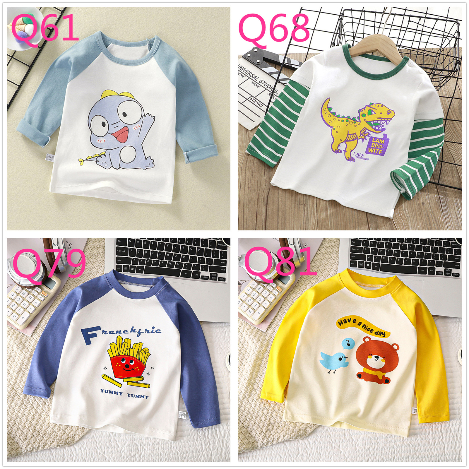 【3件/39.9 18色任选】儿童卡通t恤秋季纯棉新款宝宝衣服男童长袖女童上衣打底衫