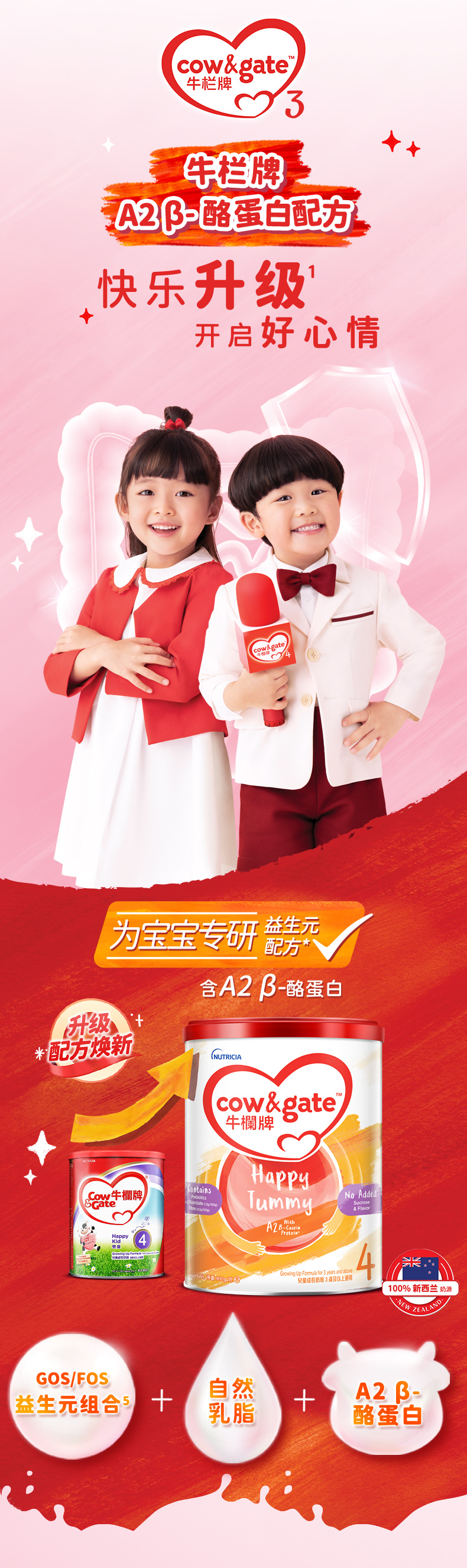 牛栏牌Cow & Gate 港版Happy Tummy儿童成长β-酪蛋白配方奶粉4段(3岁及以上) 900g