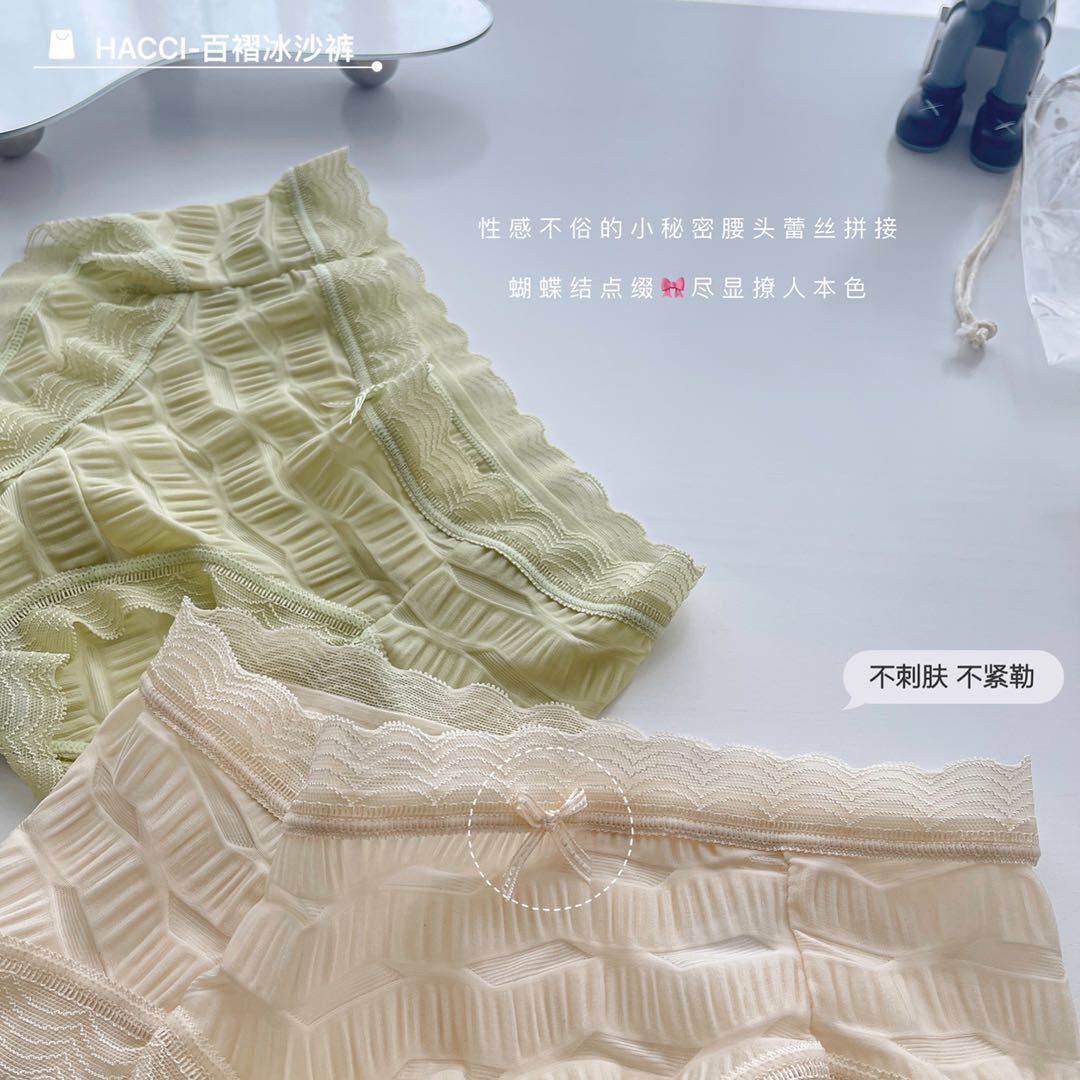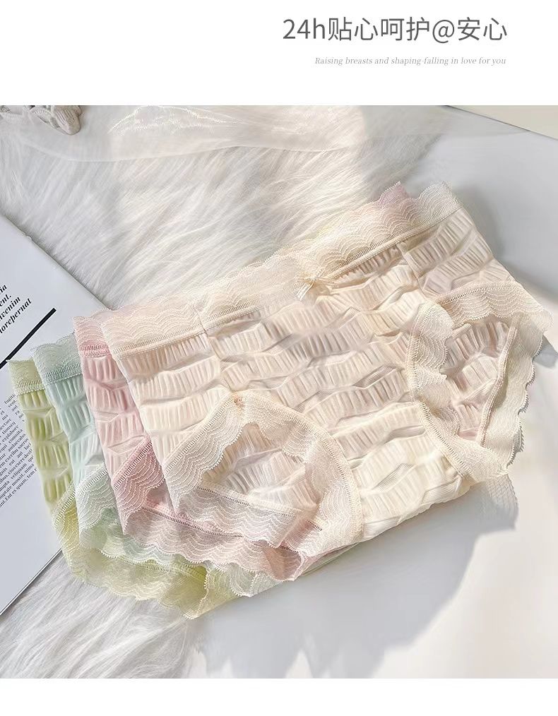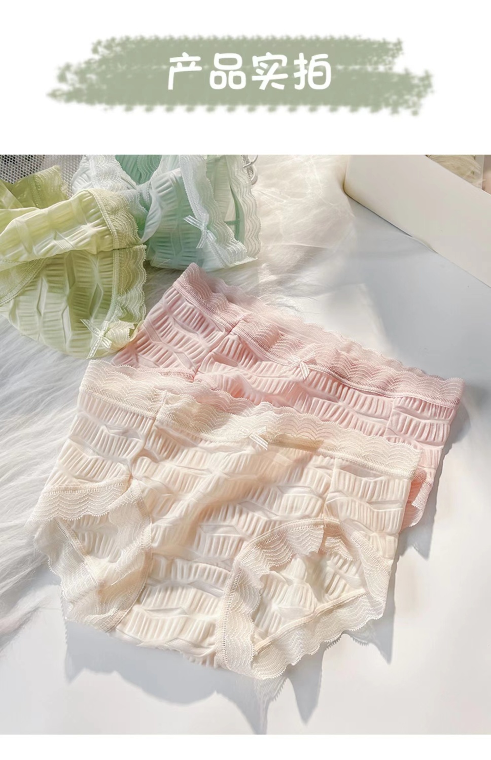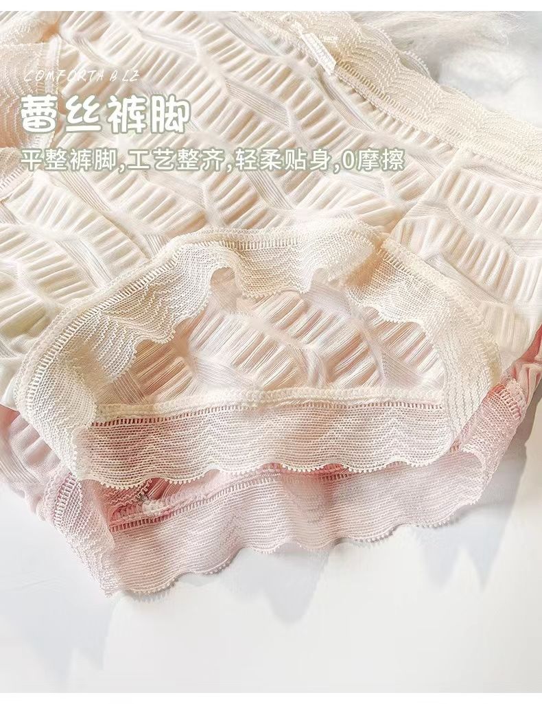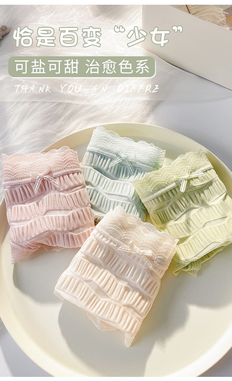 【4条装!海盐奶油泡泡冰沙内裤】甜甜泡芙百褶粉嫩冰爽透气不闷热夏日必备柔软纯色少女心内裤 蕾丝纯欲少女感内裤女纯棉裆无痕抗jun透气中腰三角裤高弹韩系七夕情人节